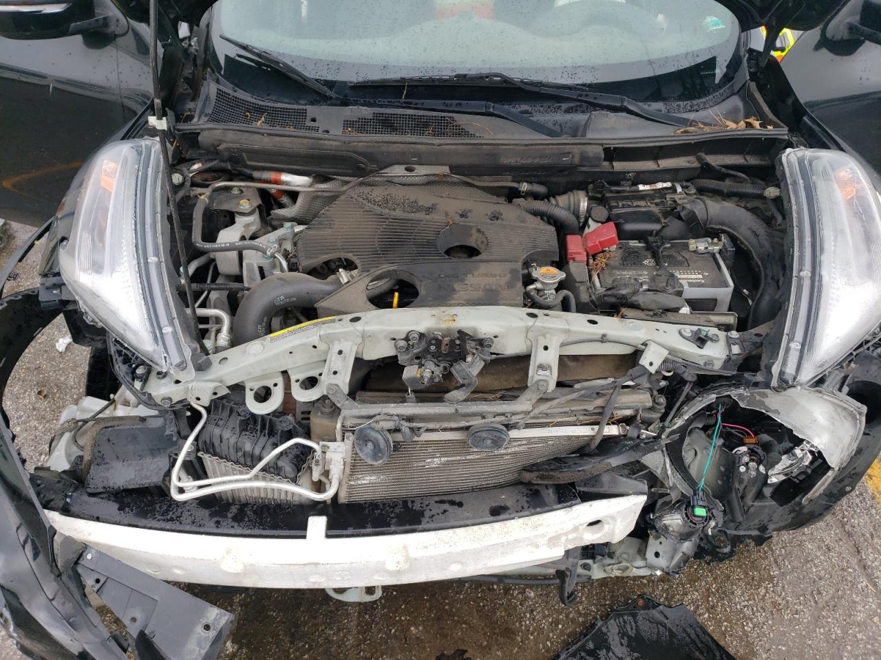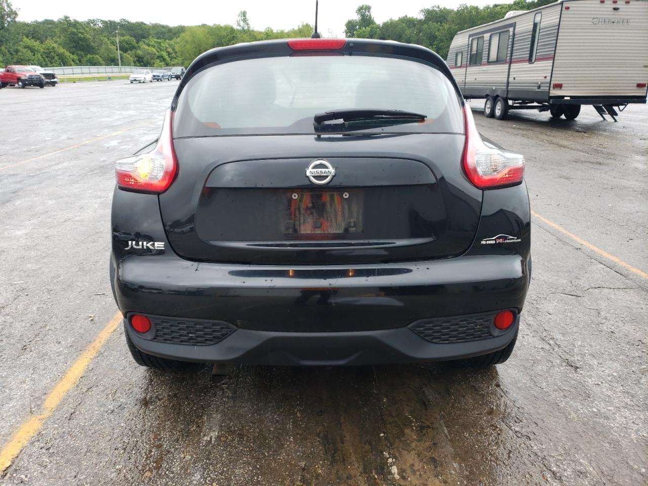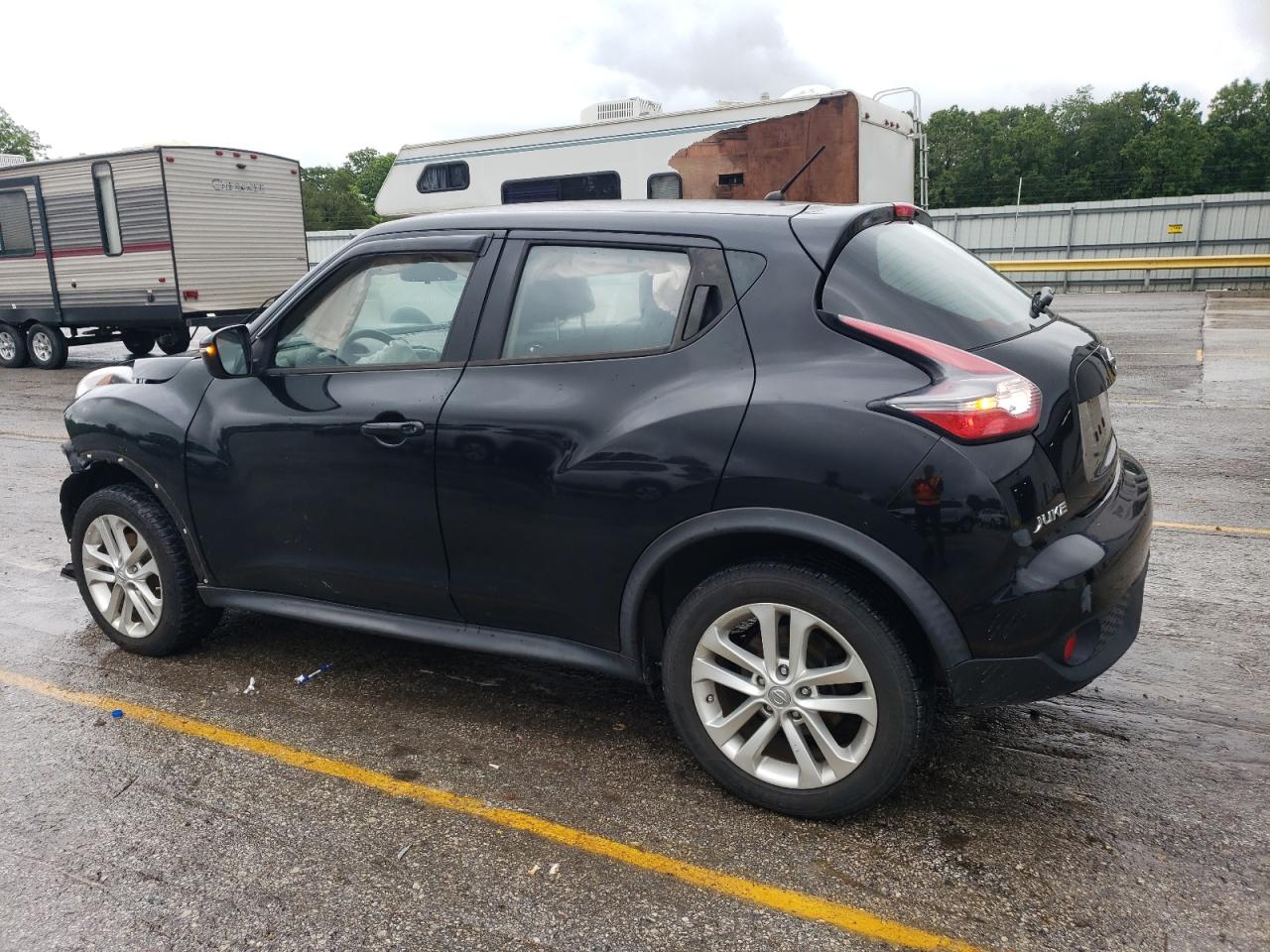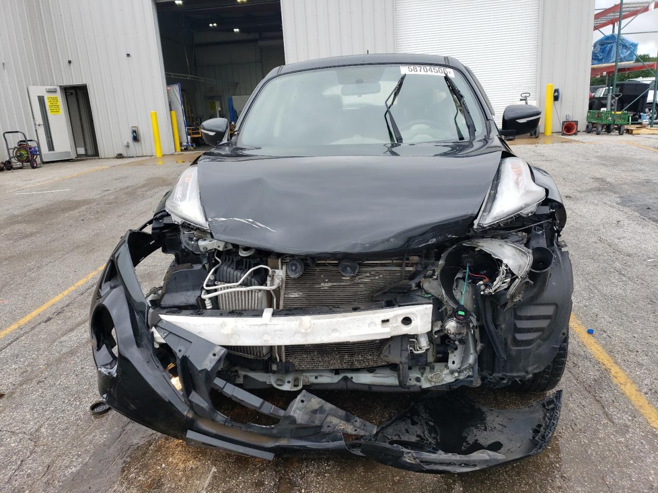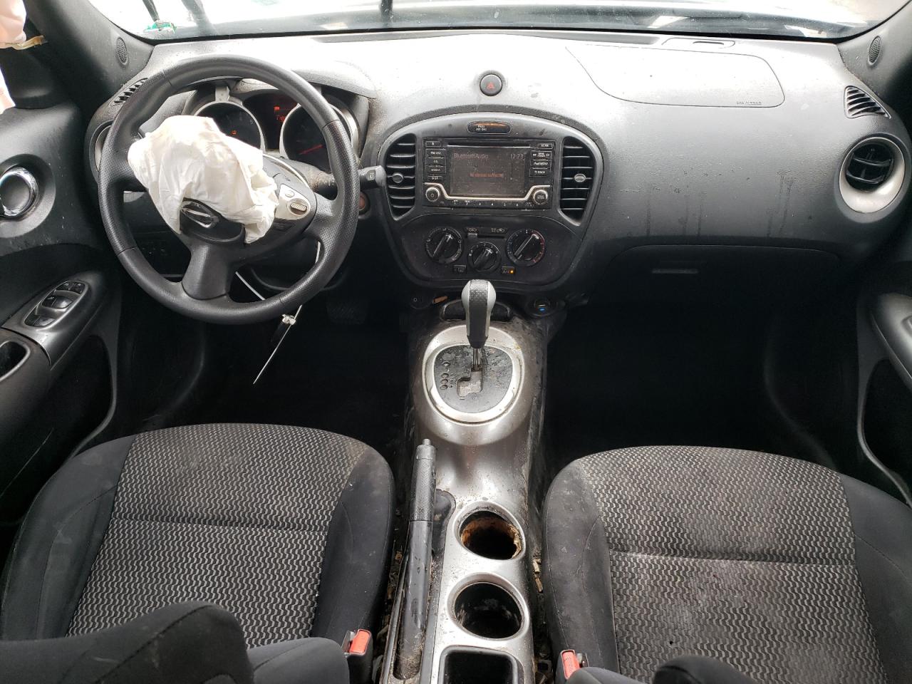 FairThis 2017 NISSAN JUKE S in black shows significant front-end damage. The primary damage is to the front end. Secondary damage is not present. The car is listed as 'Run & Drive Verified'. The interior appears to have deployed airbags, and the dashboard shows some wear. Wheels are present but the front end requires repair.