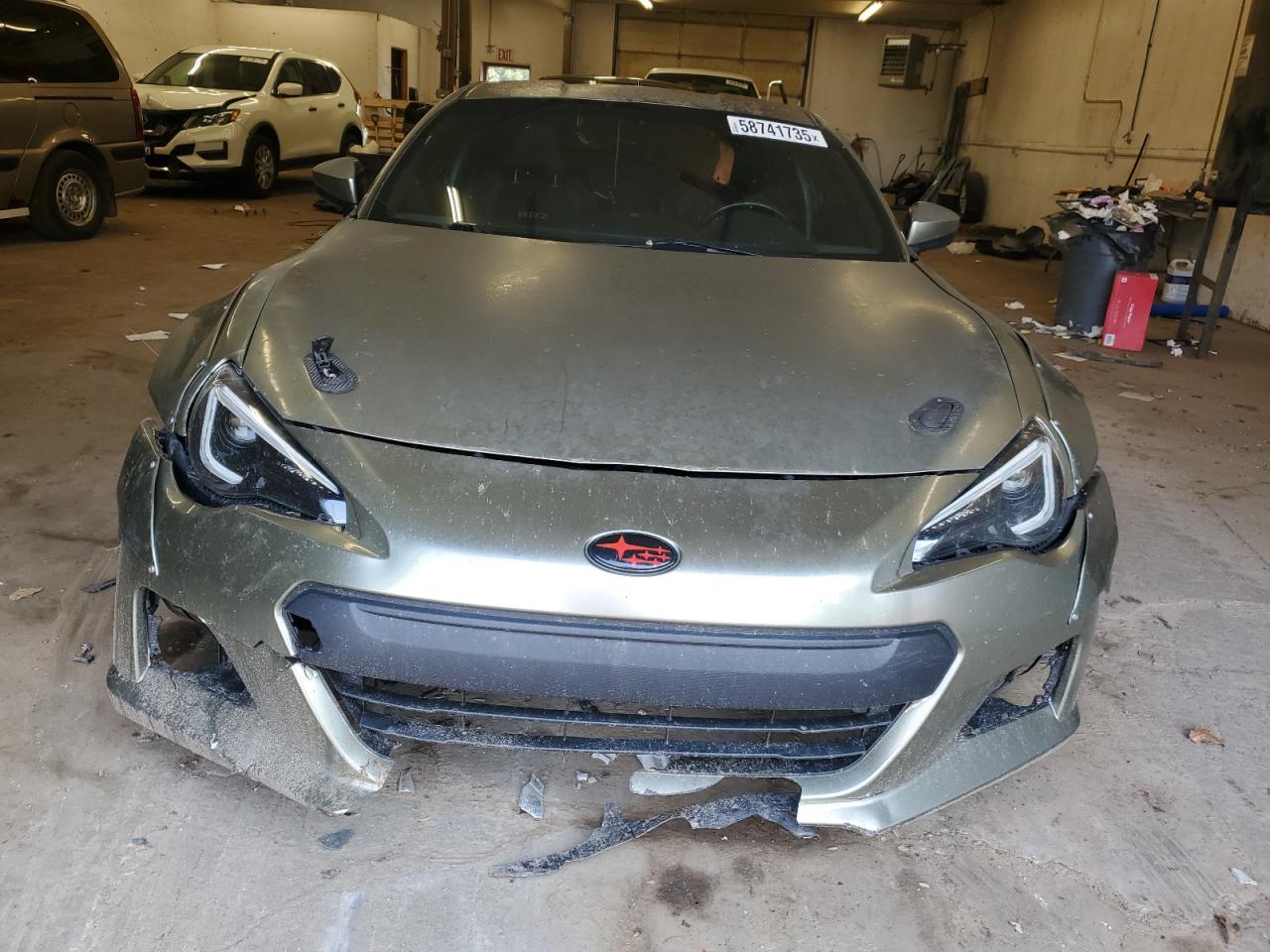 FairThis is a 2017 SUBARU BRZ 2.0 LI with front and rear end damage. The car is green and has a Run & Drive Verified status. The vehicle's condition is Fair due to significant visible body damage. The interior condition is Good. The front end and rear end shows signs of damage, including body panel issues, cosmetic damage to the lights, and possible damage to the wheels. The airbags are presumed to be functional since no details otherwise are given.