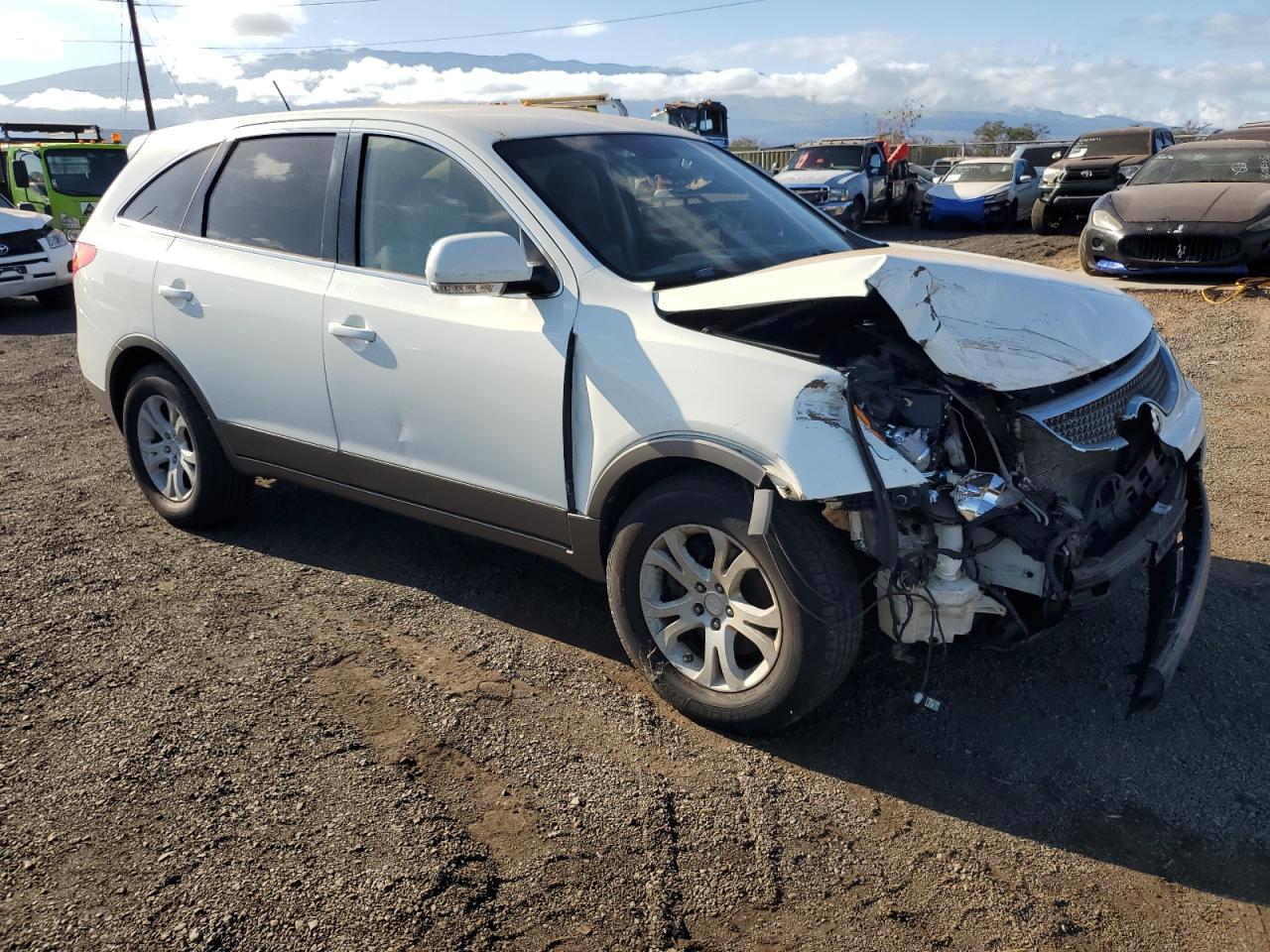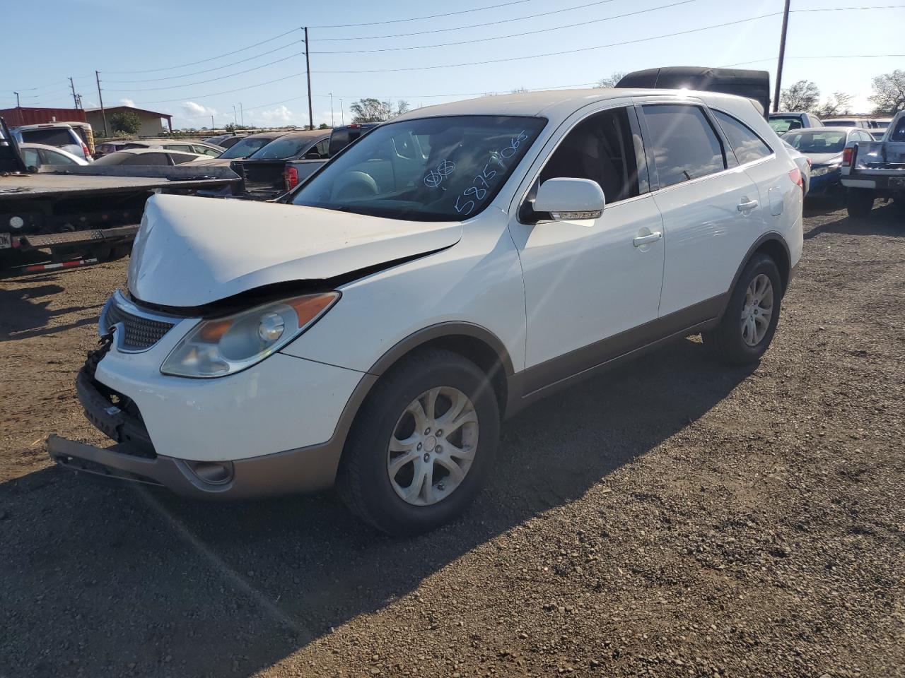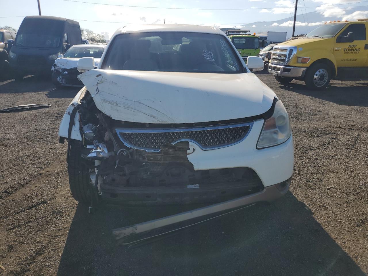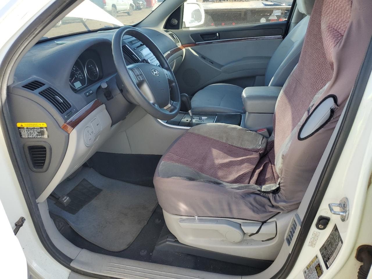 FairThe 2008 HYUNDAI VERACRUZ G, is a white SUV. The primary damage is to the FRONT END, with no secondary damage indicated. The car is a Run & Drive Verified vehicle. The front end exhibits significant damage, including the hood and front components, the lights and glasses are not specified. Interior condition appears to be in acceptable shape. There is visible damage to the seats. The airbag situation is not specified. Overall, the vehicle is in fair condition, requiring some repairs. Mechanical components are not explicitly mentioned as damaged.