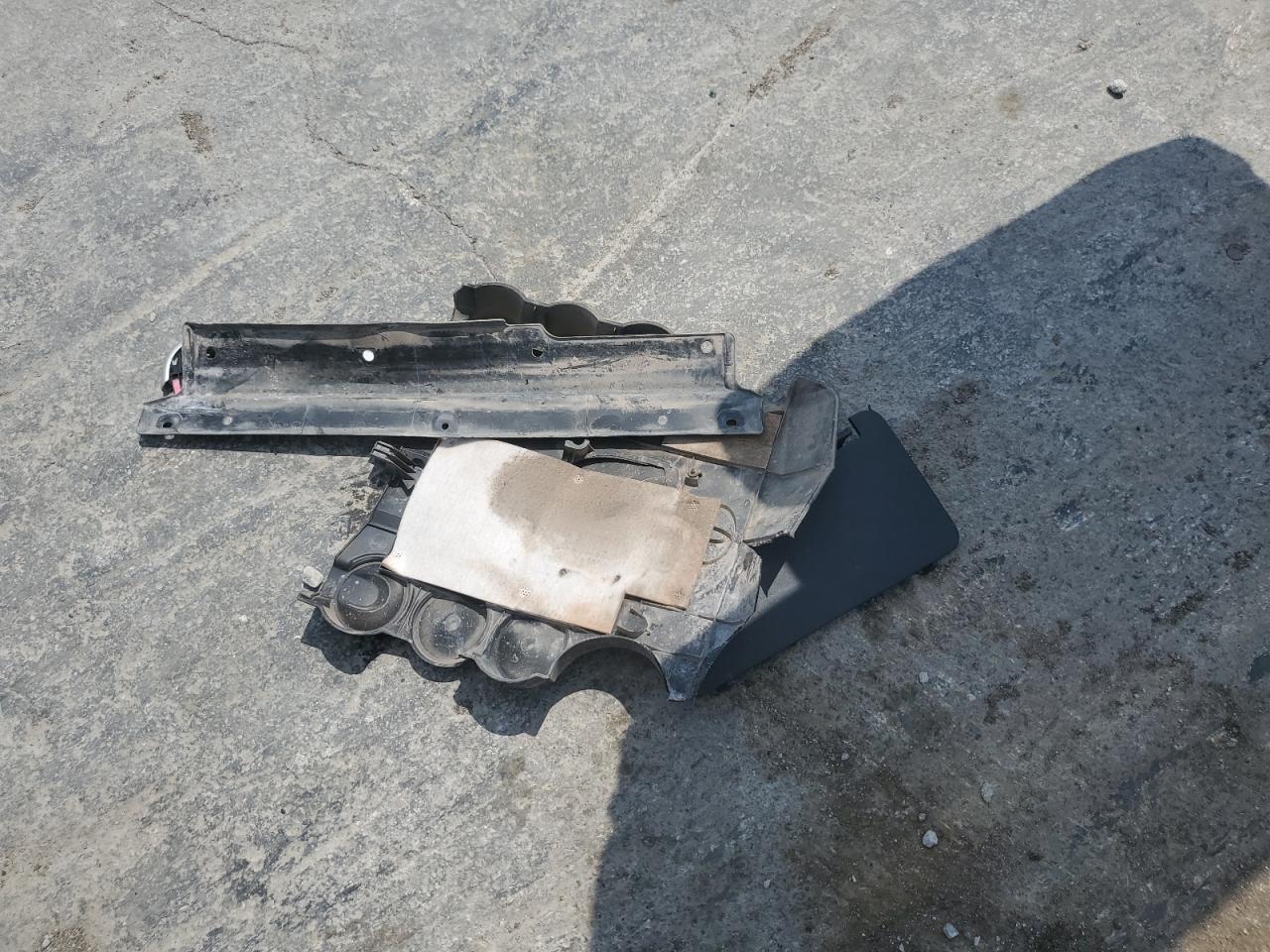 The vehicle has sustained major damage to the front end, including the bumper, hood, fenders, and headlights. There is also damage to the driver's side door. The airbags have deployed. The interior shows signs of wear and tear.
