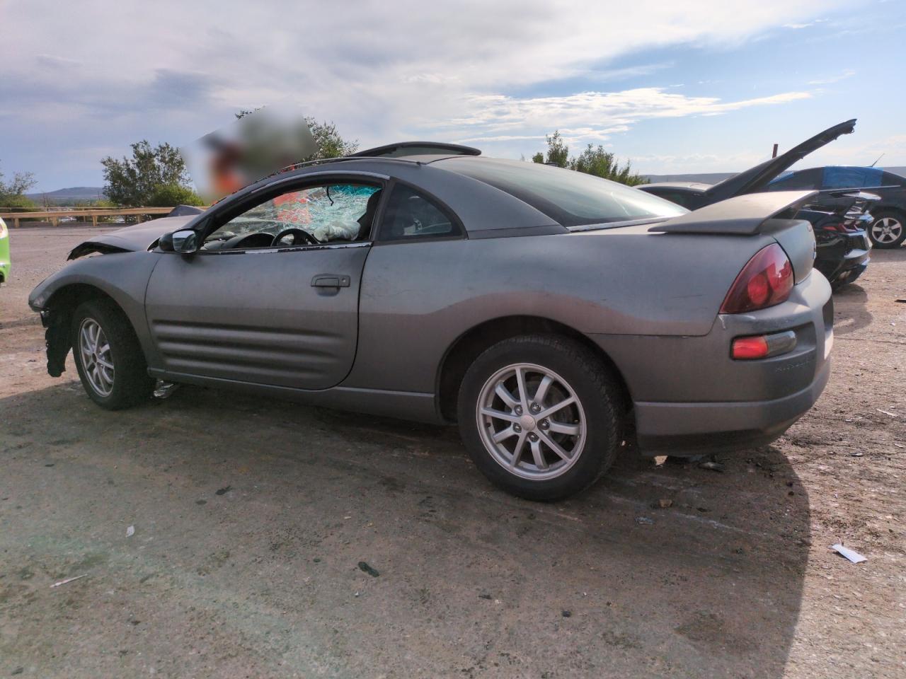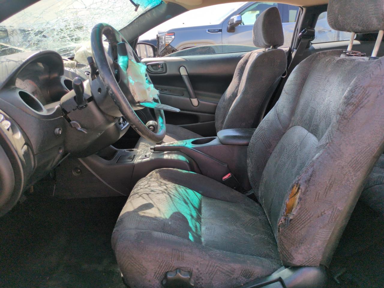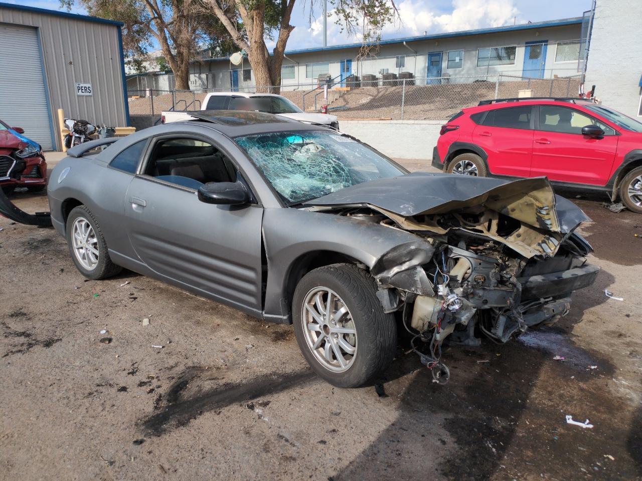 PoorThis is a heavily damaged 2002 Mitsubishi Eclipse GS. The primary damage is to the front end, with significant damage to the front, including the hood, bumper, and possibly the frame. The car is gray in color and shows signs of extensive wear and tear. The wheels appear to be intact, but the front end damage and the condition of the car suggest that repairs would be extensive. The interior also shows significant damage. The airbags have been deployed.