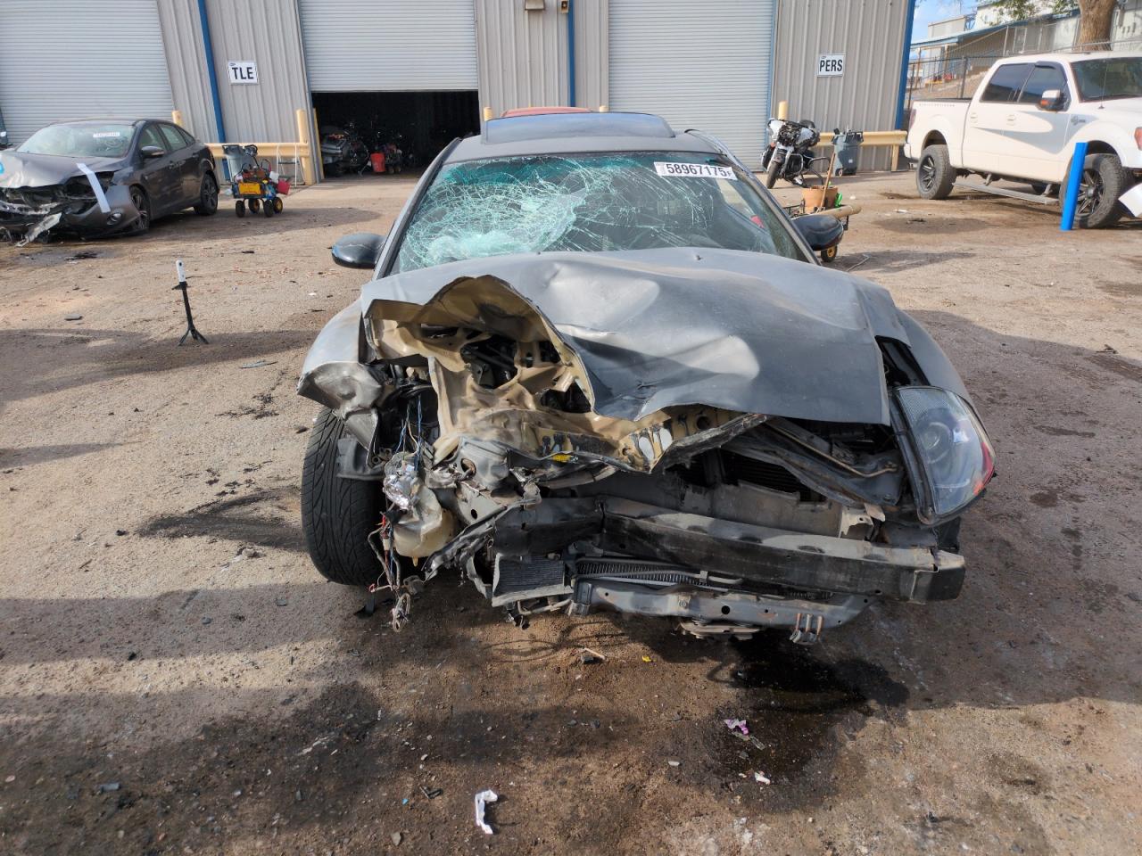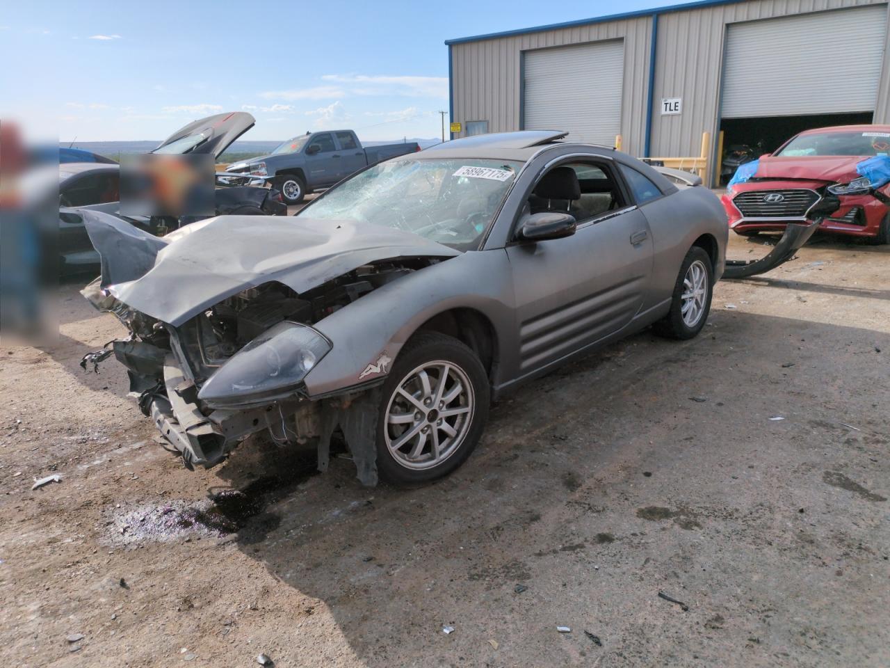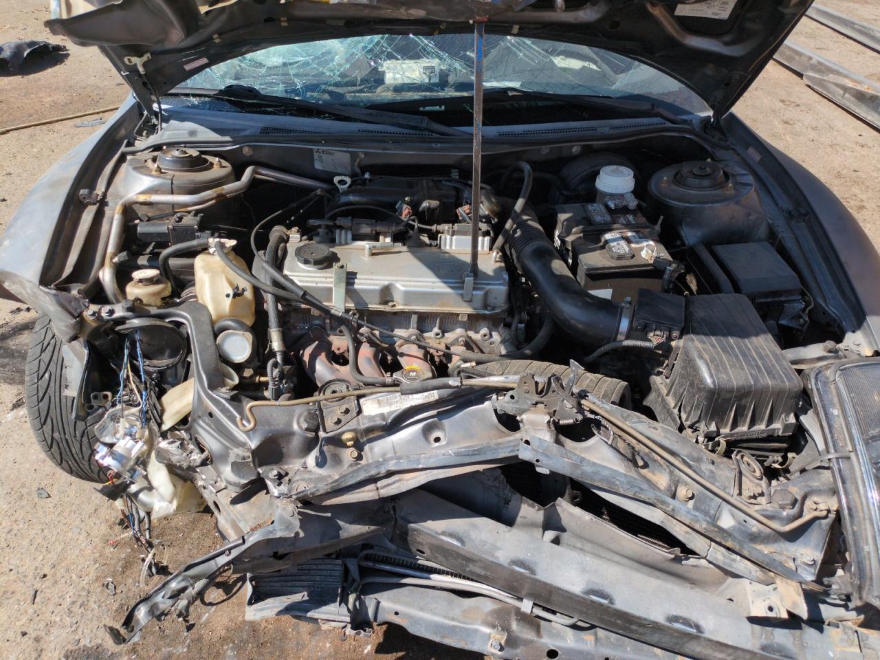 PoorThis is a heavily damaged 2002 Mitsubishi Eclipse GS. The primary damage is to the front end, with significant damage to the front, including the hood, bumper, and possibly the frame. The car is gray in color and shows signs of extensive wear and tear. The wheels appear to be intact, but the front end damage and the condition of the car suggest that repairs would be extensive. The interior also shows significant damage. The airbags have been deployed.