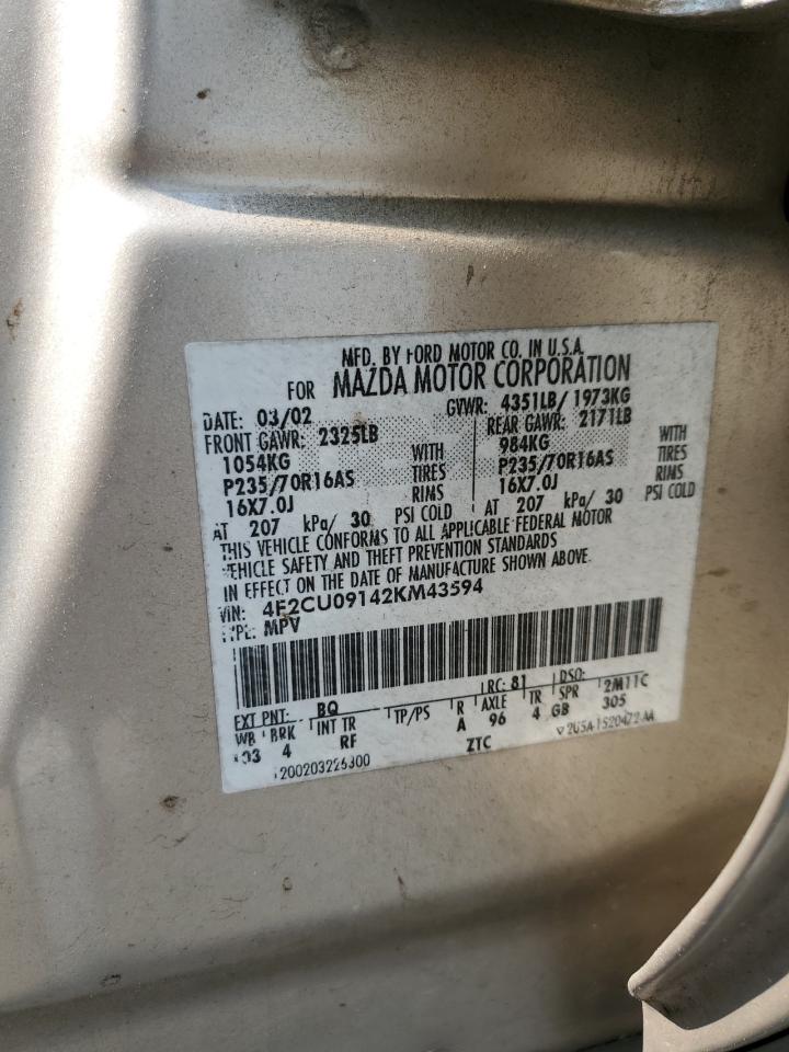 FairThe 2002 MAZDA TRIBUTE LX is a tan SUV with front-end damage, categorized as Body damage. The exterior shows moderate visible damage, requiring some repair. The interior condition is considered Good. The car is drivable, but requires repairs.