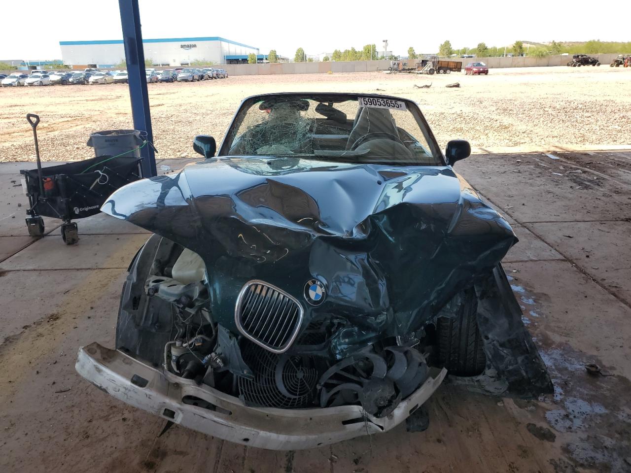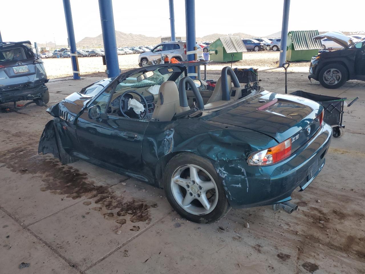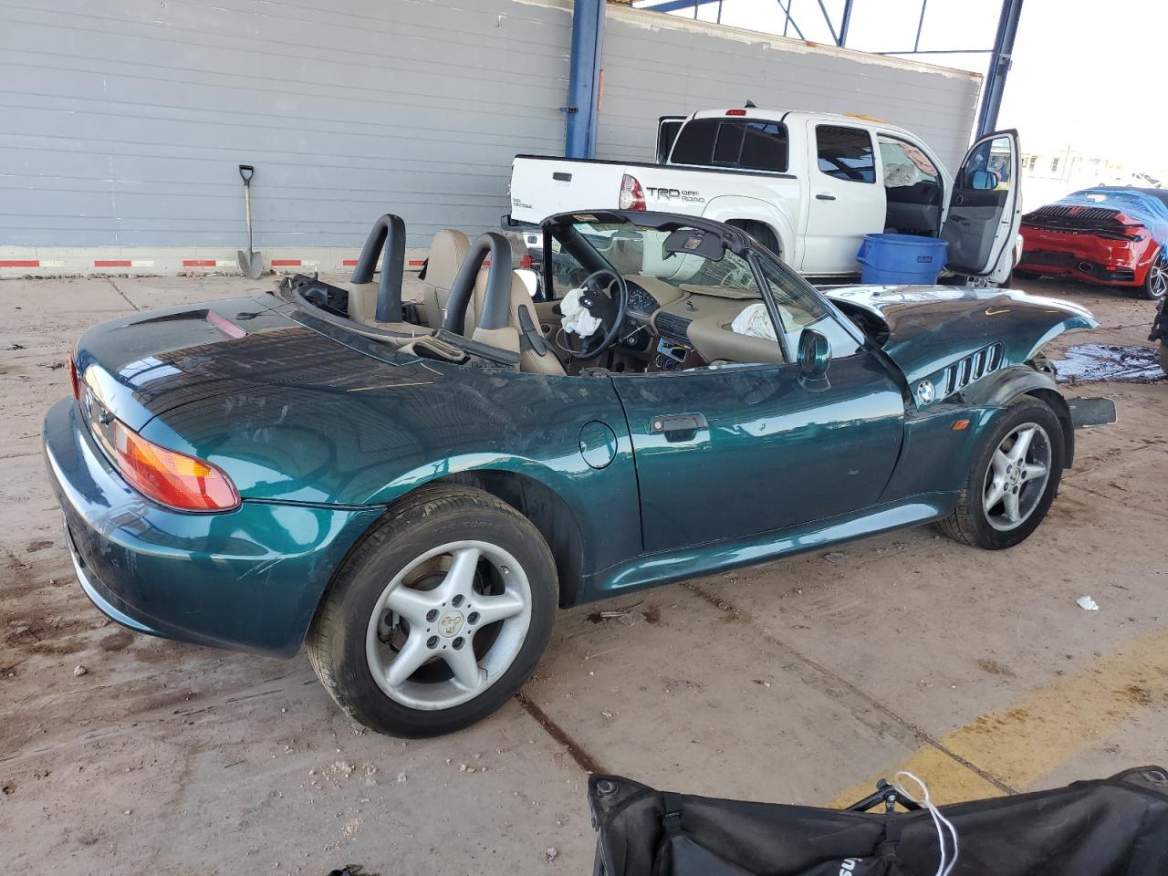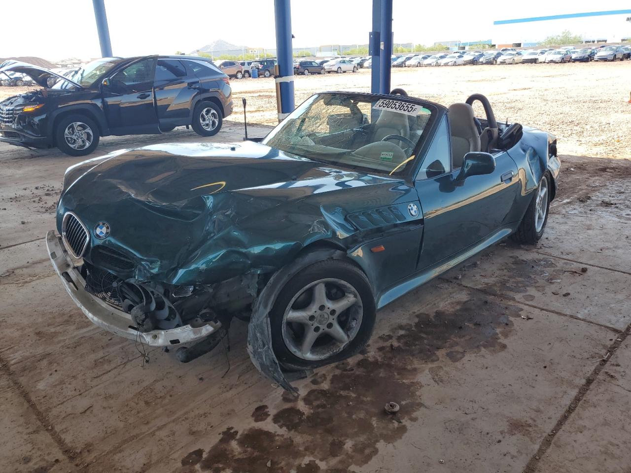 FairThis is a damaged 1998 BMW Z3 2.8 convertible. The primary damage is to the front end, with significant impact visible. The car is green, and the interior shows considerable wear and tear. The airbags have deployed, indicating a collision. The wheels appear to be intact, but the front end damage is extensive. The car is likely not drivable in its current condition.