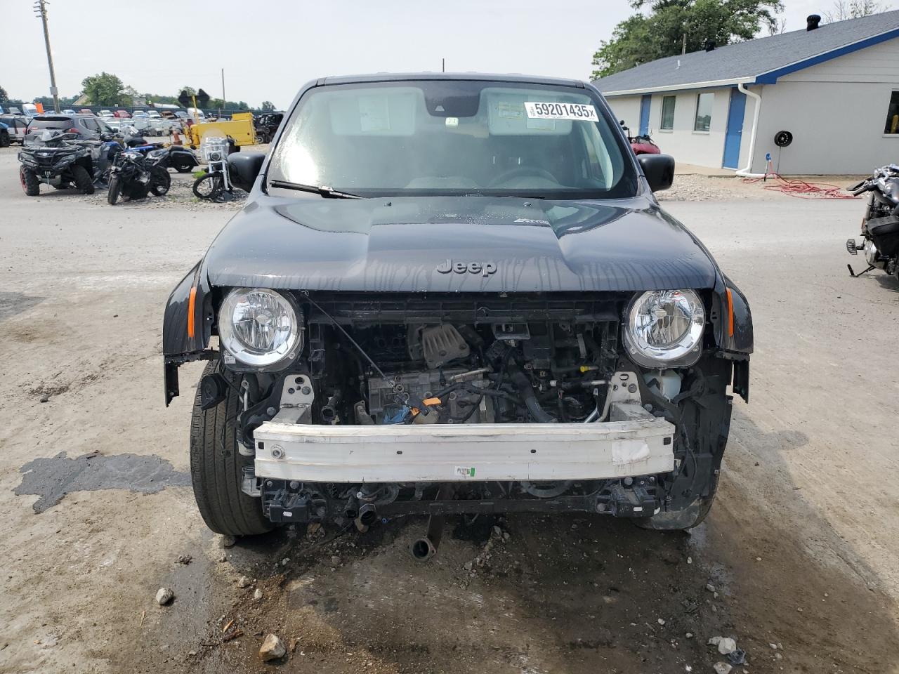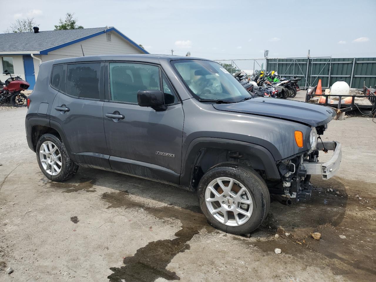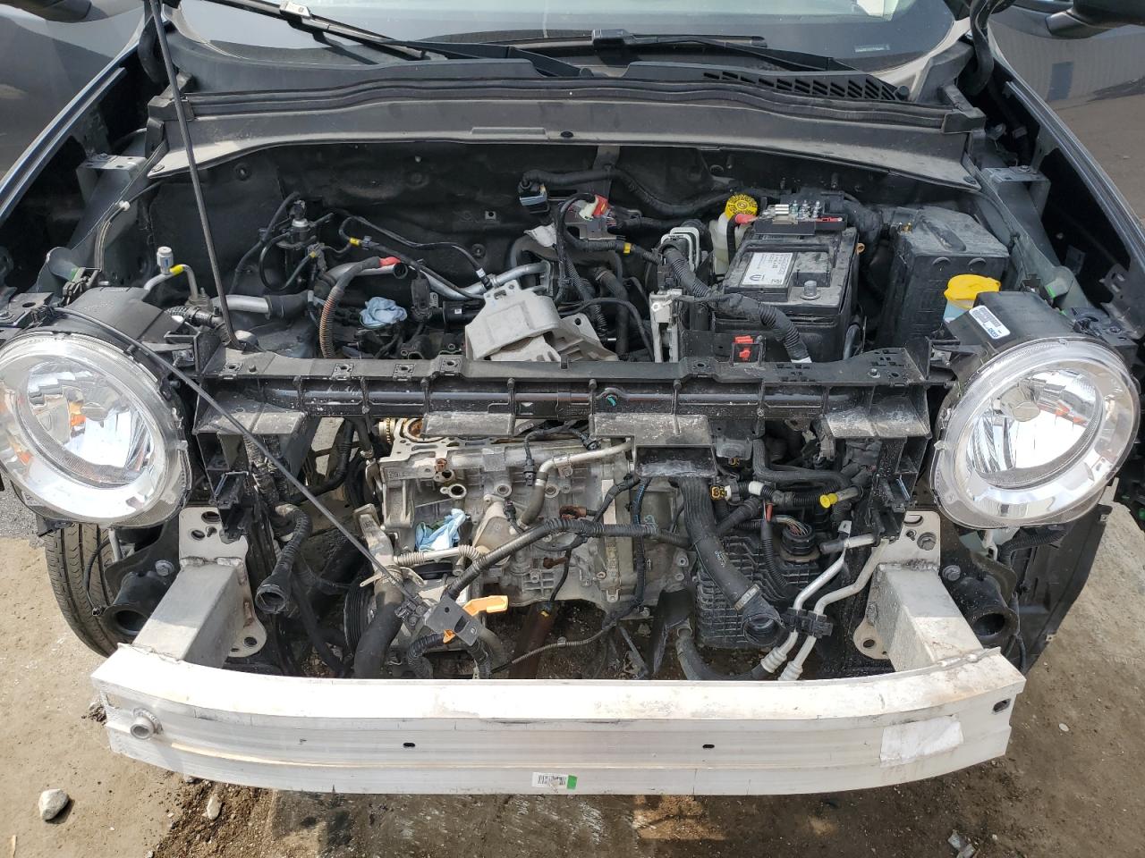FairThe charcoal gray 2023 Jeep Renegade L exhibits front-end damage, impacting its overall condition. The car's interior shows minimal wear. The vehicle appears drivable, but front-end repairs are necessary. The wheels and lights are in good condition, and there is no damage to the glasses. Airbags are not deployed. The damage includes a missing front bumper, headlights, and possible damage to the front structure. The vehicle's Vehicle Damage Category is 'Body'.