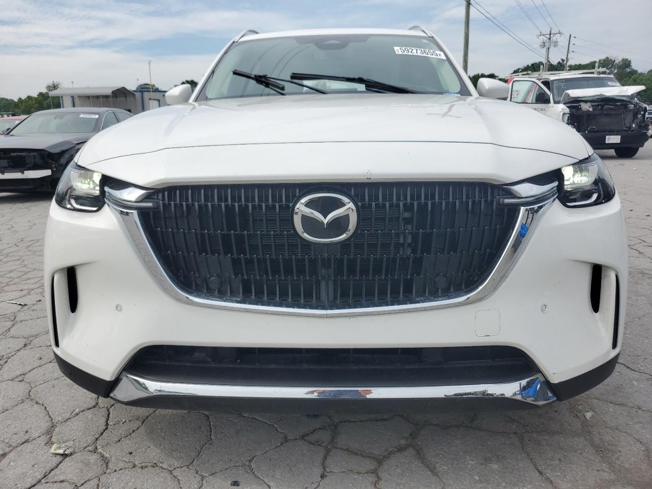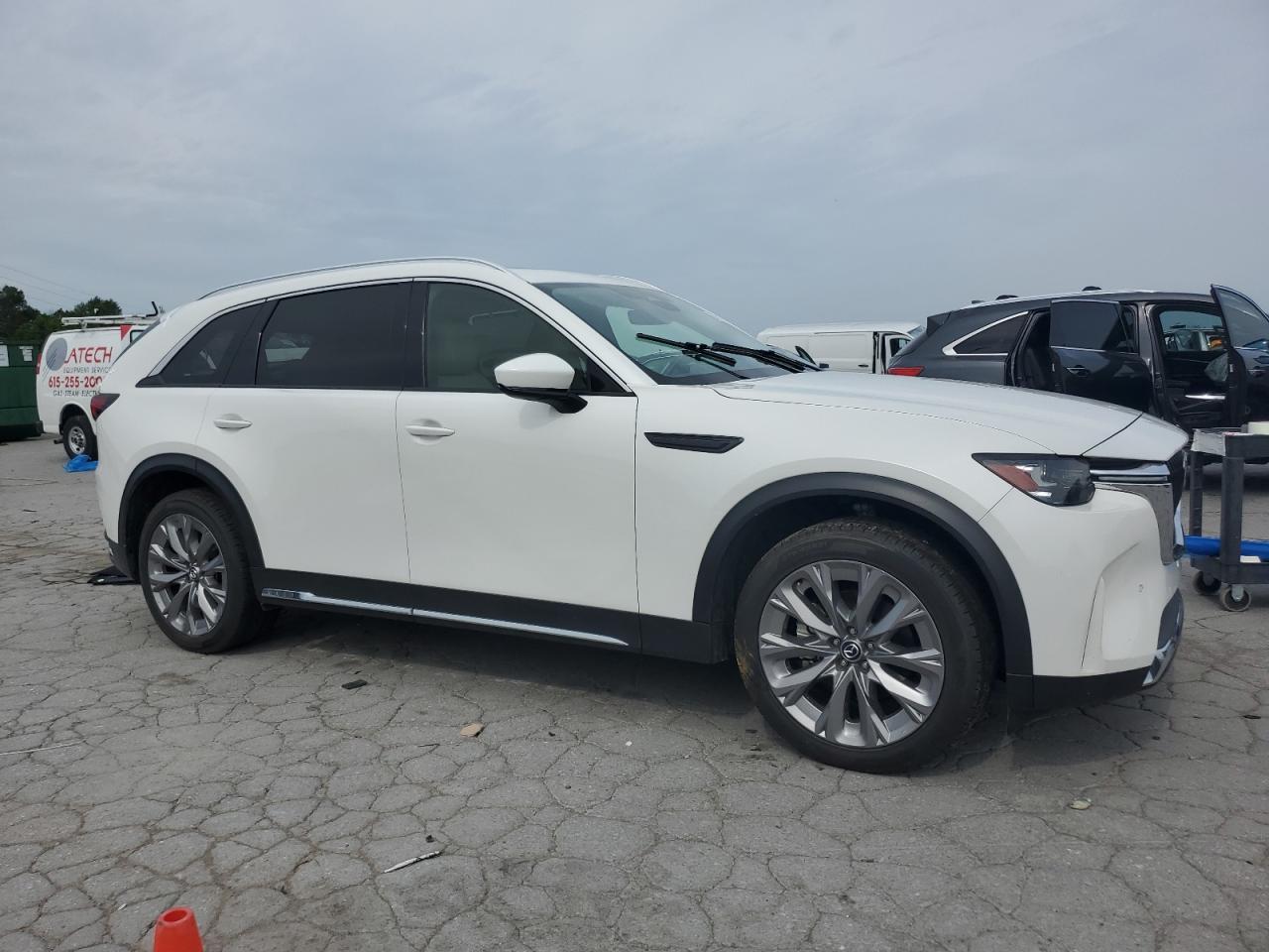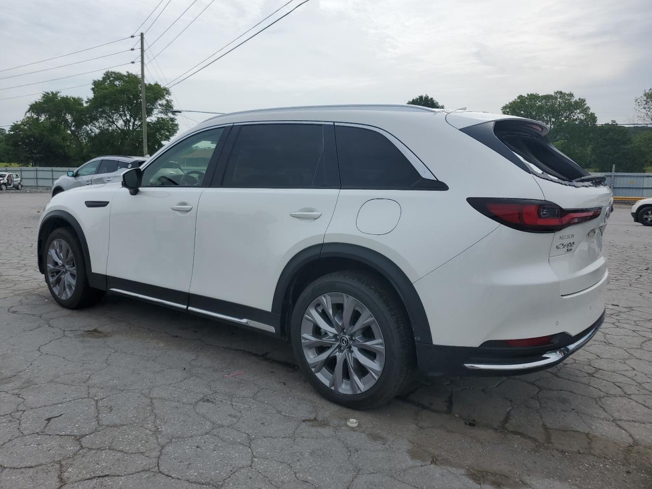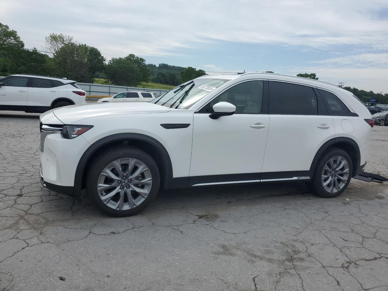 FairThe MAZDA CX-90 PREM 2024 exhibits damage. The primary damage is located in the REAR END, and secondary damage is due to HAIL. The car is white and has a Run & Drive Verified start code.