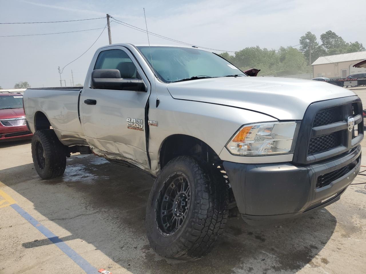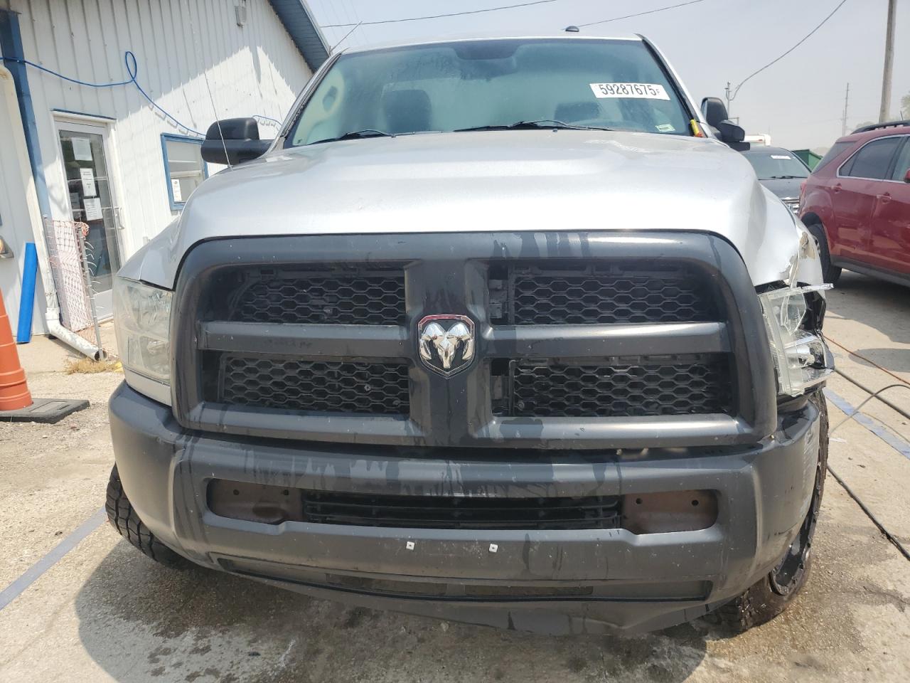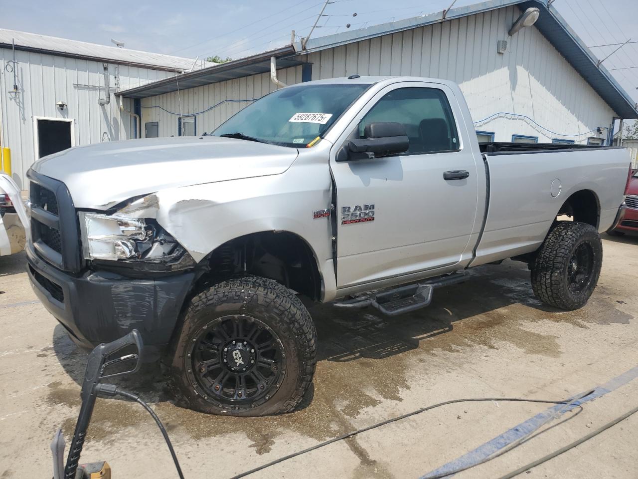 FairThe 2016 RAM 2500 ST, silver in color, shows significant damage, primarily to the side and front end. The vehicle starts, and its interior appears to be in decent condition. However, the exterior damage necessitates repairs before it can be driven. The vehicle's wheels and lights have been impacted.