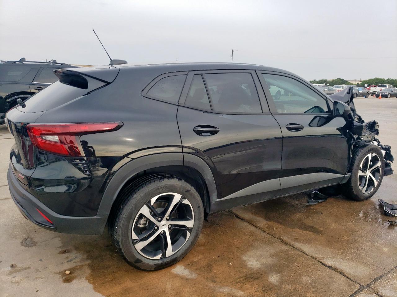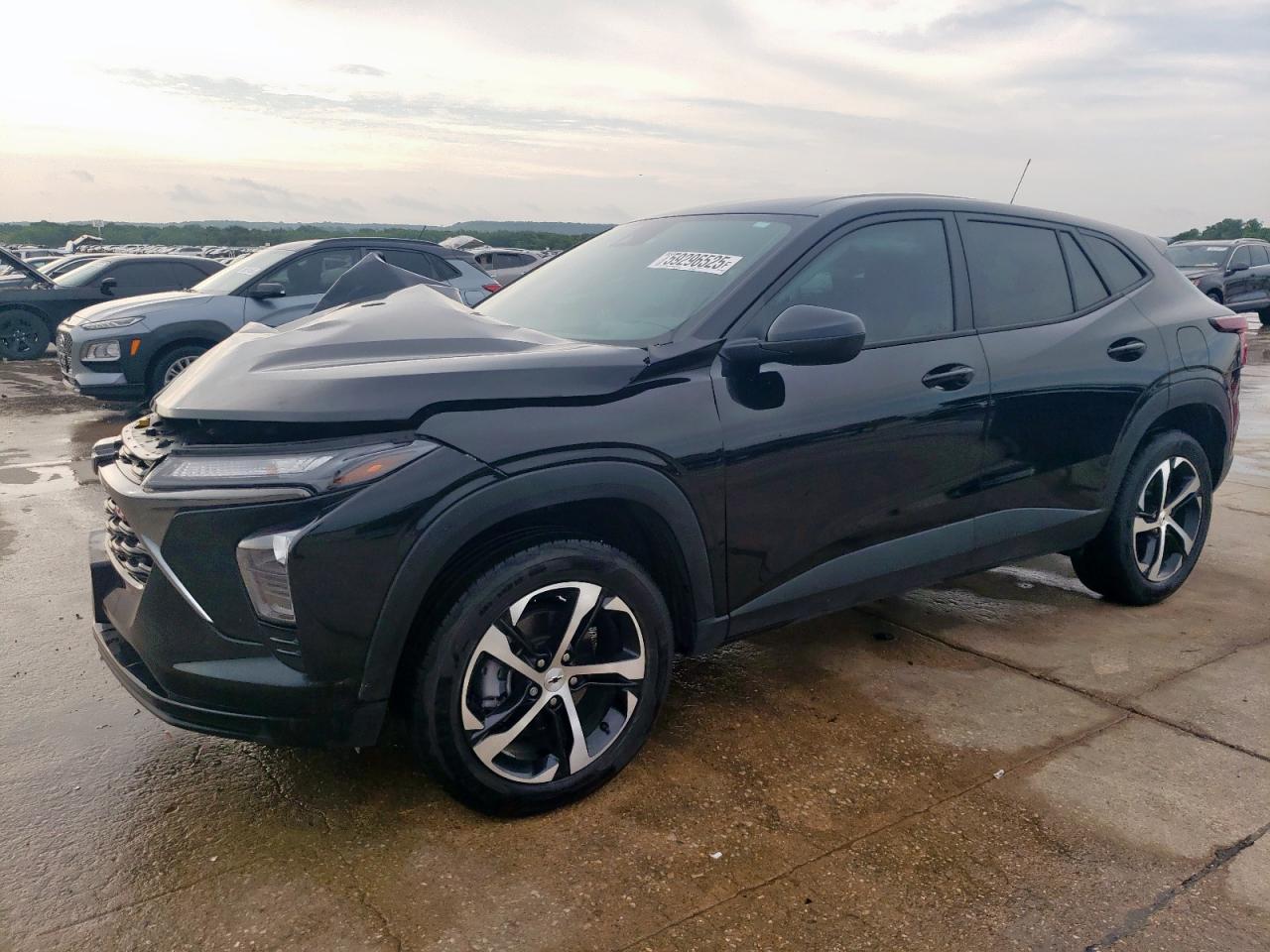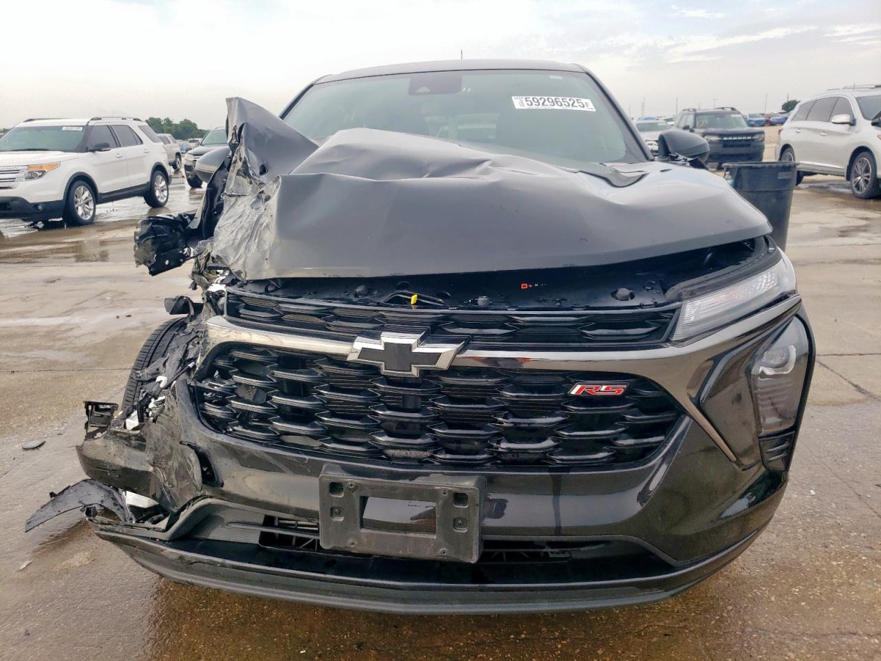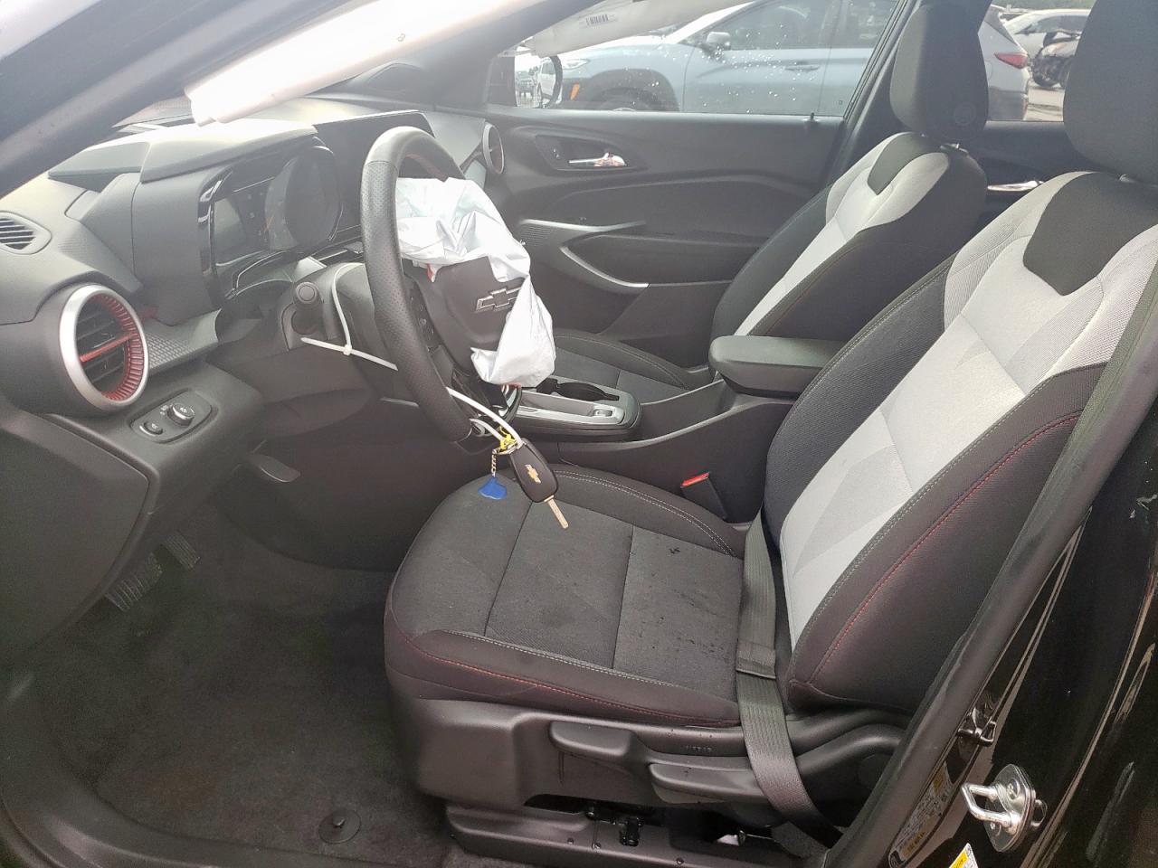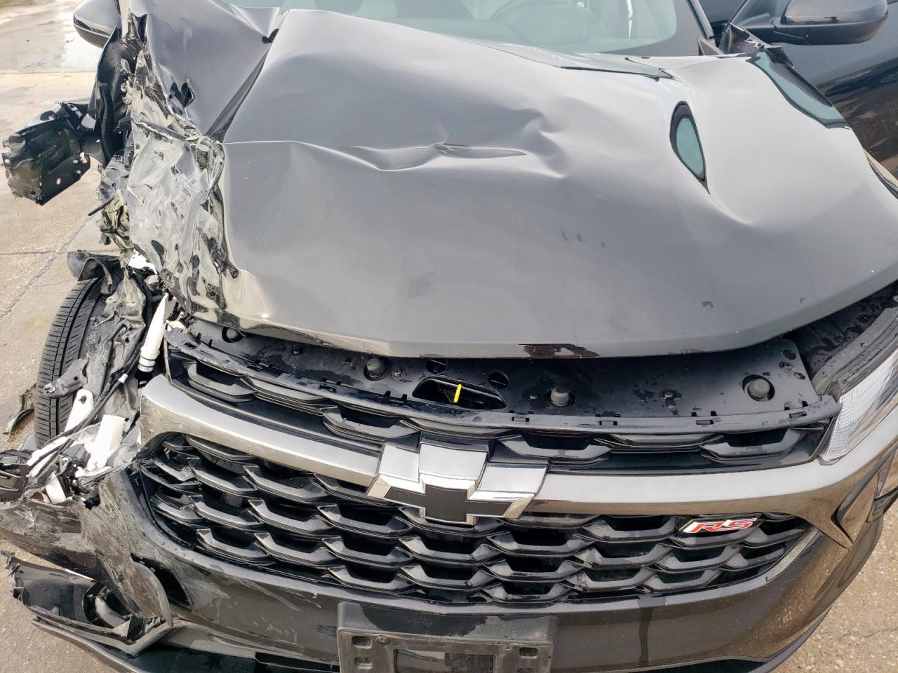 FairThe CHEVROLET TRAX 1RS 2025 in black exhibits significant front-end damage, categorized as Body damage. The exterior condition is assessed as Fair due to the extensive damage. The interior condition is Fair, with possible airbag deployment. The vehicle's overall state is Fair, suggesting it requires considerable repair. The car has visible damage to the front end, including the hood, bumper, lights, and possibly the frame. The wheels appear to be in decent condition. The interior shows possible airbag deployment and damage consistent with the impact.