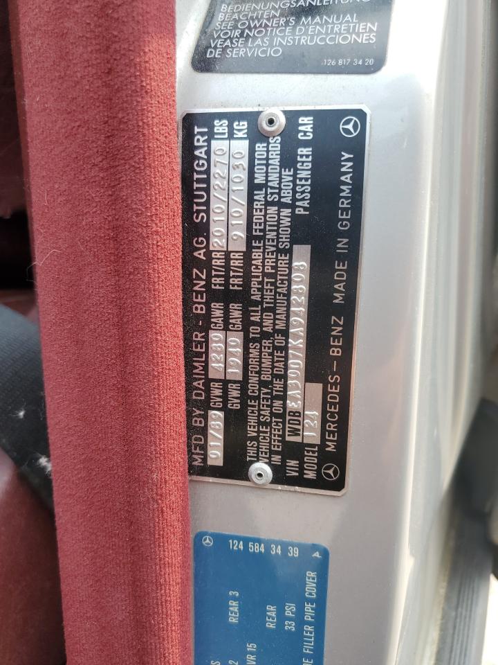GoodThe 1989 Mercedes-Benz 300 E appears to be in generally good condition. The silver exterior shows normal wear and tear, with no significant body damage, suggesting it falls into the 'Body' category. Interior condition is also good with no major damage. The car runs and drives, according to the 'Run & Drive Verified' start code. The wheels and lights seem to be in good shape. The interior is in good condition. The airbag condition is unknown. The car is drivable. This car could be a good choice for someone who wants a classic Mercedes in overall decent condition.