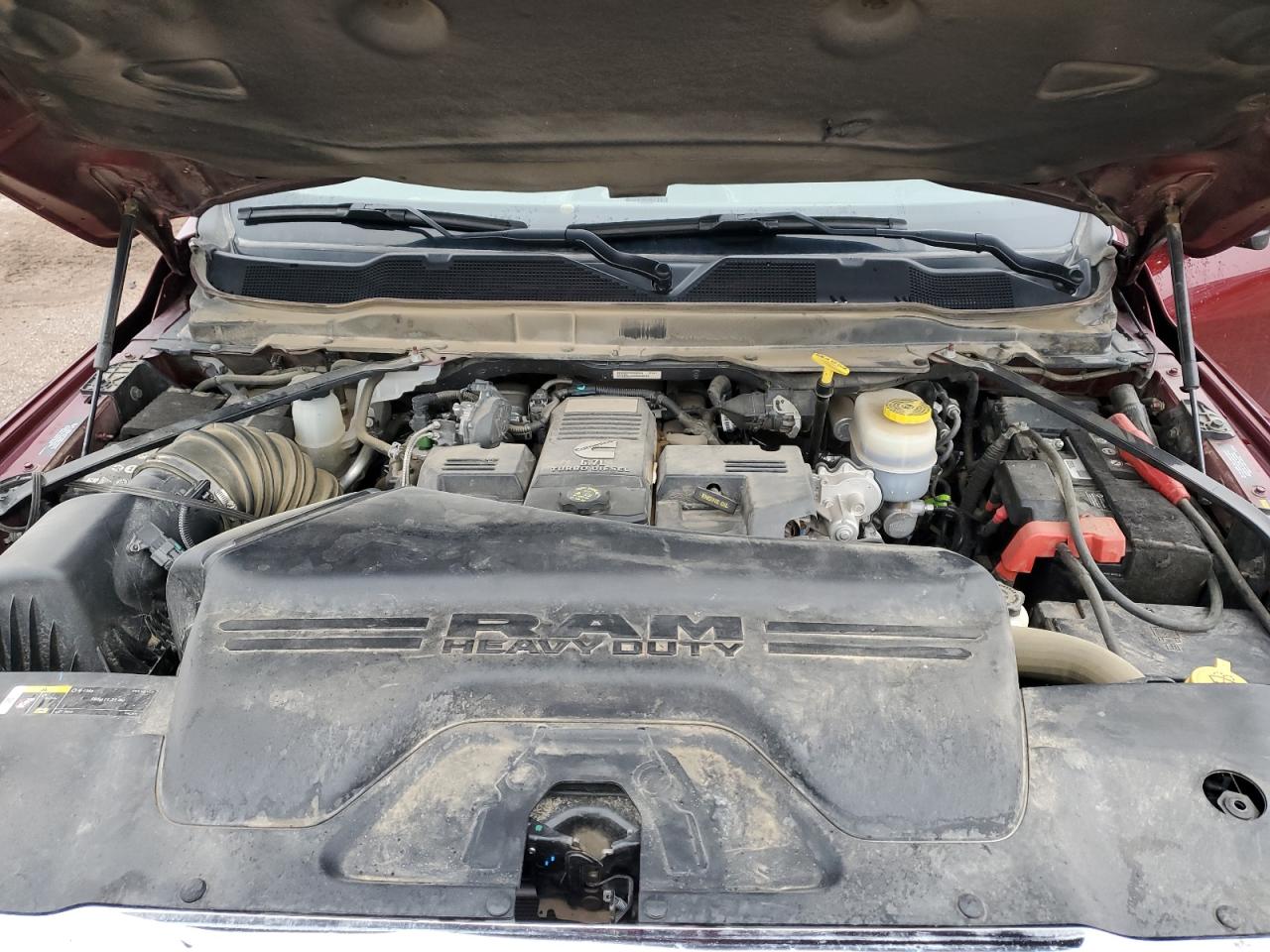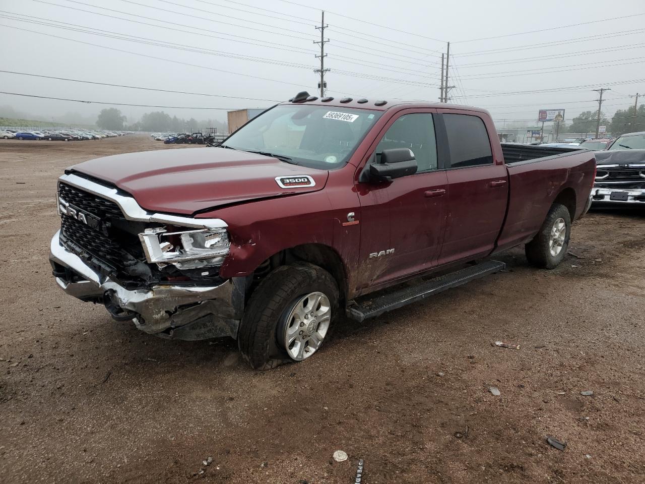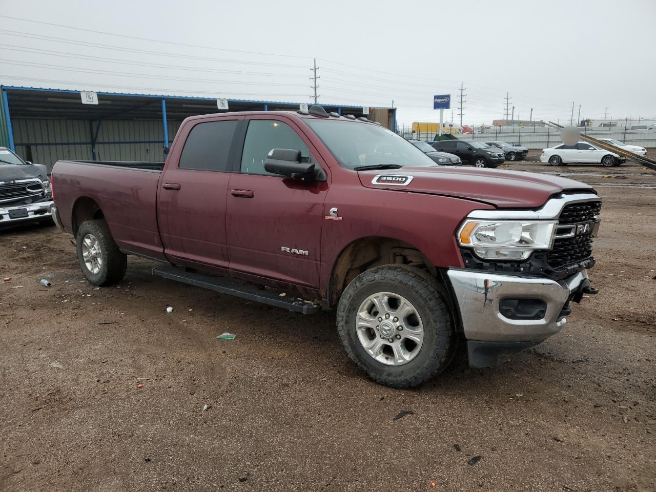 FairThis is a maroon 2022 RAM 3500 BIG H with front-end and undercarriage damage. The vehicle's Run & Drive status is verified.