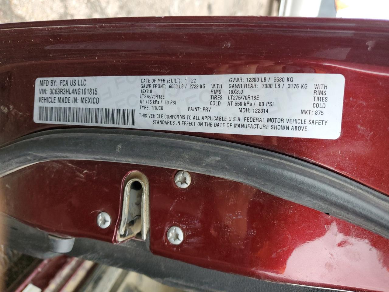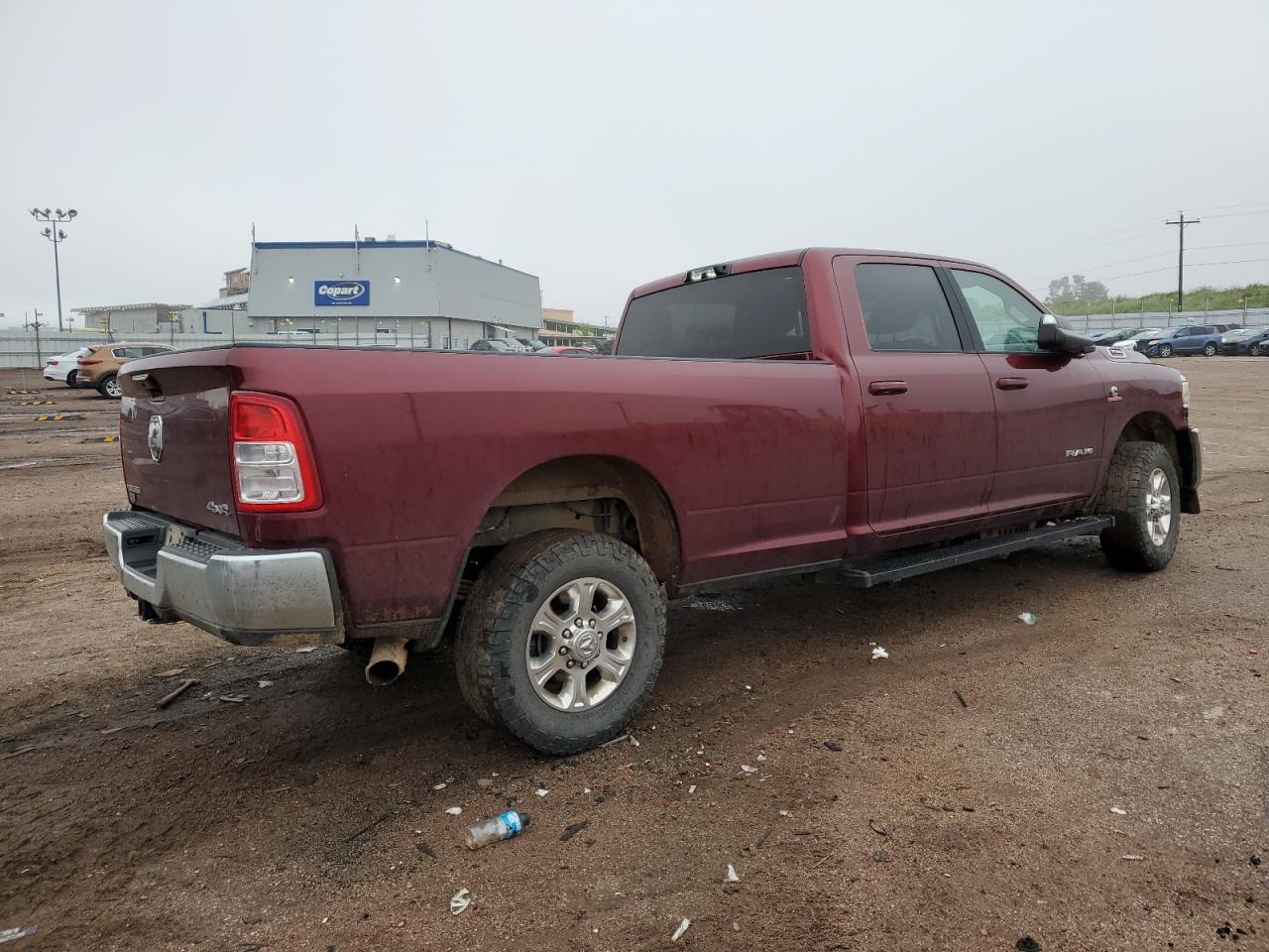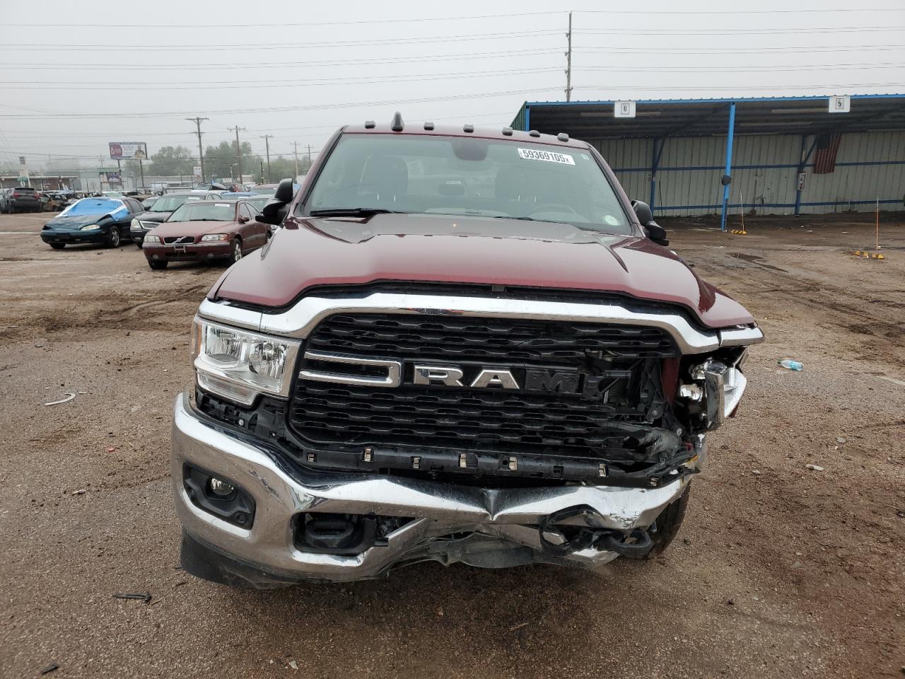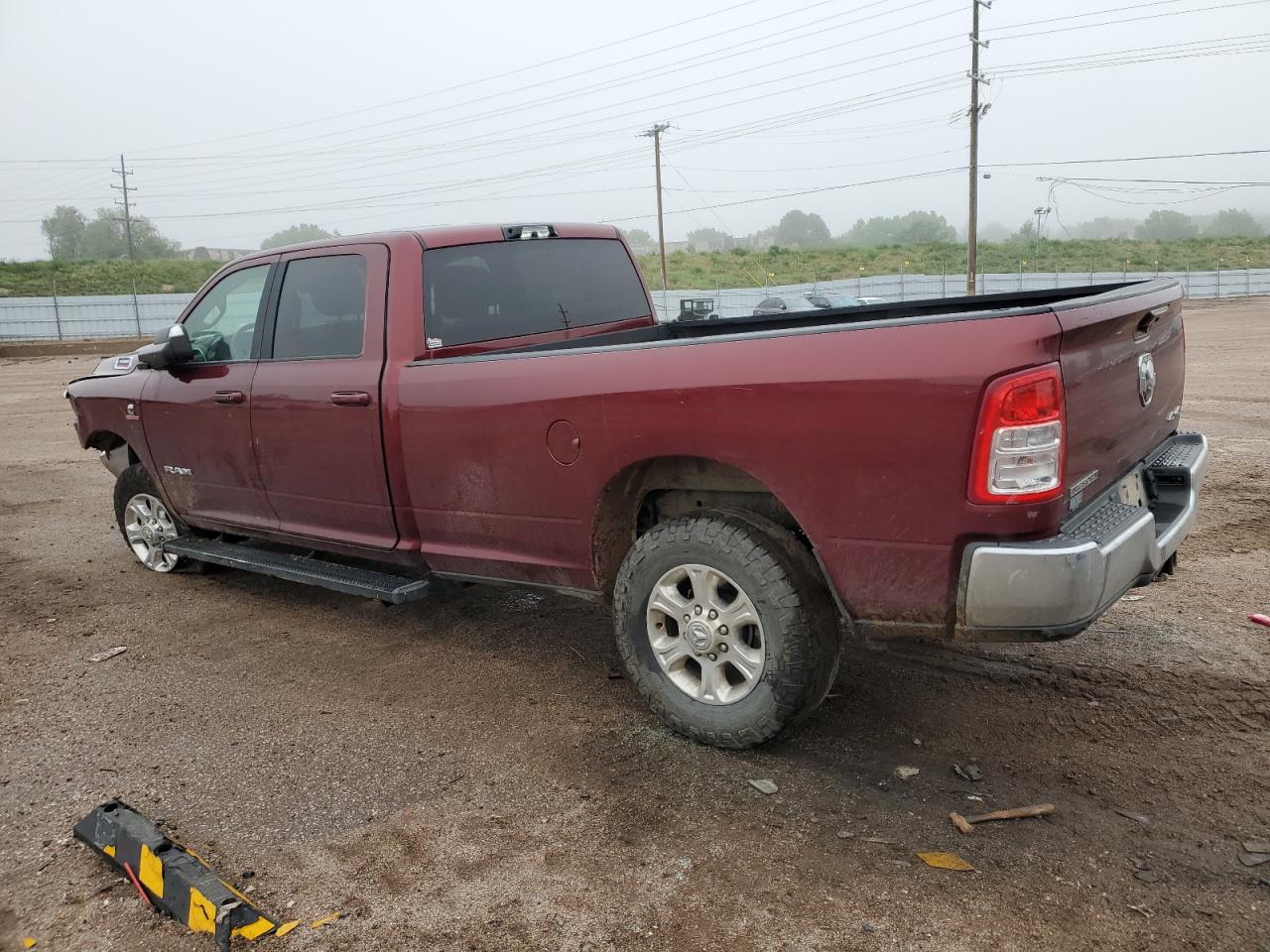 FairThis is a maroon 2022 RAM 3500 BIG H with front-end and undercarriage damage. The vehicle's Run & Drive status is verified.