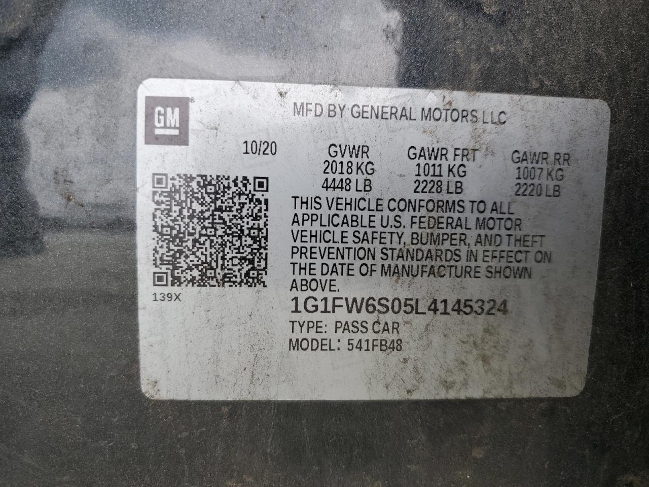 1G1FW6S05L4145324Final Bid