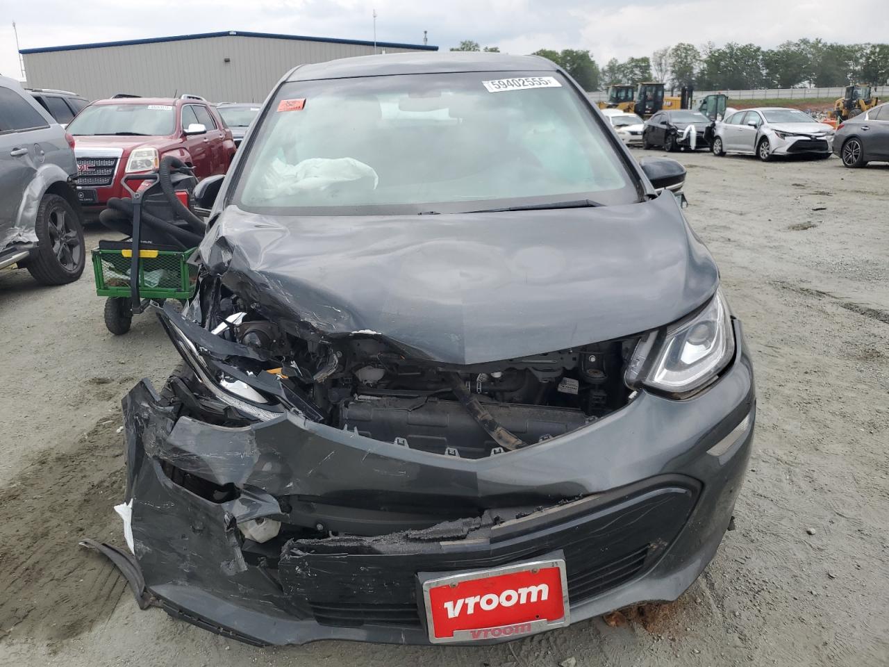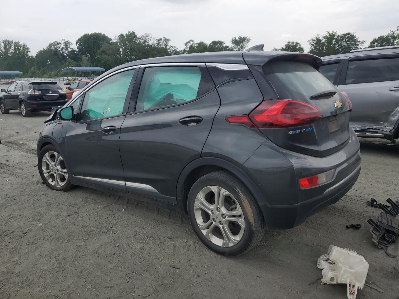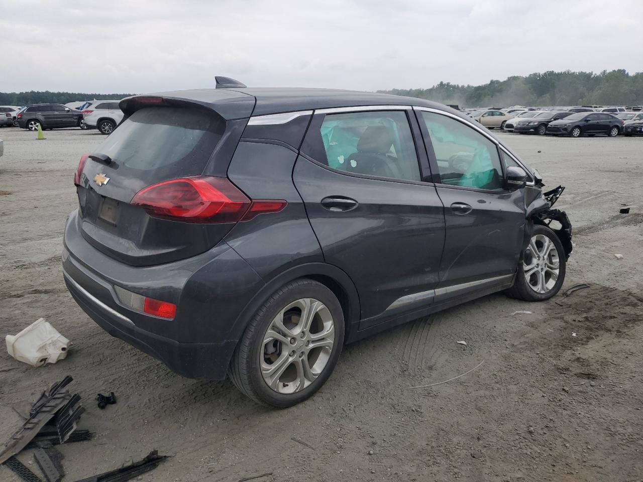 FairThe CHEVROLET BOLT EV LT 2020, a gray electric hatchback, shows significant front-end damage in multiple images, indicating a serious collision. The front is extensively damaged with body panels crumpled and structural components compromised. The interior also appears to have suffered damage, possibly due to airbag deployment. The vehicle's wheels, lights, and glasses appear to be in salvageable condition, it can be inspected more carefully. This car likely needs considerable repair, affecting both its exterior and interior.