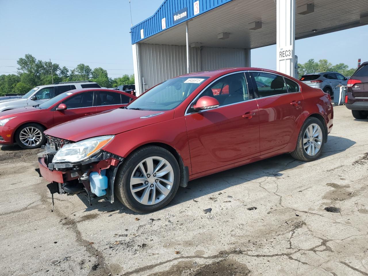 FairThe 2015 BUICK REGAL PREM is a red sedan with visible damage to the front end and side. The car's starting condition is 'Run & Drive Verified'. The damage assessment reveals a Vehicle Damage Category of 'Body'. The vehicle is drivable despite the damage, but repair is needed. The interior condition is generally in good shape. The front end sustained significant damage. The lights and glasses appear to be intact. The wheels appear to be fine.