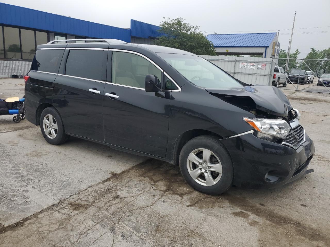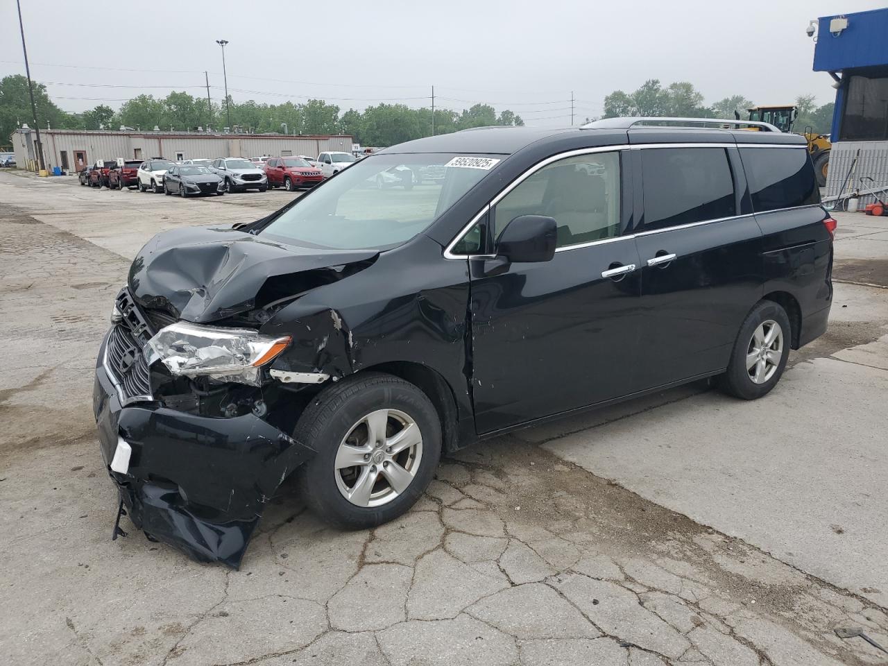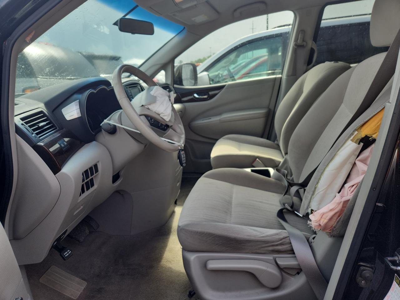 FairThis is a black 2017 Nissan Quest S with front-end damage. The car's exterior shows signs of impact, with damage concentrated at the front. Despite the visible damage, the vehicle appears to be drivable, as indicated by the "Run & Drive Verified" status. The interior shows signs of usage with some minor wear and tear. The images reveal damage to the front of the vehicle, with potential impact on the front lights, and front body panels. The glass appears intact, while the wheels seem to be in good condition. The airbags have been deployed.
