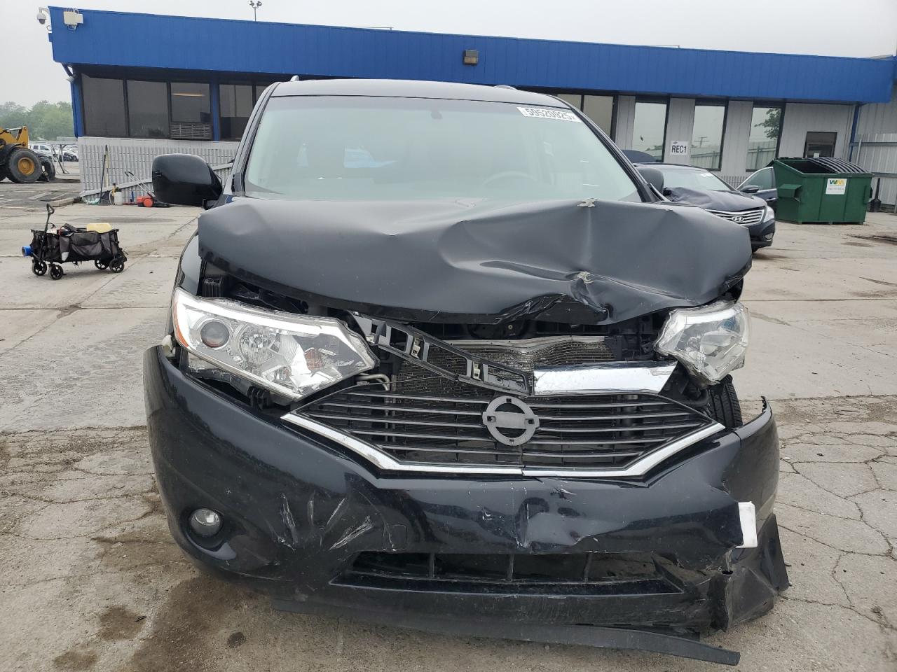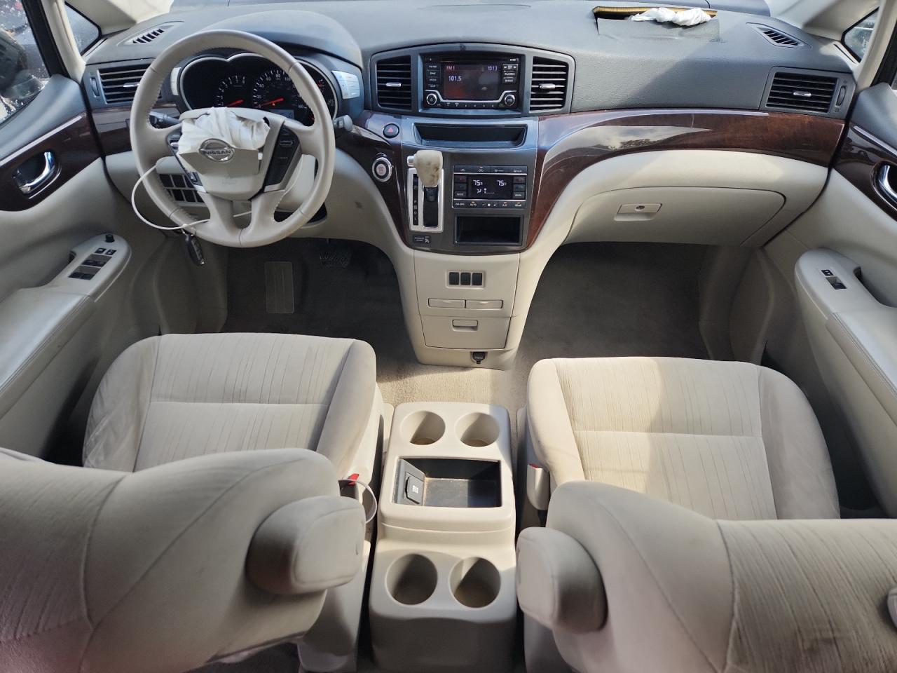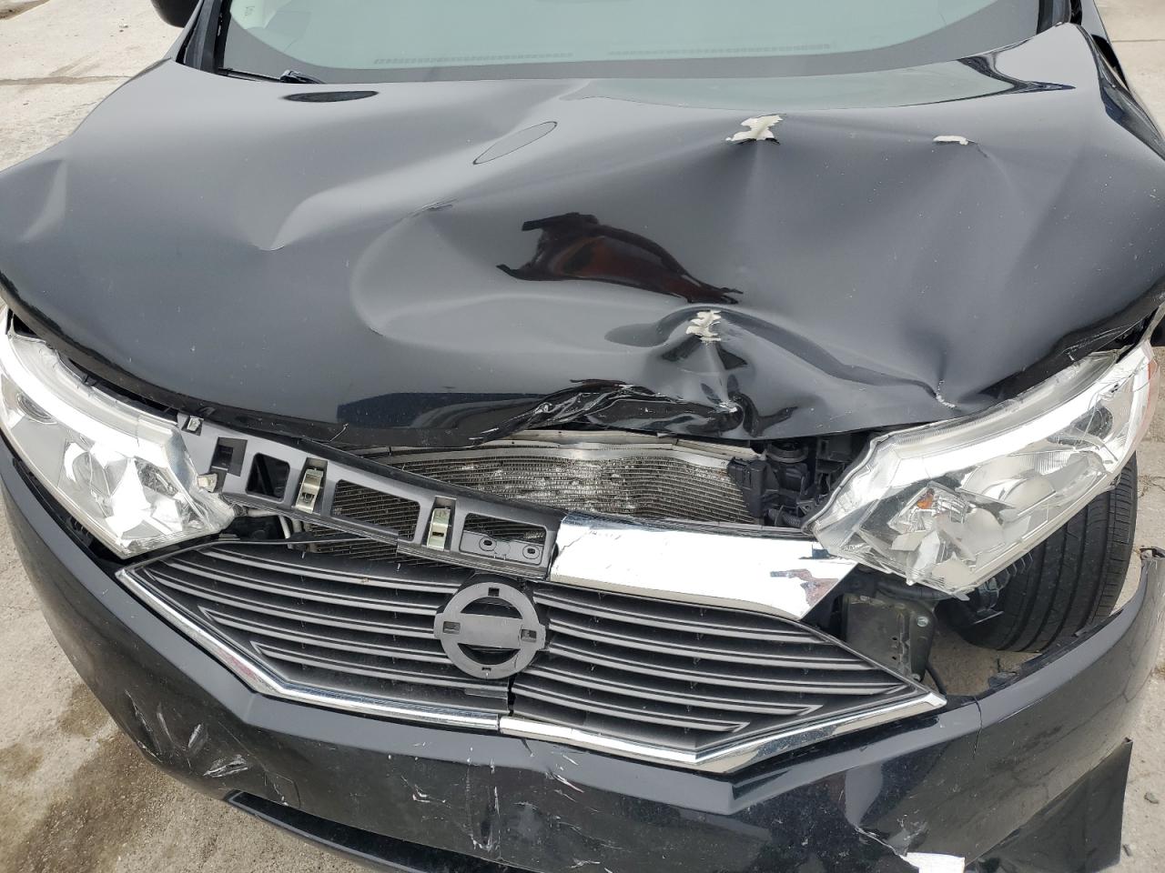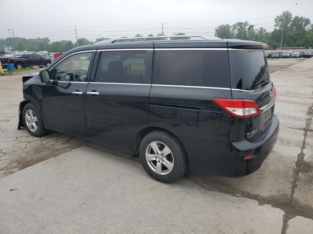 FairThis is a black 2017 Nissan Quest S with front-end damage. The car's exterior shows signs of impact, with damage concentrated at the front. Despite the visible damage, the vehicle appears to be drivable, as indicated by the "Run & Drive Verified" status. The interior shows signs of usage with some minor wear and tear. The images reveal damage to the front of the vehicle, with potential impact on the front lights, and front body panels. The glass appears intact, while the wheels seem to be in good condition. The airbags have been deployed.