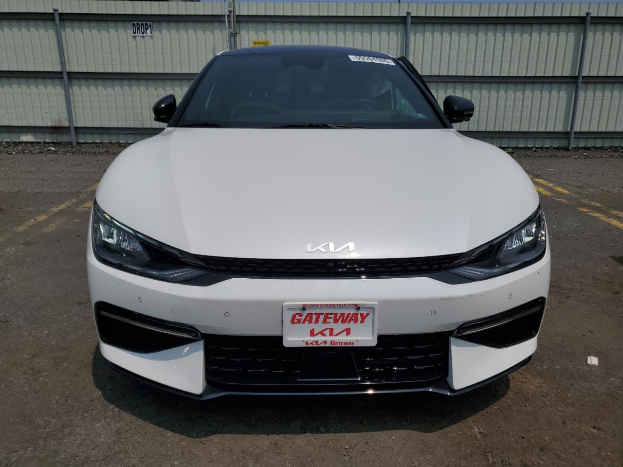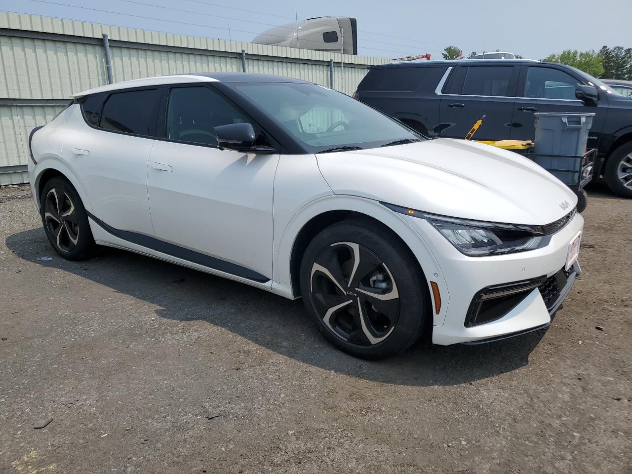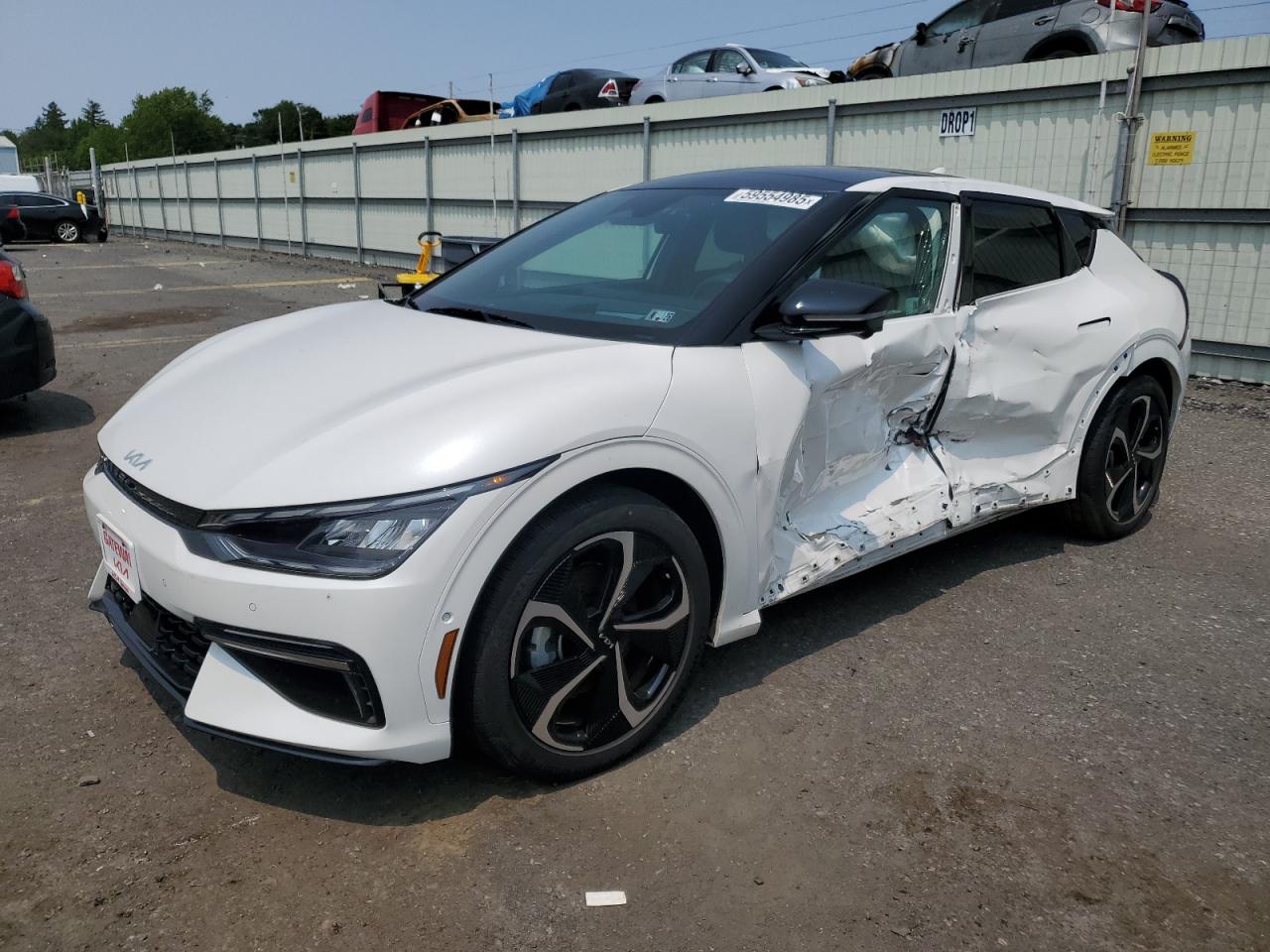FairThe white 2023 KIA EV6 GT-Line exhibits significant side damage. The primary damage is evident on the side body panels, indicating a Body Vehicle Damage Category. Despite the damage, the vehicle's interior appears to be in Good condition. The car starts, suggesting a potential for drivability with necessary repairs. The wheels and lights seem intact. The front glass is good. The airbag deployment status is unknown. The vehicle's overall state is Fair, requiring moderate repairs.