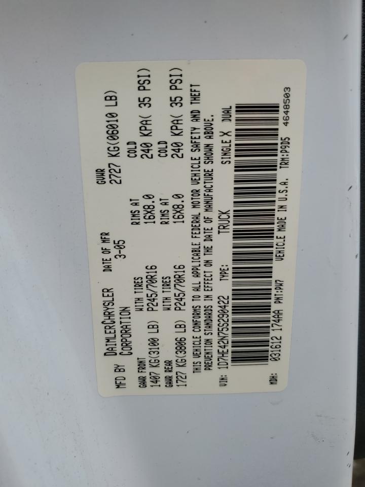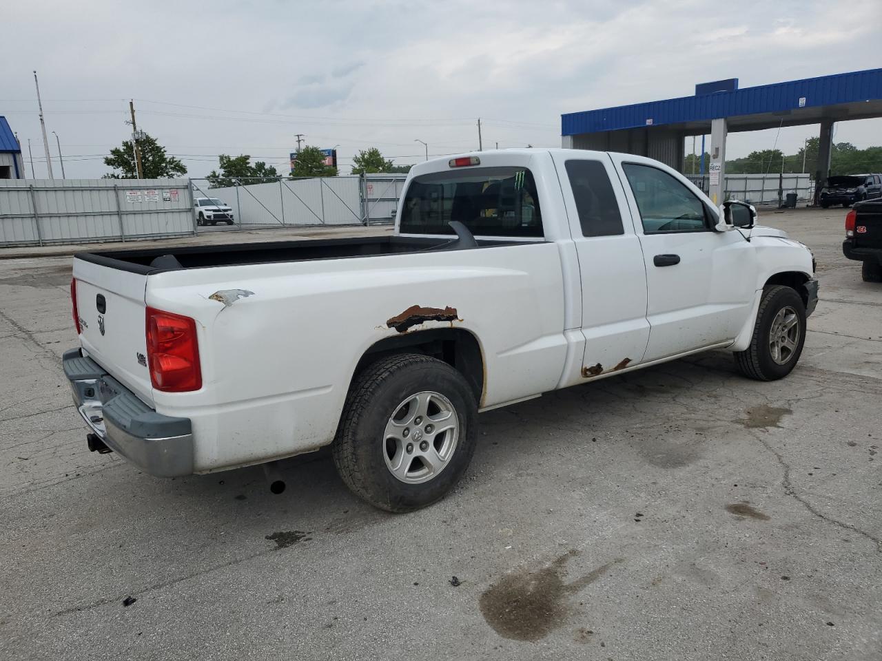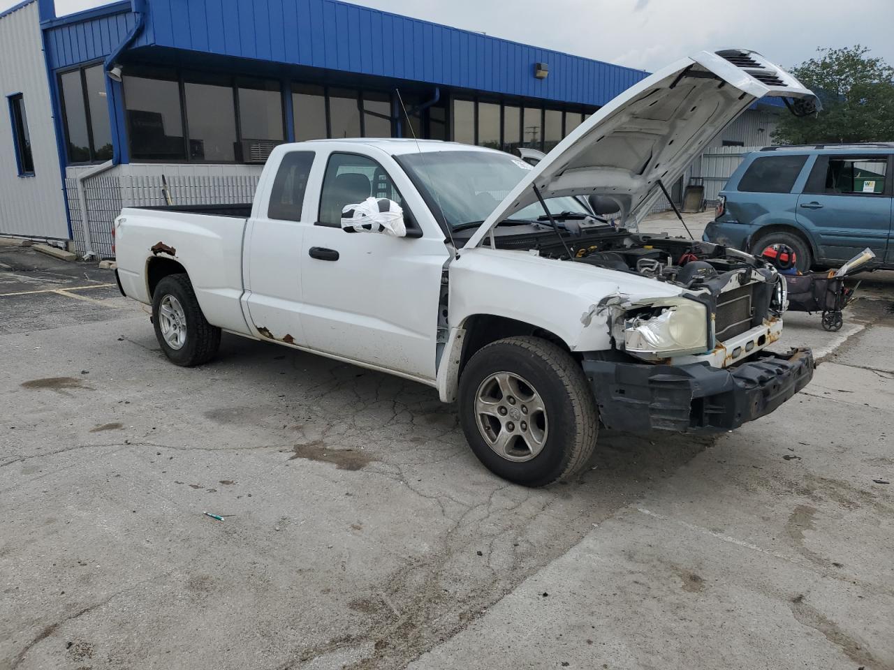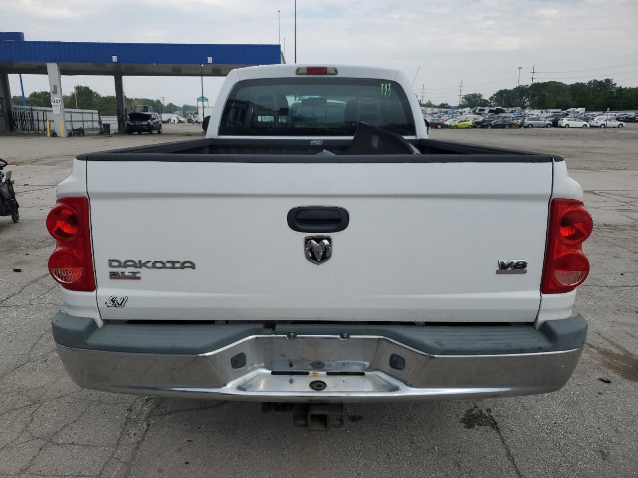 Fair2005 DODGE DAKOTA SLT. This white pickup truck exhibits significant front-end and side damage, indicating a Body vehicle damage category. Despite the cosmetic issues, the interior appears to be in relatively good condition. The vehicle is listed as Run & Drive Verified.