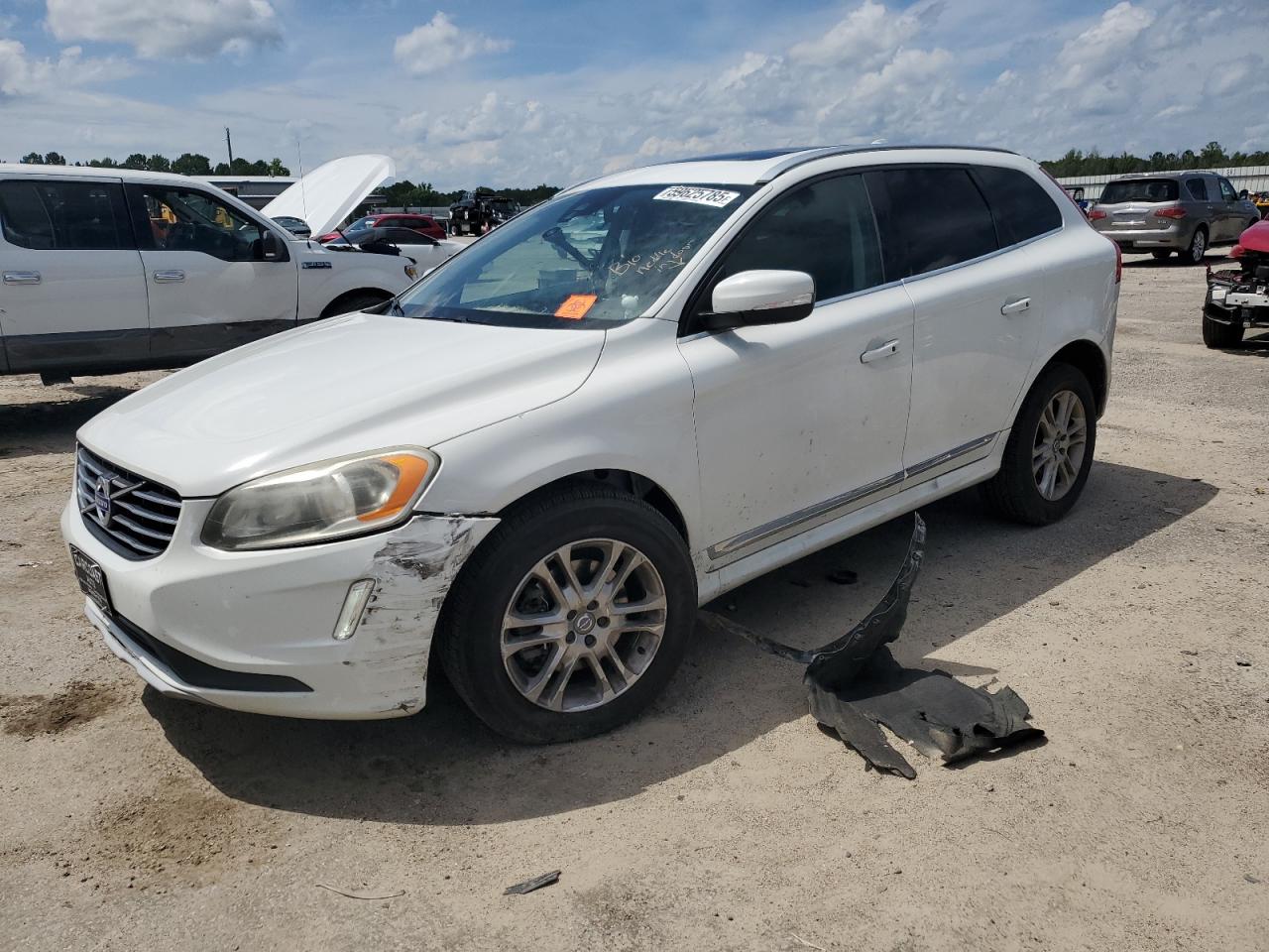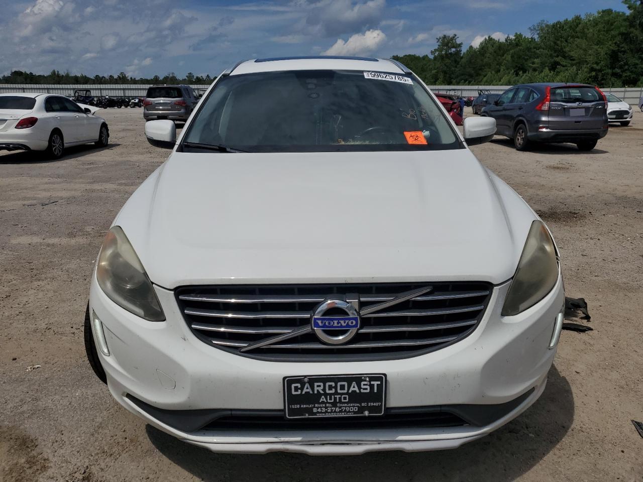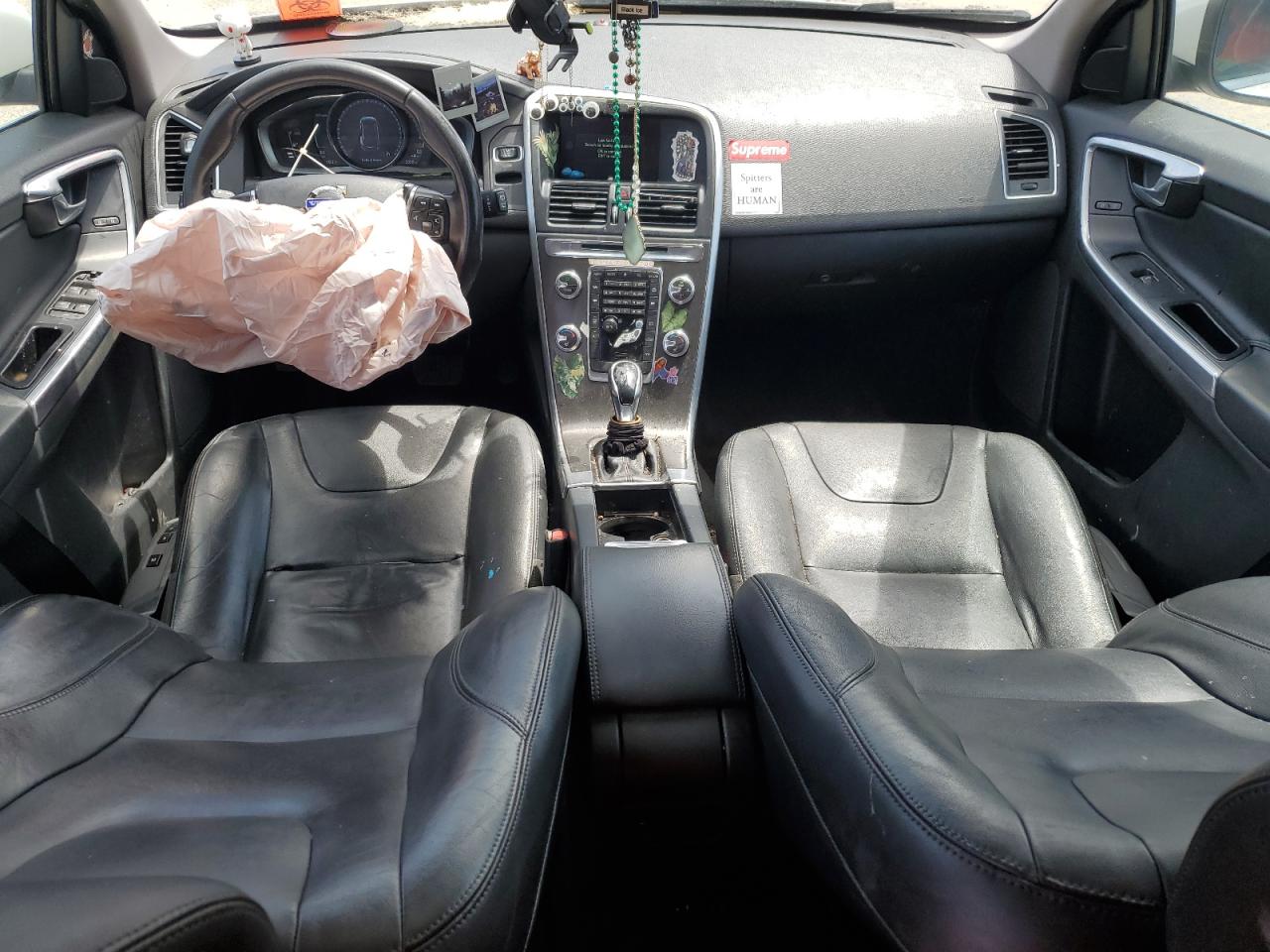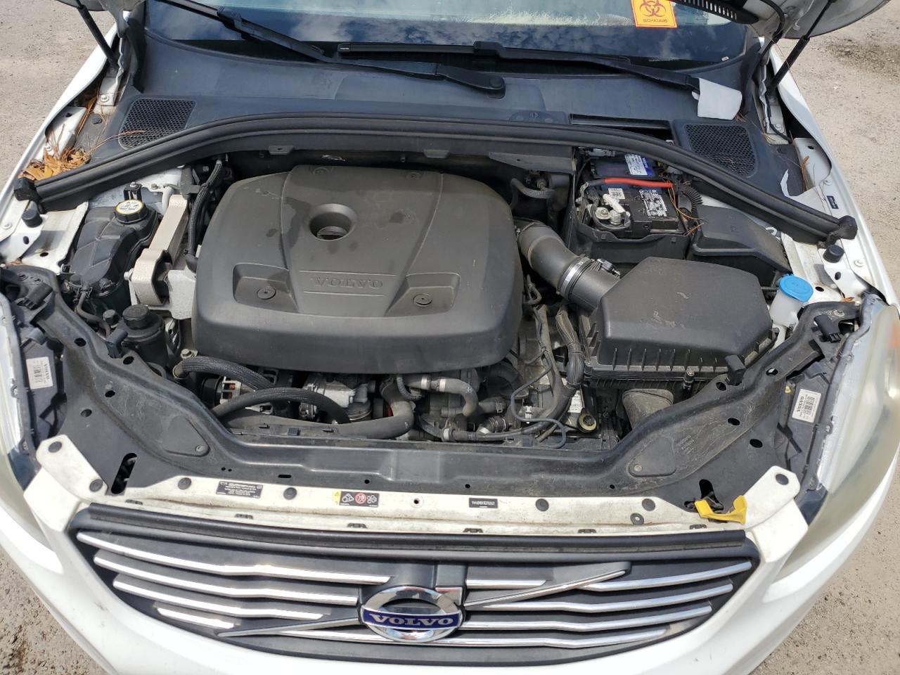 FairThe 2016 Volvo XC60 T5 PR presents with considerable front-end damage, indicating a prior collision. The vehicle is white, with visible body panel damage. Interior shows deployed airbags and potential damage. The vehicle starts and runs, categorized as 'Run & Drive Verified'.