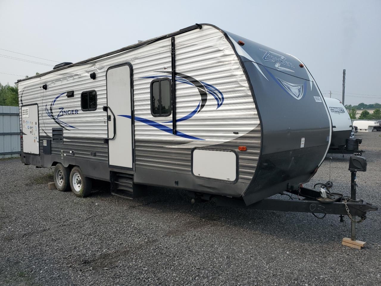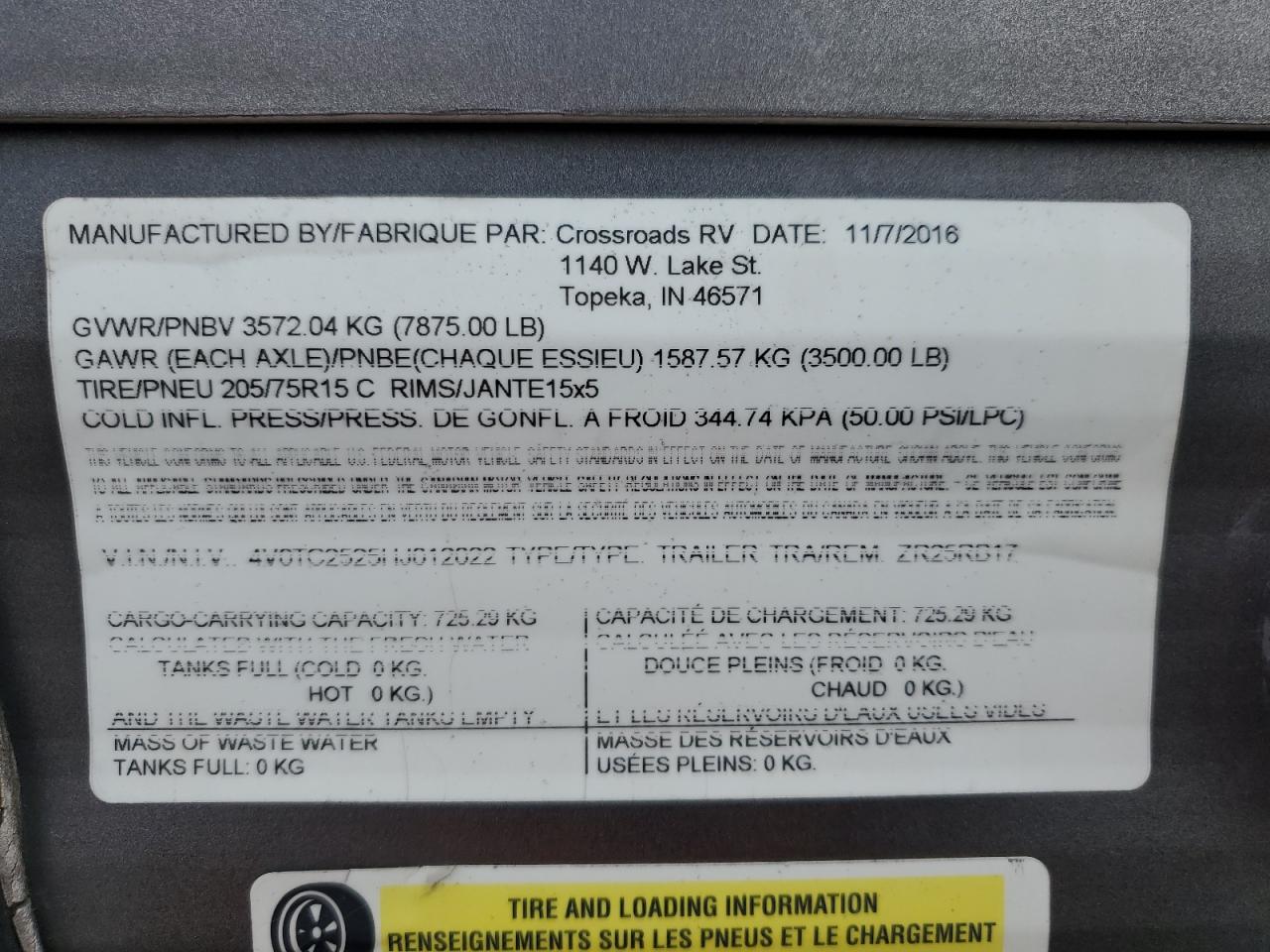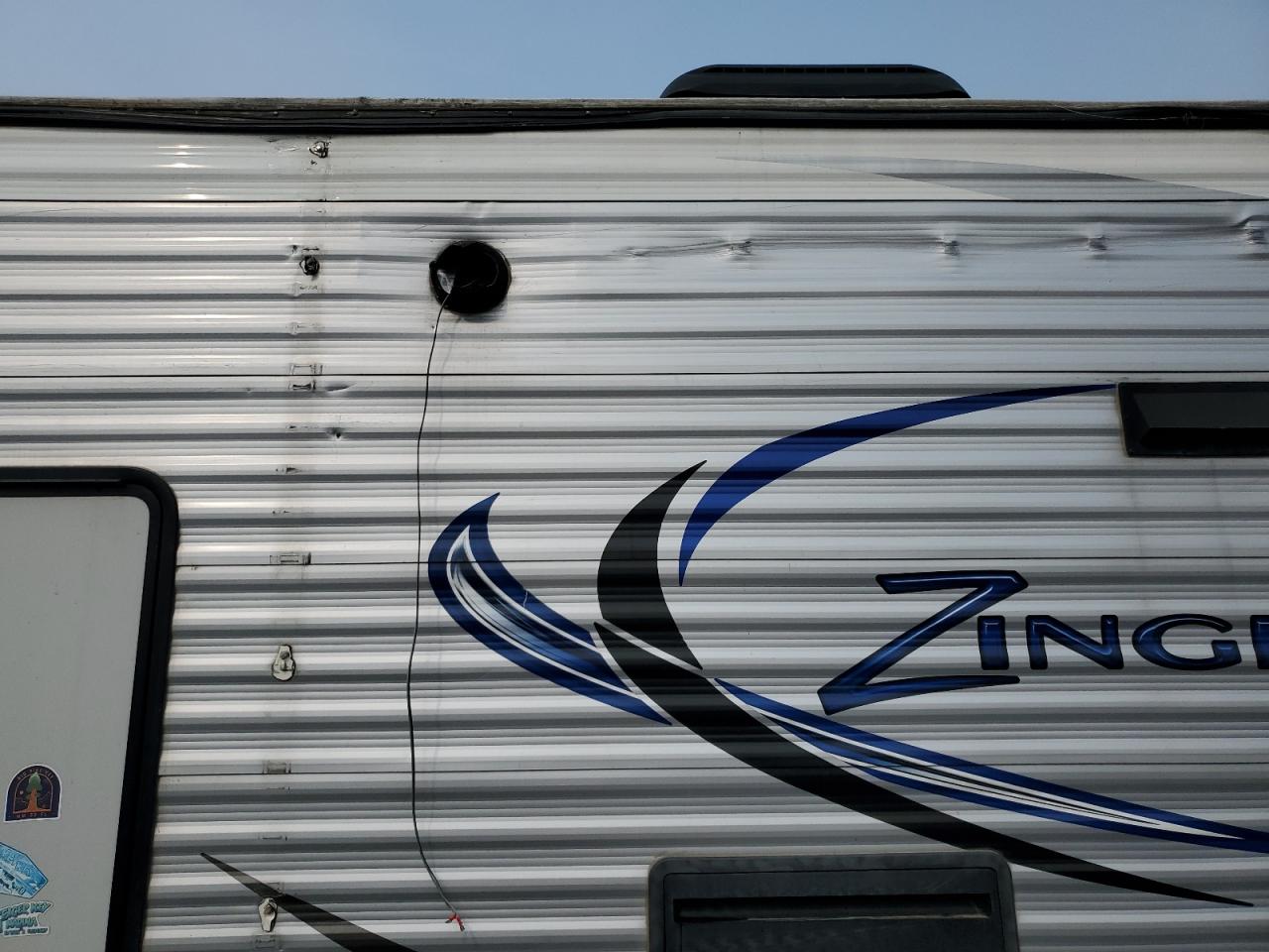 FairThe 2017 CROSSROADS ZINGER is a recreational vehicle (RV) with a charcoal exterior. The primary damage is to the side, and secondary damage is to the front end. The vehicle exhibits signs of wear and tear. The wheels appear to be fine. The lights and glasses have no visible damage.