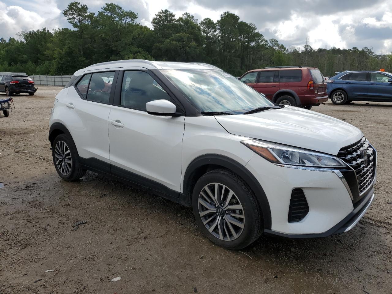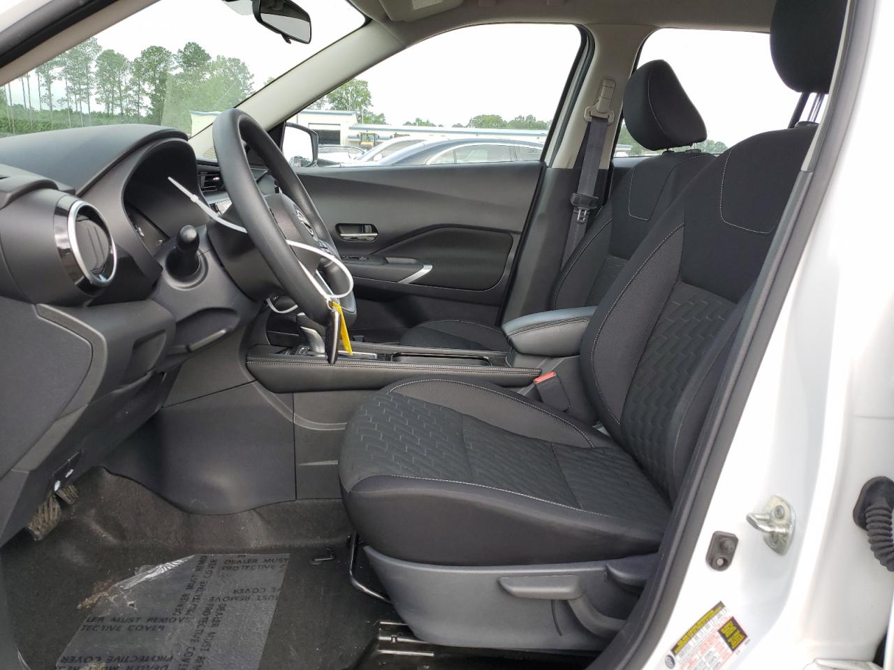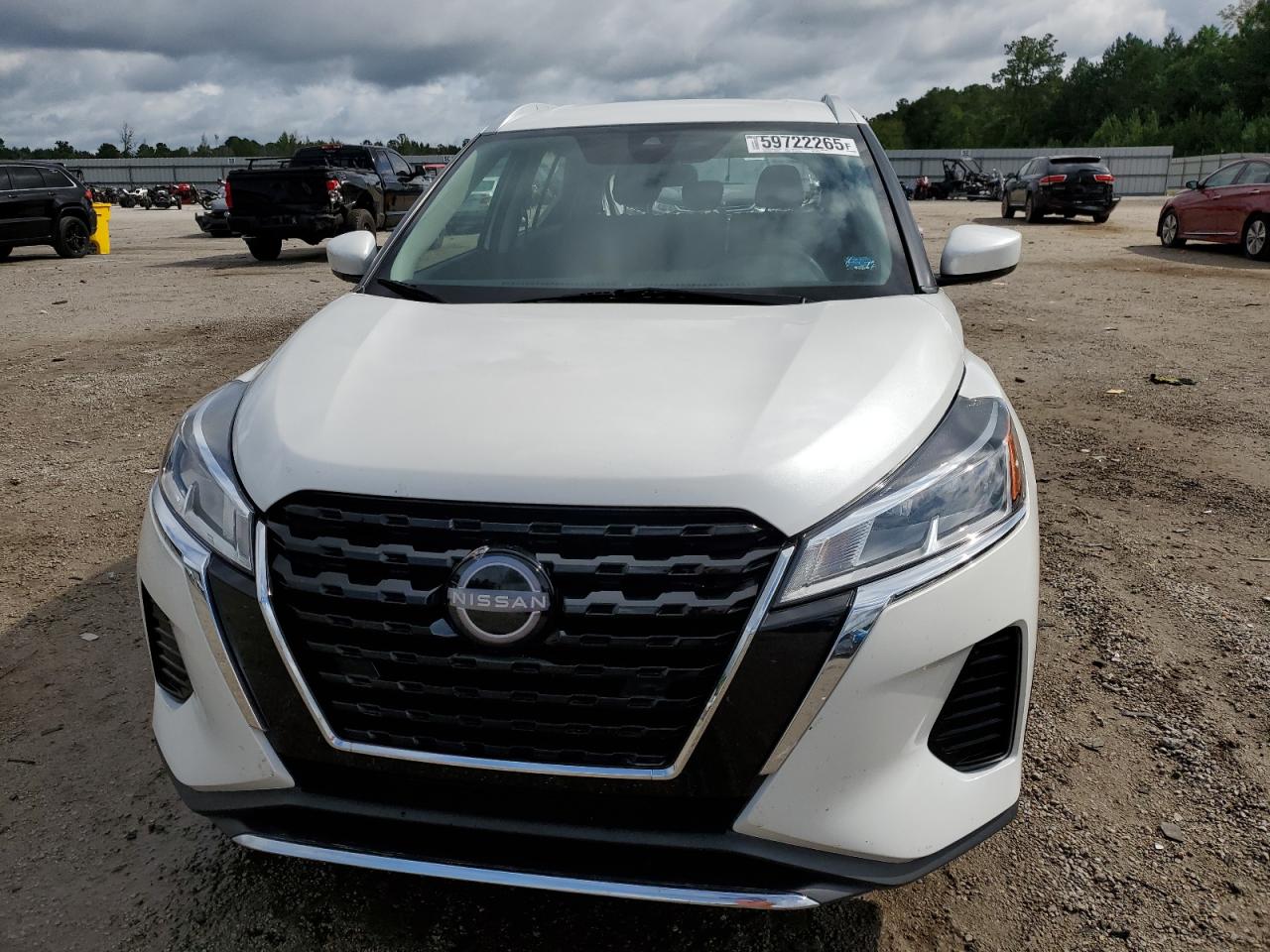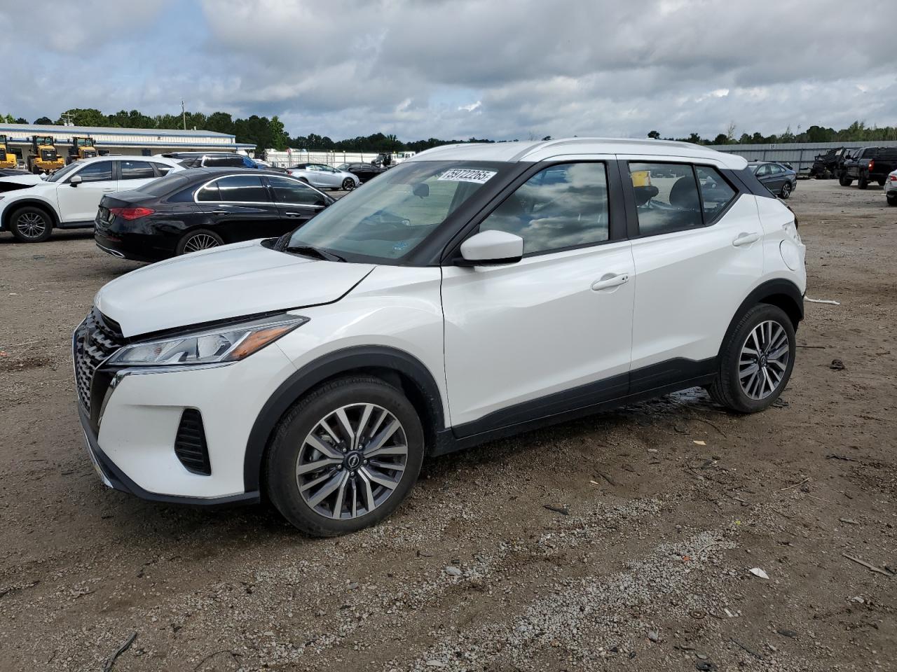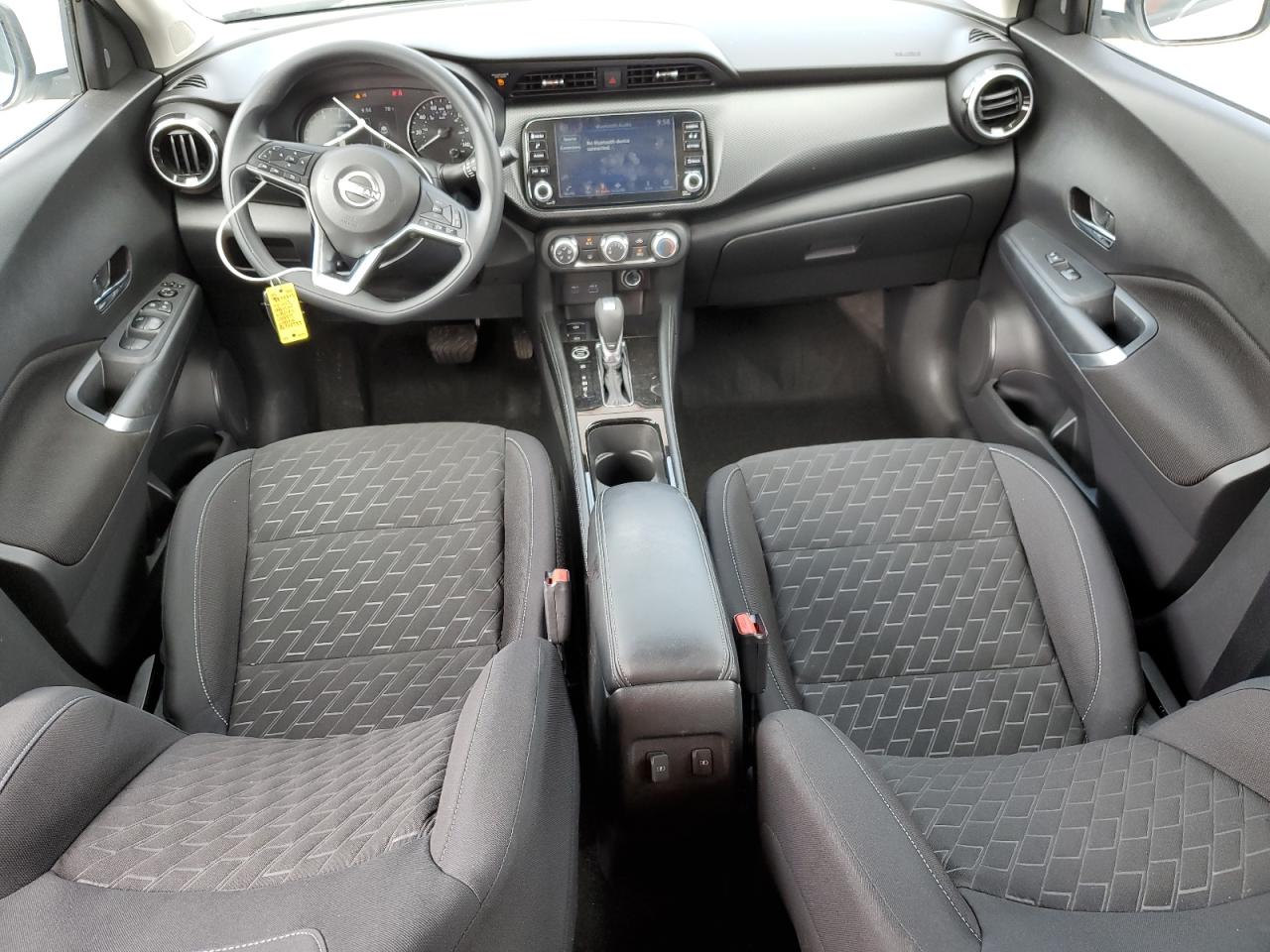 FairThe white 2023 Nissan Kicks SV has sustained significant rear-end damage. The vehicle's exterior shows substantial damage to the rear, including body panel deformation. The interior appears to be in relatively good condition with normal wear and tear. The vehicle is noted as 'Run & Drive Verified'.