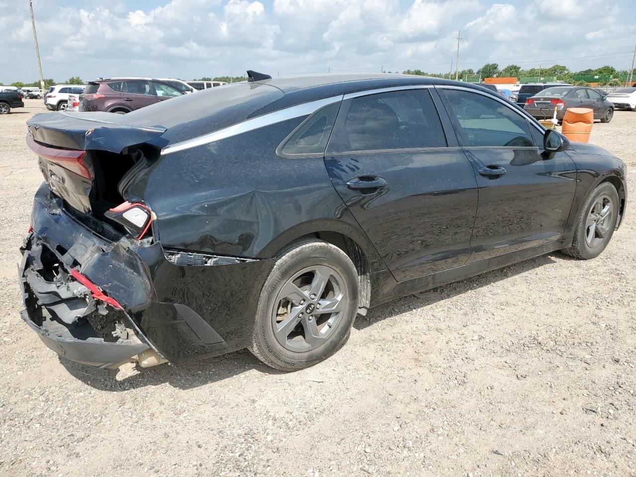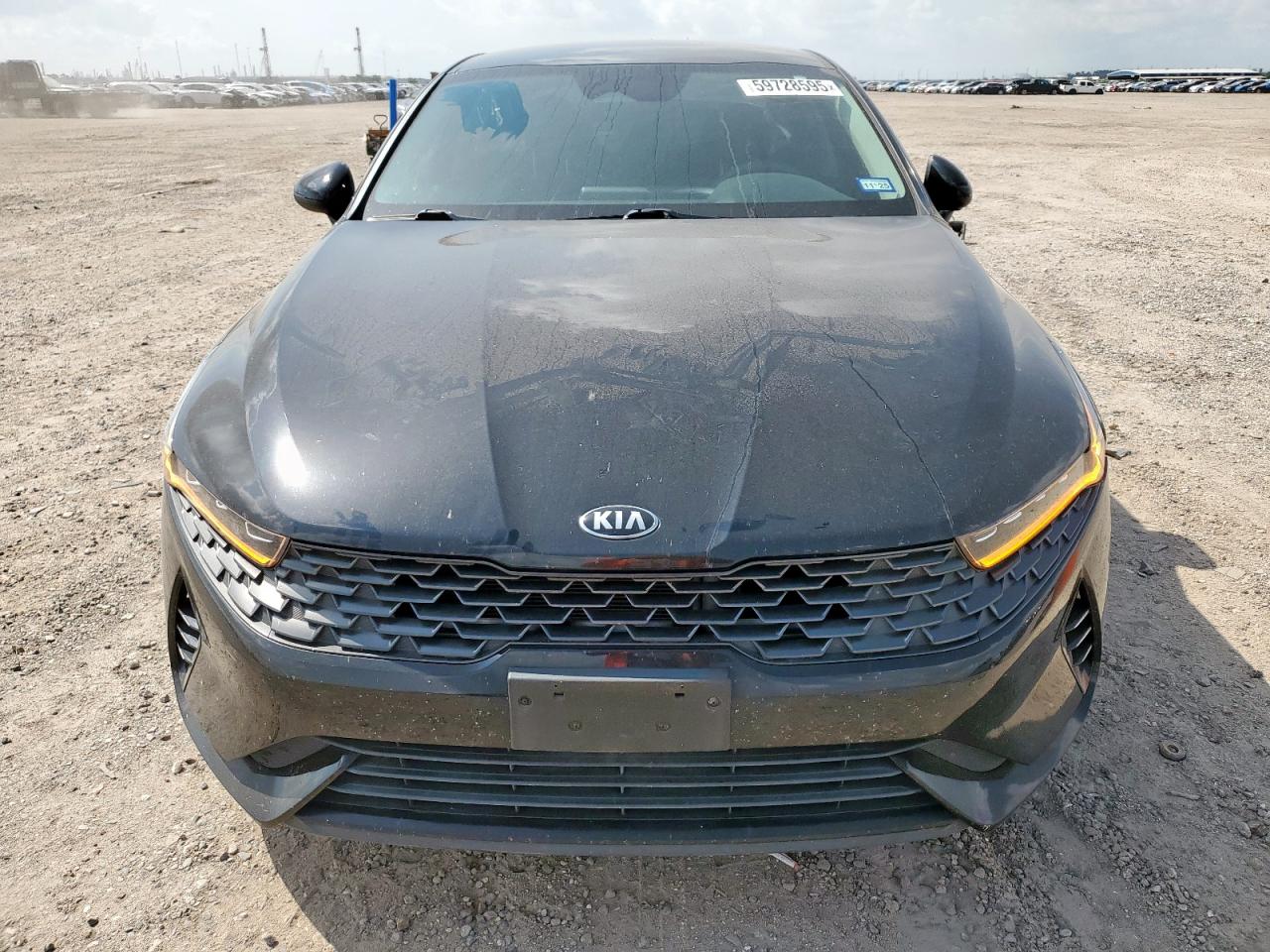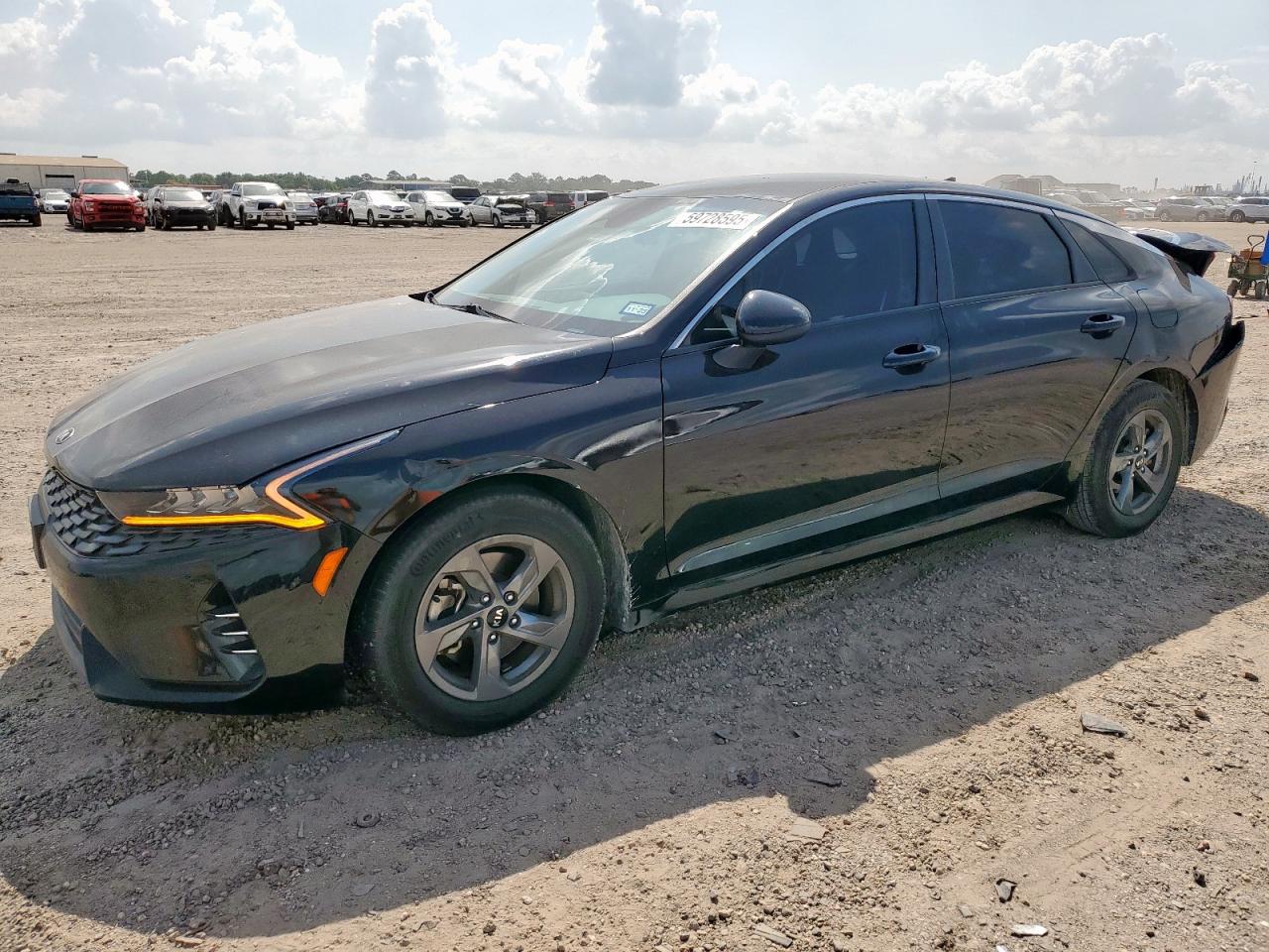 FairThe 2021 KIA K5, is black, shows significant rear-end damage. The primary damage is to the rear, with secondary cosmetic issues like minor dents and scratches present. It is a Run & Drive Verified vehicle.