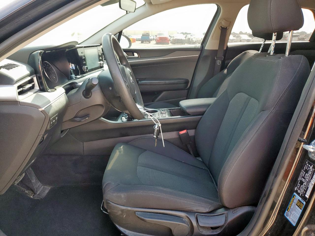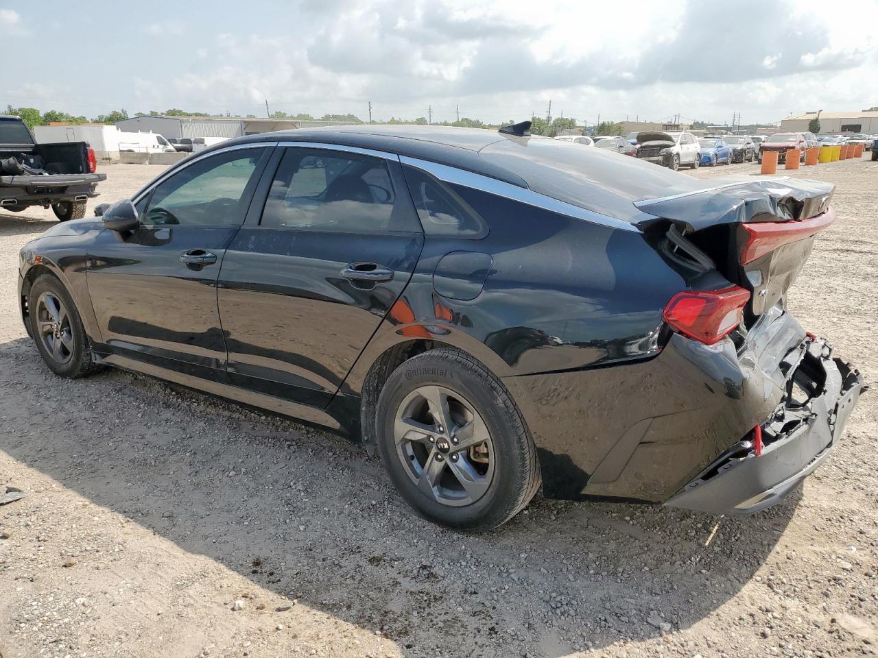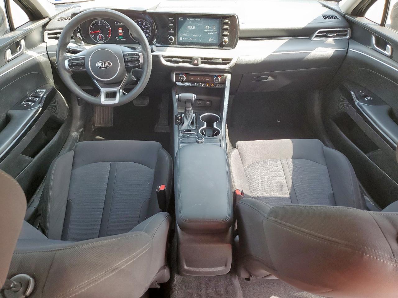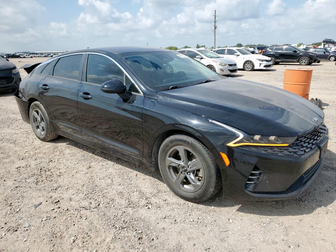 FairThe 2021 KIA K5, is black, shows significant rear-end damage. The primary damage is to the rear, with secondary cosmetic issues like minor dents and scratches present. It is a Run & Drive Verified vehicle.