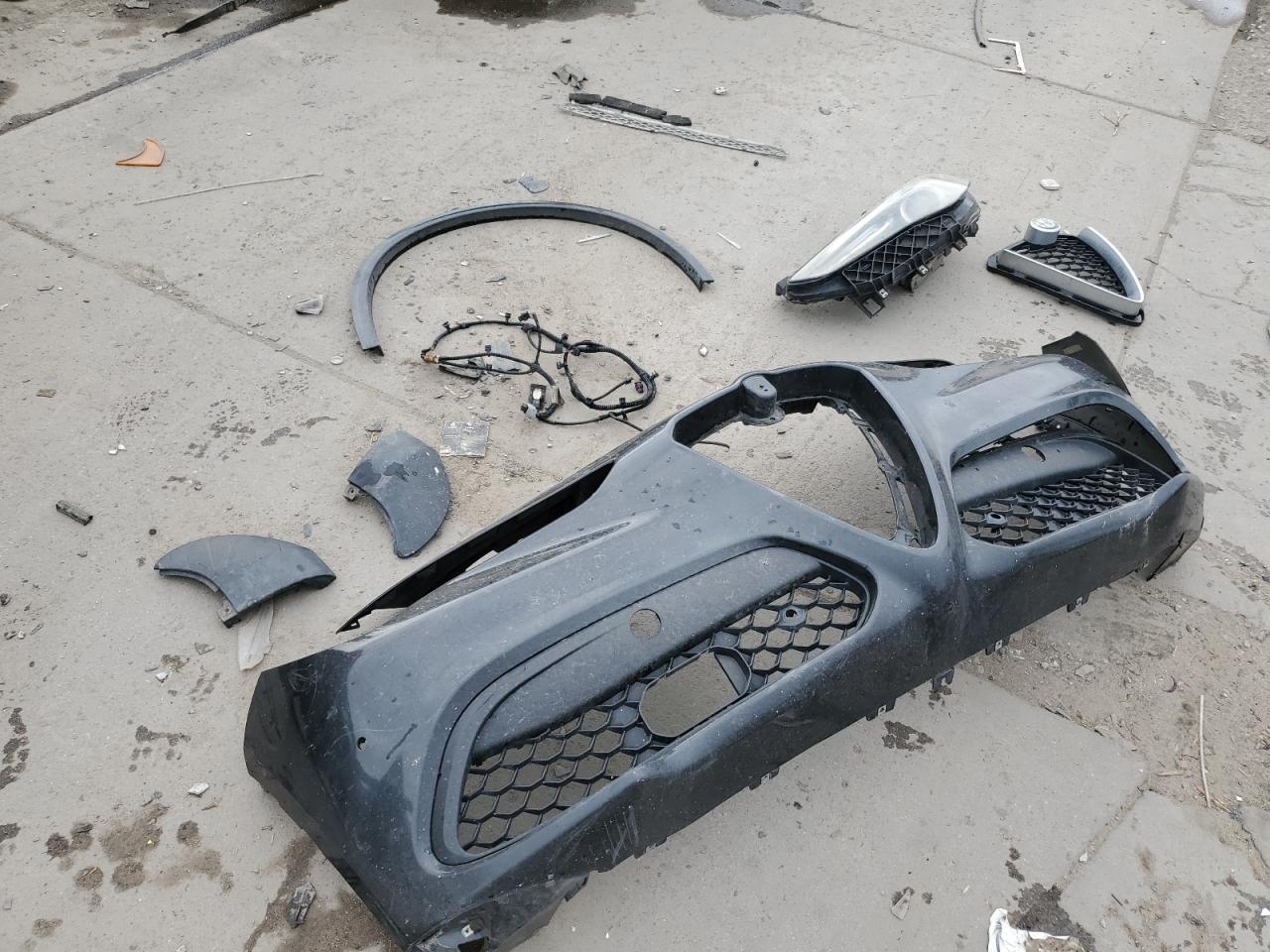 The car has significant front-end damage, including the front bumper, potentially headlights, and surrounding body panels. The interior appears to be in good condition with no obvious damage.