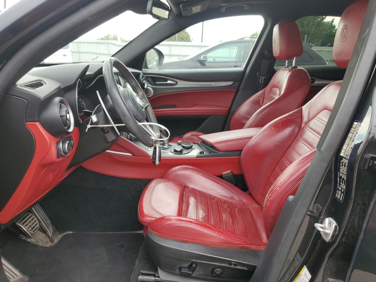 FairThis is a 2018 Alfa Romeo Stelvio Ti, black in color, with a Run & Drive Verified status. The primary damage is to the front end. Despite the front-end damage, the car appears to be drivable. The interior features red leather seats, indicating a higher trim level. The overall condition suggests the car requires repairs, primarily focusing on the front-end components. The car's wheels and glass appear intact.
