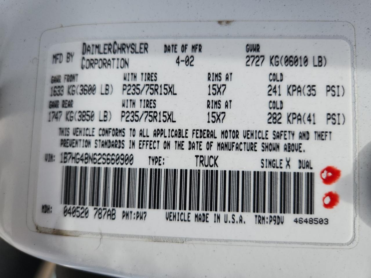 GoodThe 2002 Dodge Dakota Quad Cab, finished in white, exhibits a 'Body' Vehicle Damage Category with the primary damage concentrated on the rear end. The vehicle has a 'Run & Drive Verified' status. The car's condition is rated as 'Good' overall, indicating minor damage. The interior also appears to be in good condition. The vehicle's wheels, lights, and glasses seem to be intact. The car is drivable. Summary: This white 2002 Dodge Dakota Quad Cab shows 'Body' damage, primarily to the rear. Overall, the car is in 'Good' condition, with intact wheels, lights, and glasses. It is drivable.