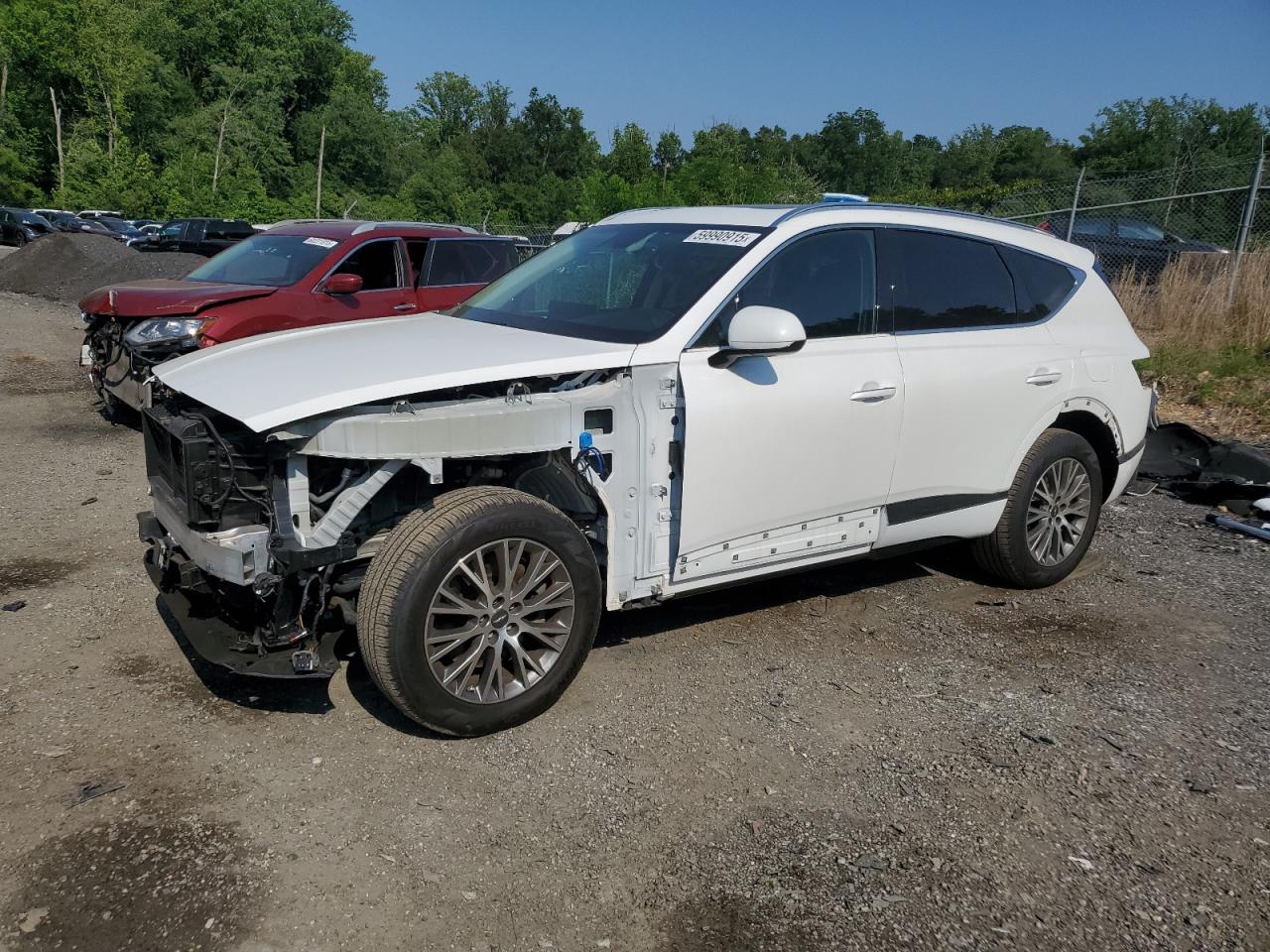 FairGENESIS GV80 BASE 2021, white color. Primary damage: FRONT END, secondary: SIDE. Run & Drive Verified. The vehicle exhibits significant damage to the front end, with components like the bumper, headlights, and possibly the hood missing. The side panels also show visible damage. The wheels appear to be intact. Interior condition is good with seats are in a good state. The airbags status is unknown. The car itself is a luxury SUV known for its advanced features and stylish design. Damage Summary: - Front End Damage (severe) - Side Panel Damage Damages and Overall State: - **Front End Collision:** Impact damage to front, missing parts, body damage. - **Side Panel Damage:** Body damage to side panels. - **Overall Condition:** Fair, requiring repairs and drivable.