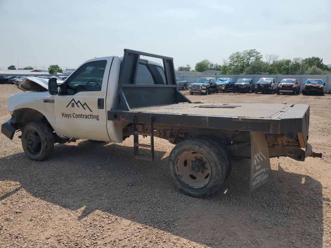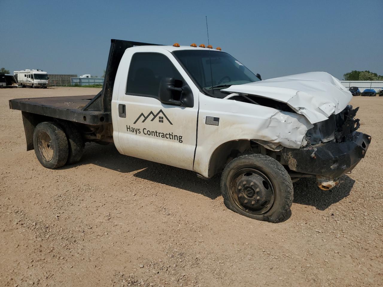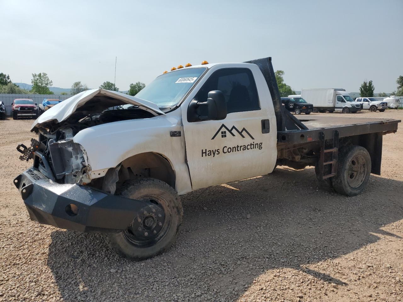 PoorThe 2001 Ford F450 Super Duty, bearing a 'Hays Contracting' logo, presents with significant damage. The primary damage is to the front end, with secondary frame damage. The white exterior exhibits extensive impact damage. The interior shows wear. The vehicle's overall condition is poor and not drivable, needing significant repair. The wheels appear to be in good condition.