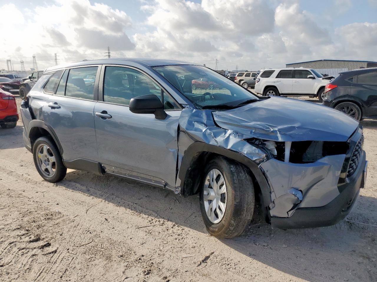 FairThis is a 2023 Toyota Corolla Cross in teal, with Run & Drive Verified status. The vehicle has suffered significant front end damage, with body panel deformation and potential frame involvement. The rear end also shows damage. While the wheels appear intact, the overall condition suggests a need for substantial repairs before it can be considered roadworthy.