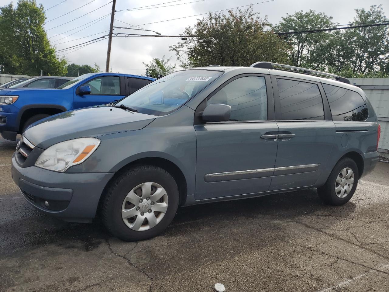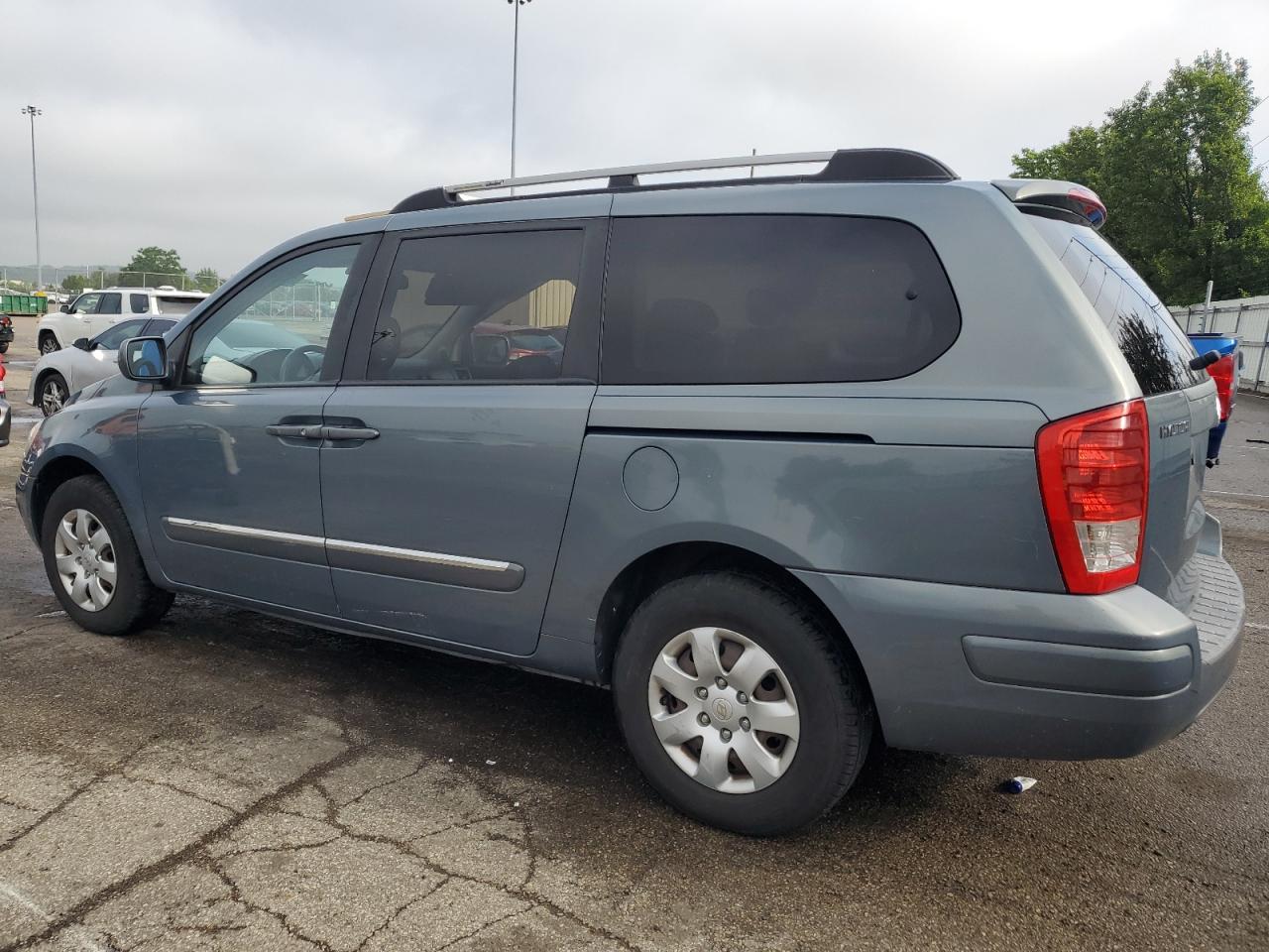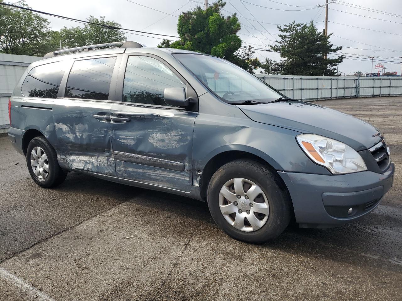 FairThis is a 2007 HYUNDAI ENTOURAGE, blue in color, with Run & Drive Verified status. It exhibits body damage across multiple panels, including the side panels, with no other significant damage observed. The wheels appear to be in good condition, and the lights and glasses are intact. The interior shows signs of wear consistent with its age and mileage. The vehicle is drivable despite the body damage.