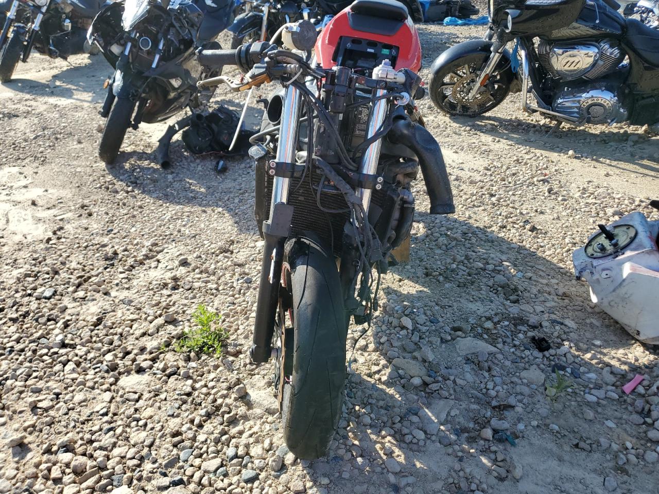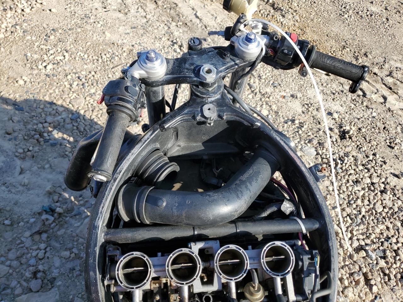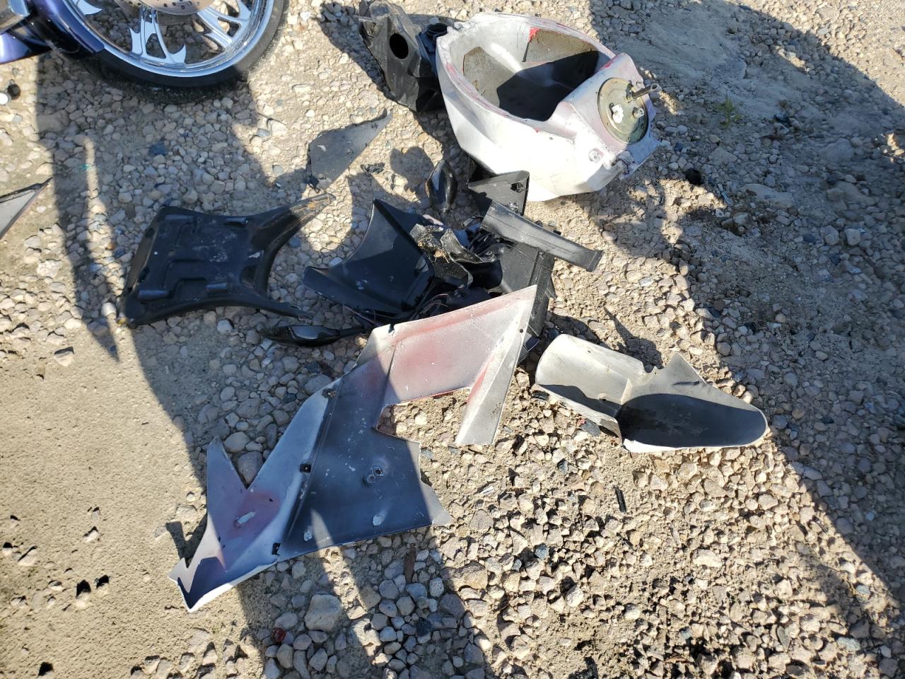 The motorcycle has extensive damage across all visible areas. Significant body panel damage, missing parts, and a generally dilapidated appearance are evident. The frame might be damaged.