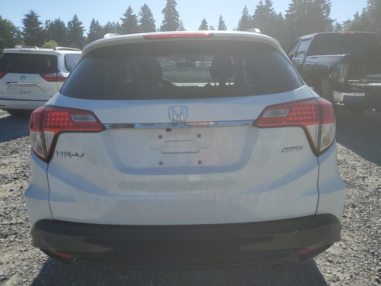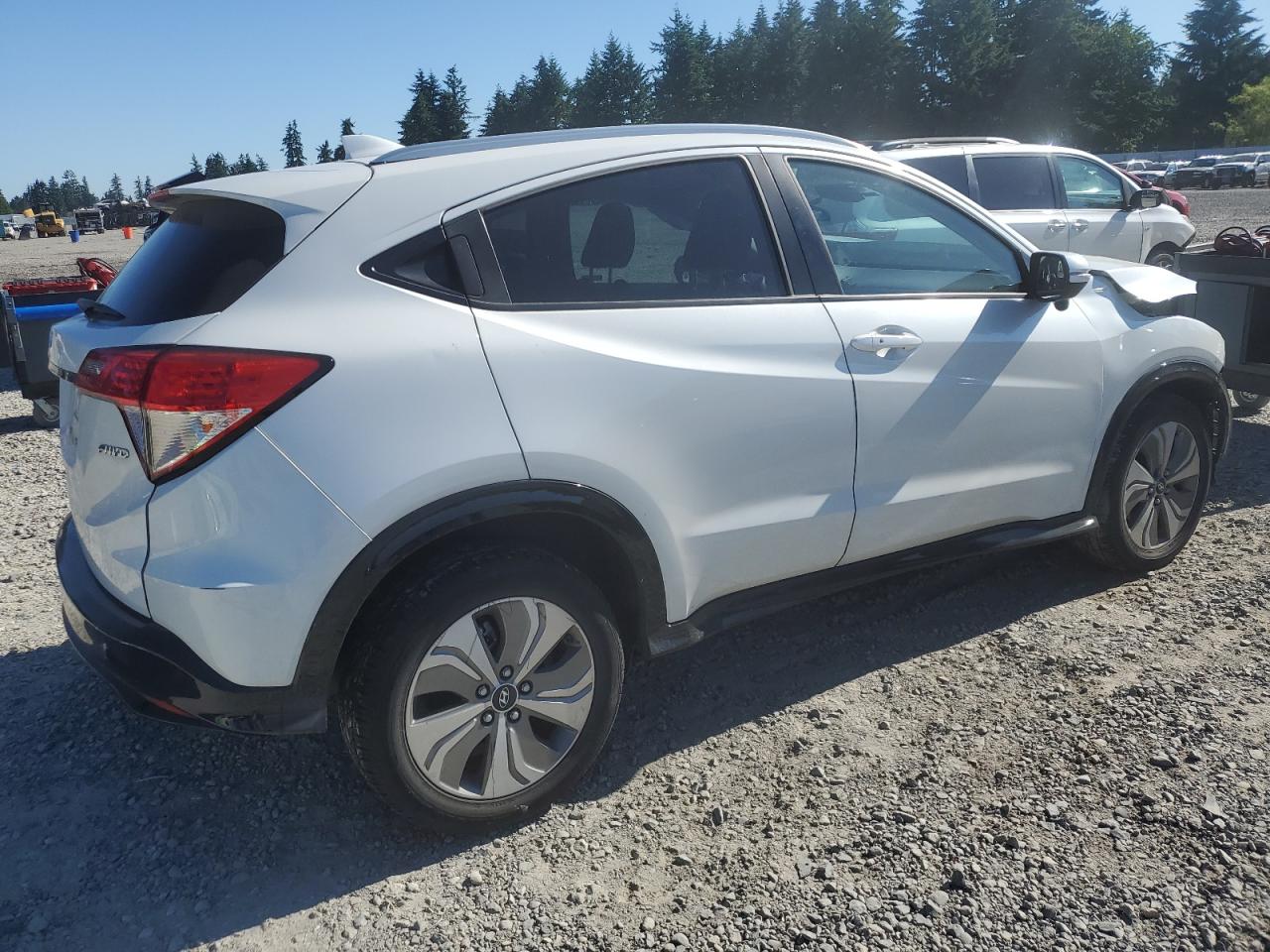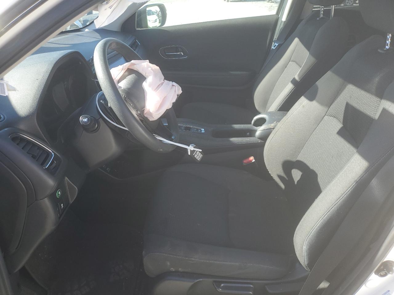 FairThe 2021 HONDA HR-V EX is a white subcompact SUV. This vehicle has sustained significant damage. The primary damage is to the front end, with secondary damage to the side. The car shows signs of a collision, with body panels and structural components affected. The wheels appear to be intact, but the lights and glasses are likely damaged due to the severity of the front-end impact. The airbags have deployed.