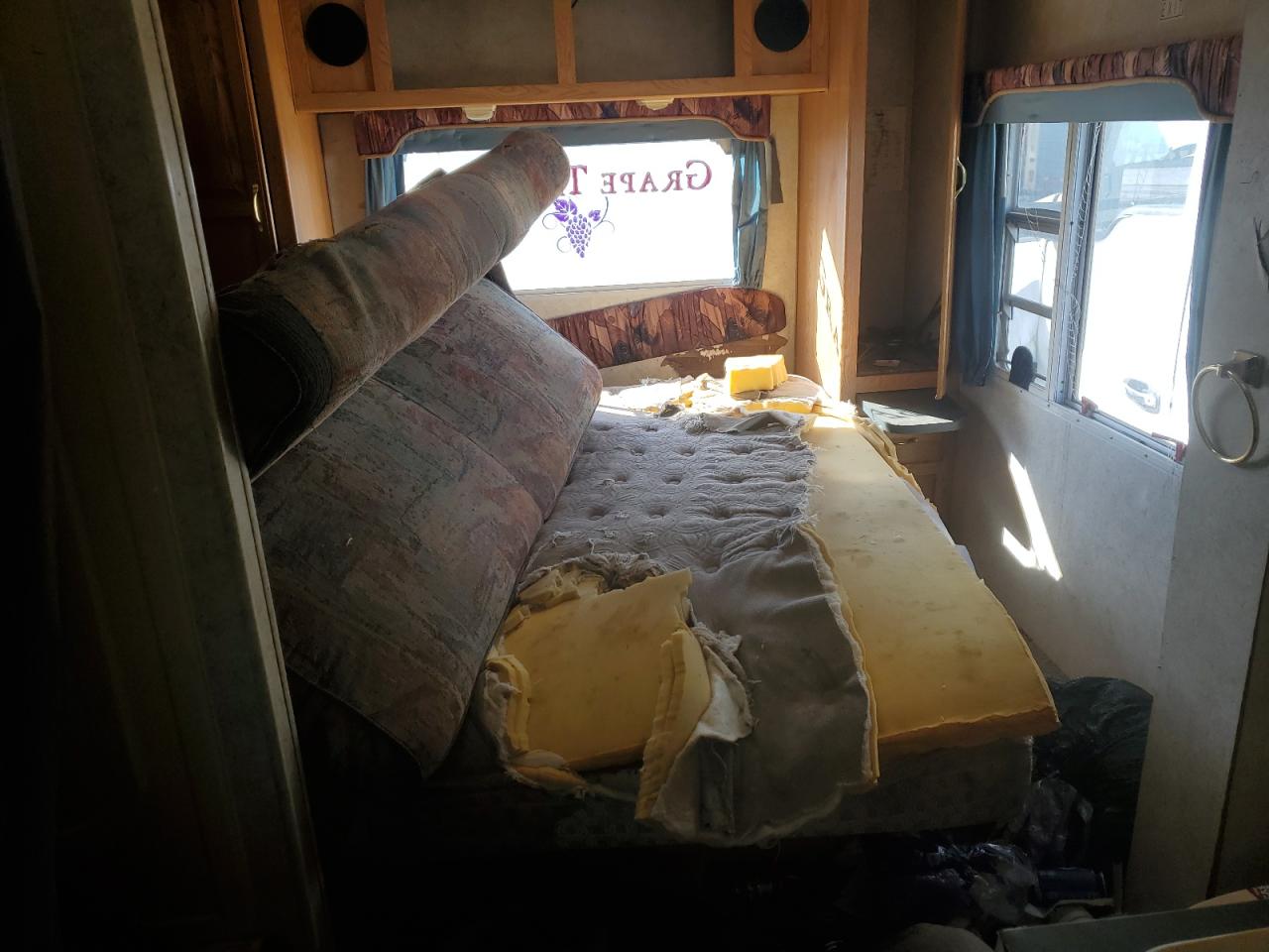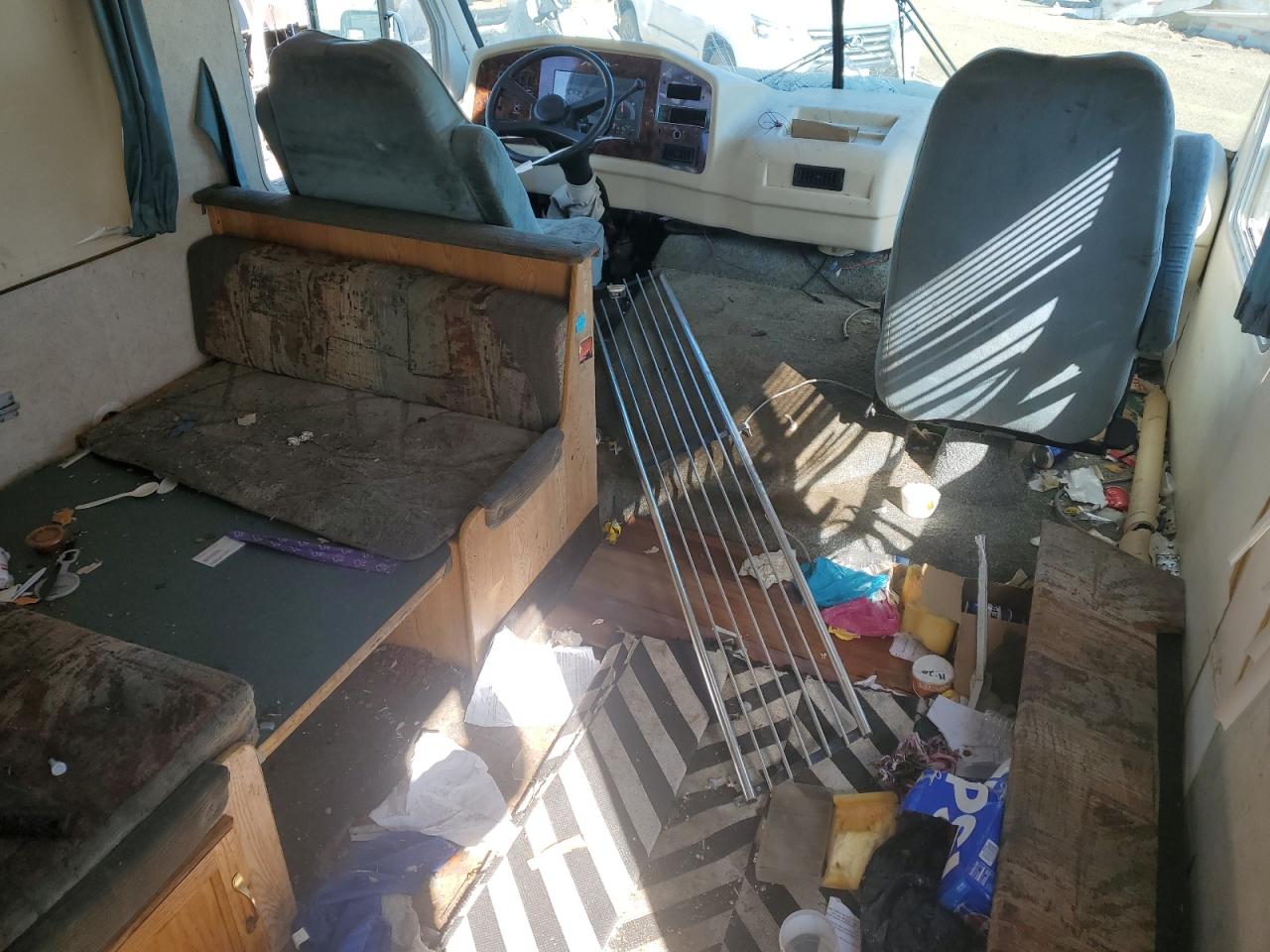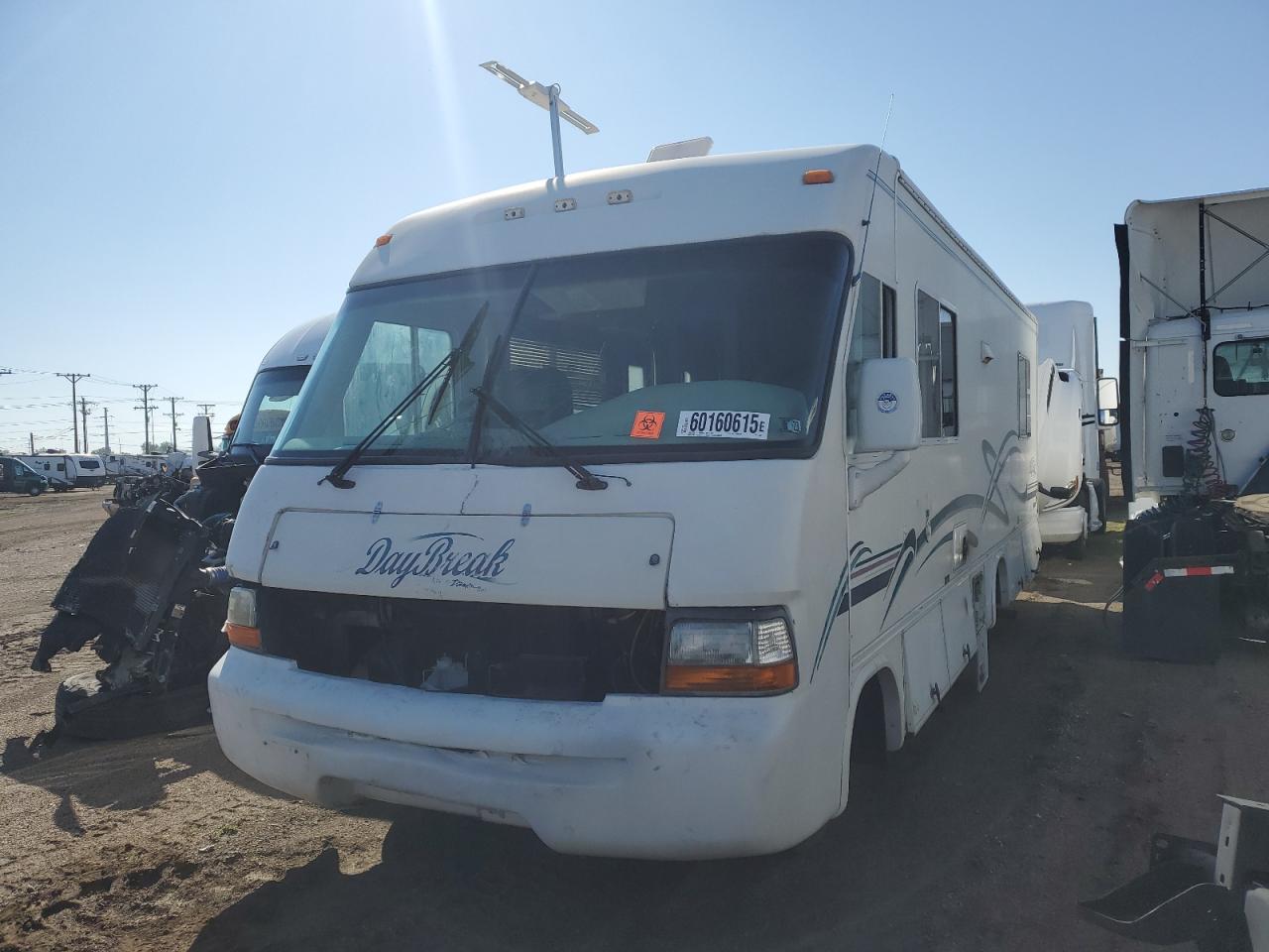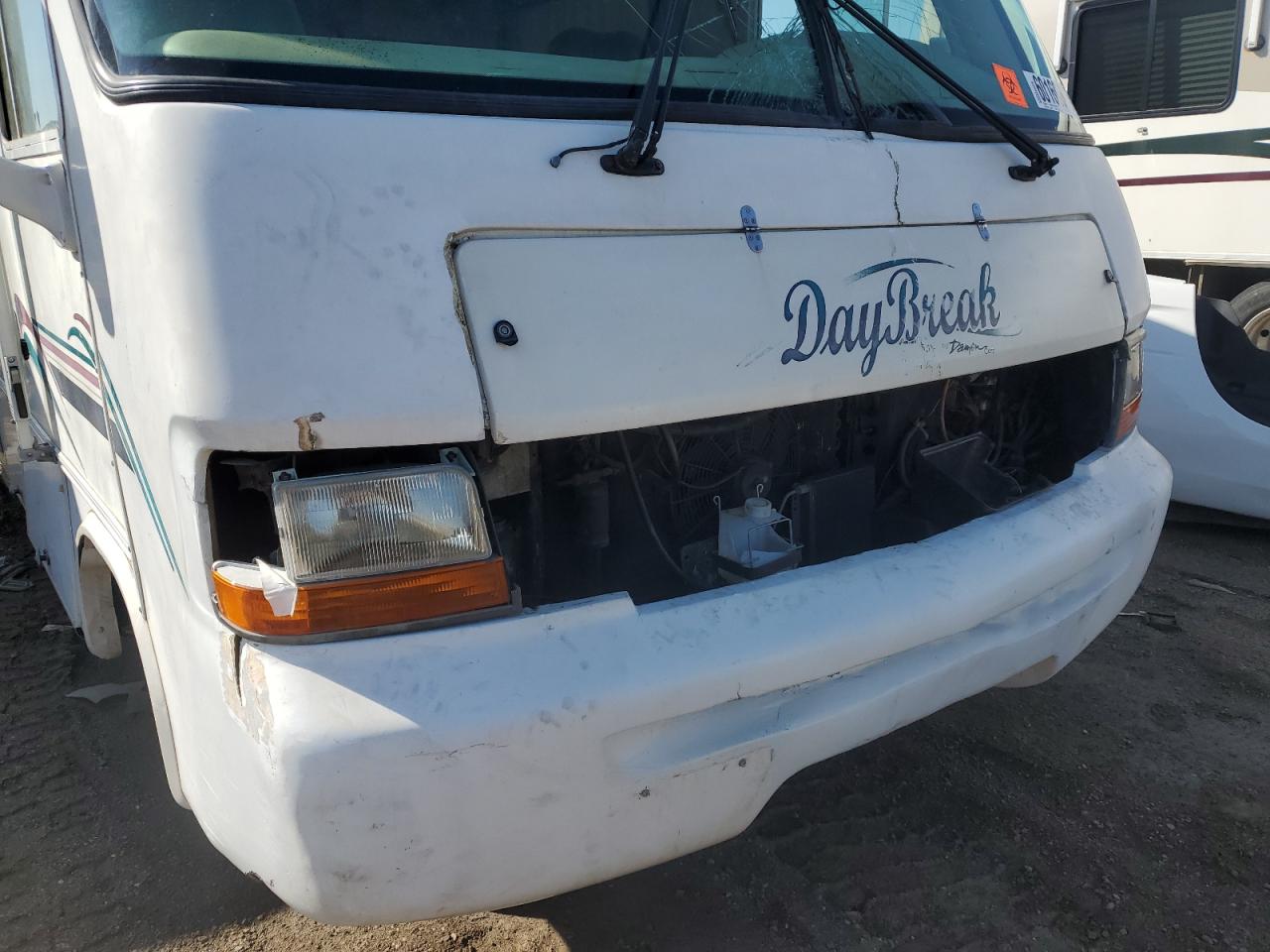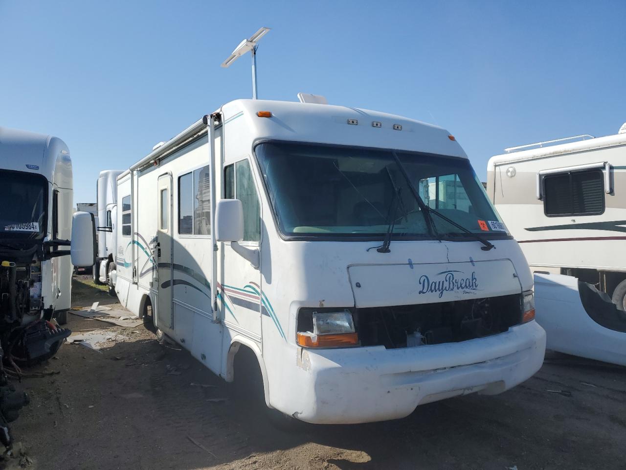 FairThis CHEVROLET P30 1997, known as a 'Day Break' RV, exhibits significant damage. The front end has been vandalized. The vehicle's white exterior shows considerable wear and tear. Interior damage is evident.