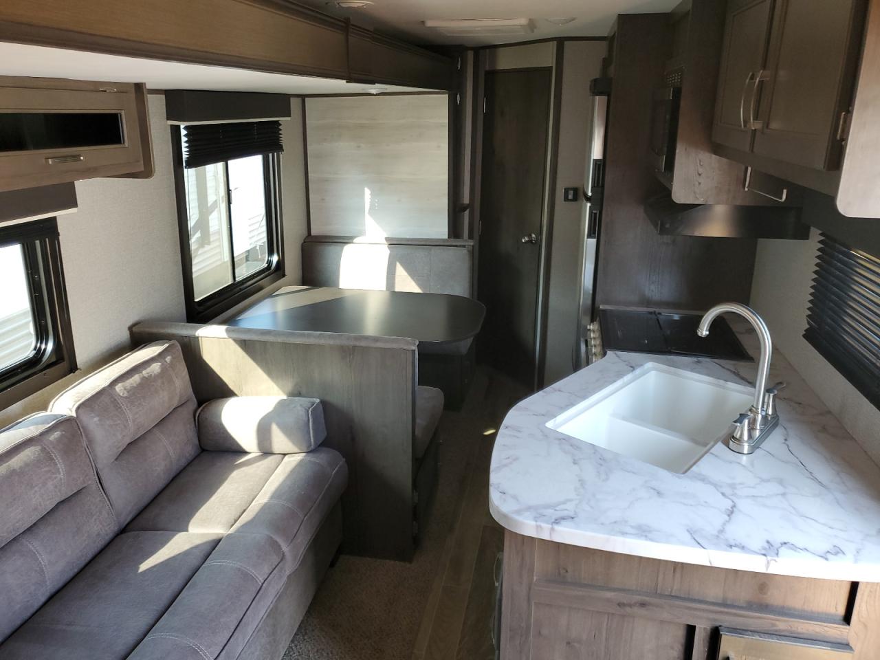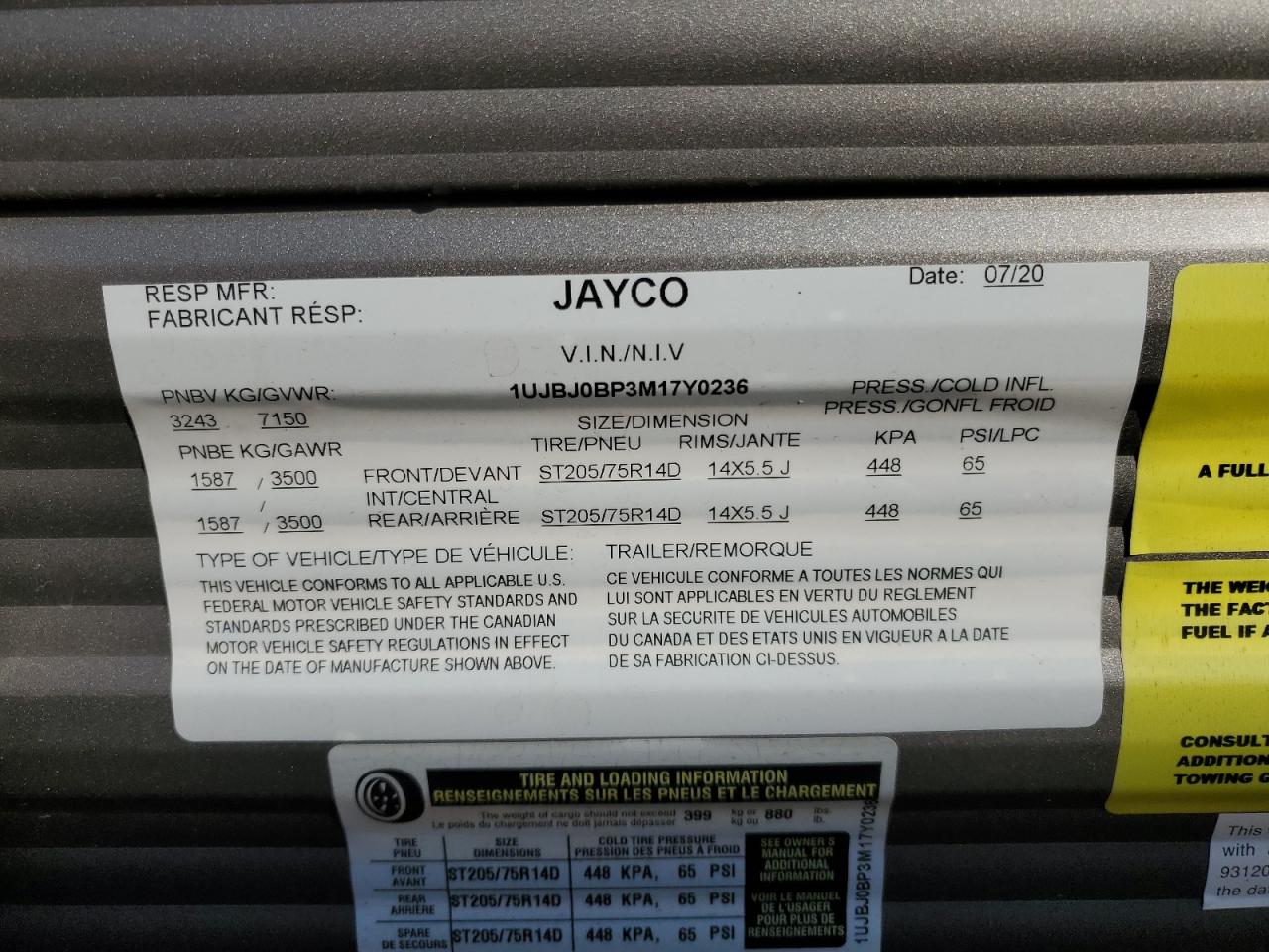 GoodThe 2021 Jayco trailer, primarily affected by hail damage, presents a white exterior. The interior appears well-maintained with minimal wear and tear. The wheels and lights are in good condition. The vehicle has no apparent damage with the exception of the hail impact on the exterior. The interior shows no signs of notable issues.