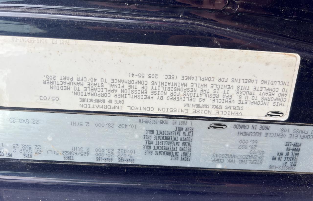 GoodThe 2004 STERLING TRUCK LT 9500, a heavy-duty dump truck, shows signs of wear and tear, but remains functional. The exterior exhibits minor dents and scratches, with normal wear across the body. The blue paint shows some fading. Interior damage includes wear on the seats and other surfaces, indicating moderate use. The odometer reads 23,480 miles. While the truck is drivable, some repairs might be needed.