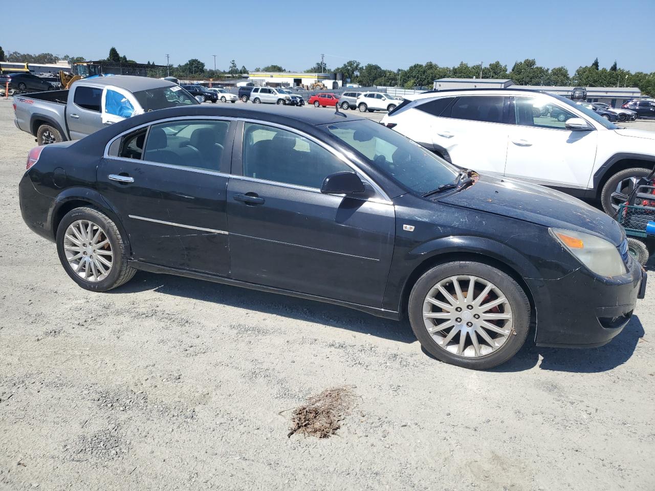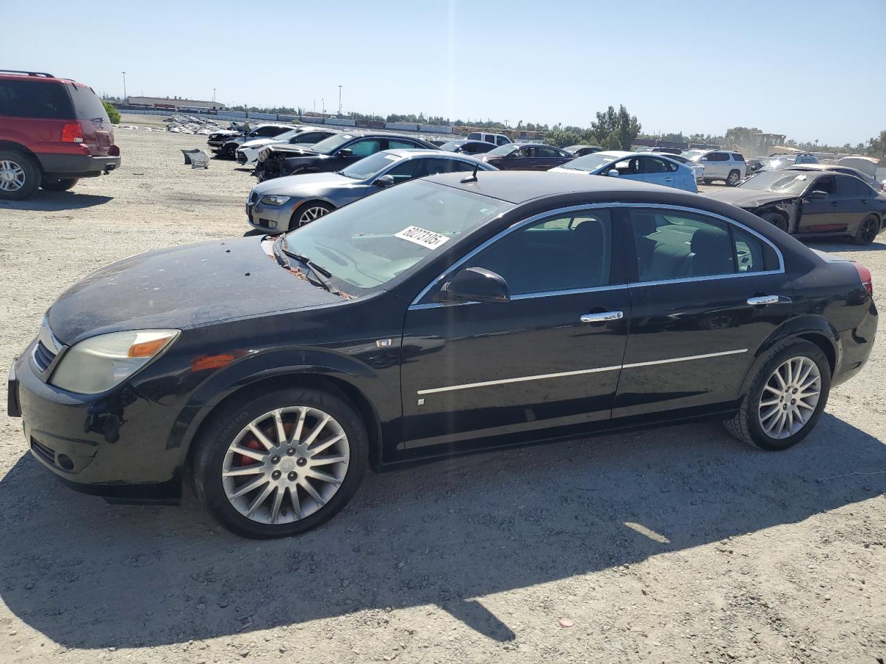 This is a black 2007 SATURN AURA XR. It appears to have mechanical issues and has overall moderate damage. The vehicle's exterior shows minor wear and tear, possibly requiring replacement of a few elements. The interior condition is fair, with some visible damage. The wheels appear to be in good condition. Airbags are not visible in the photos. The vehicle is likely not drivable.