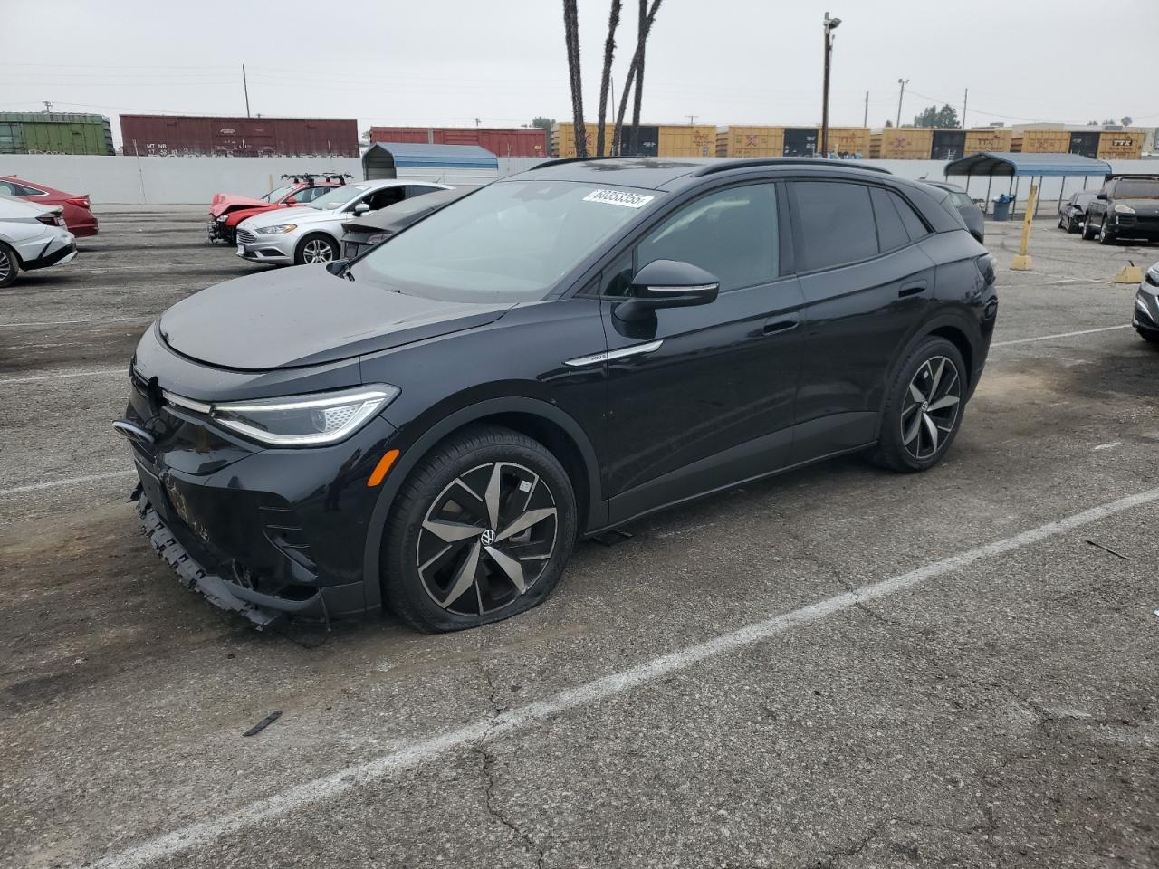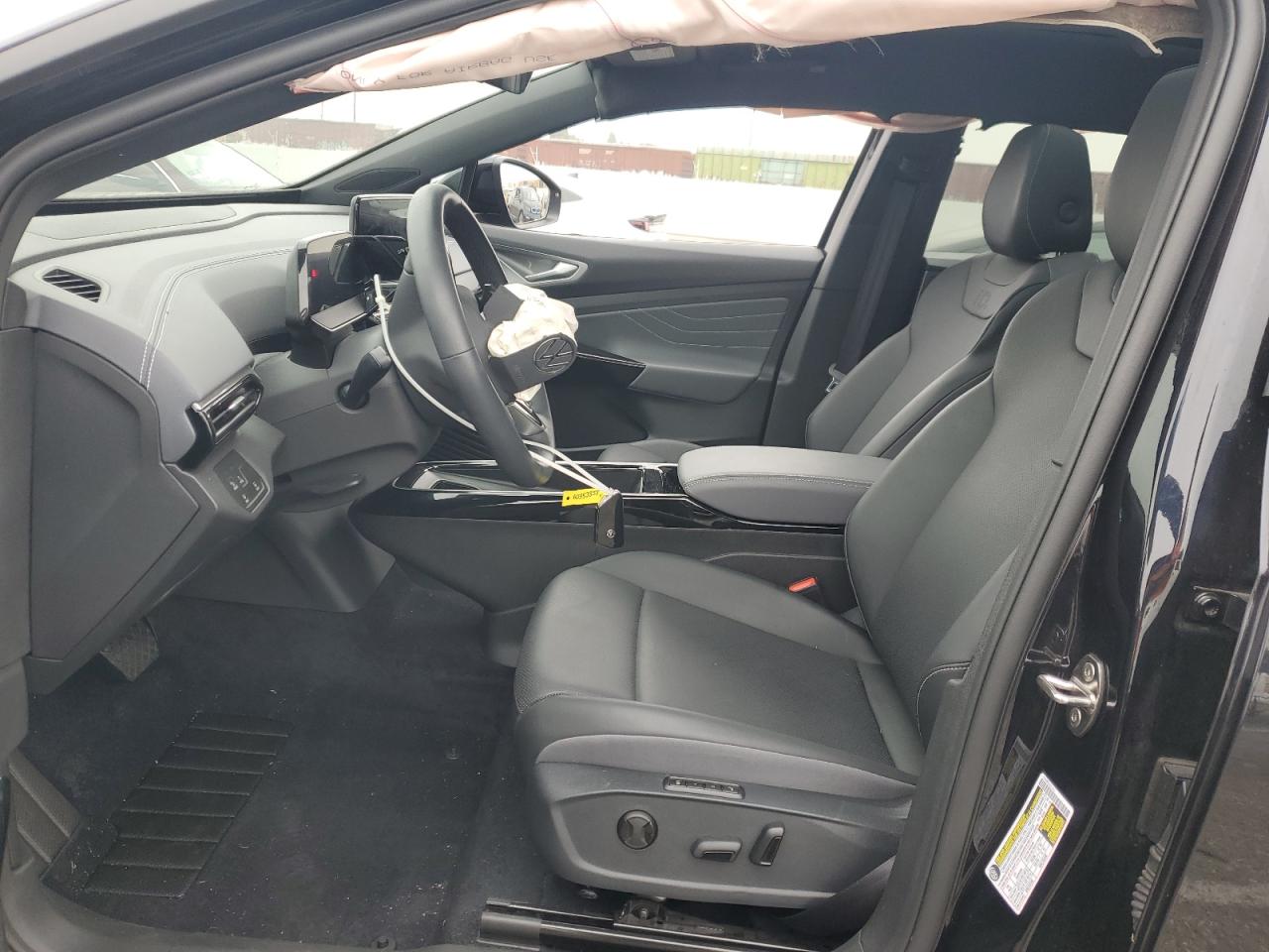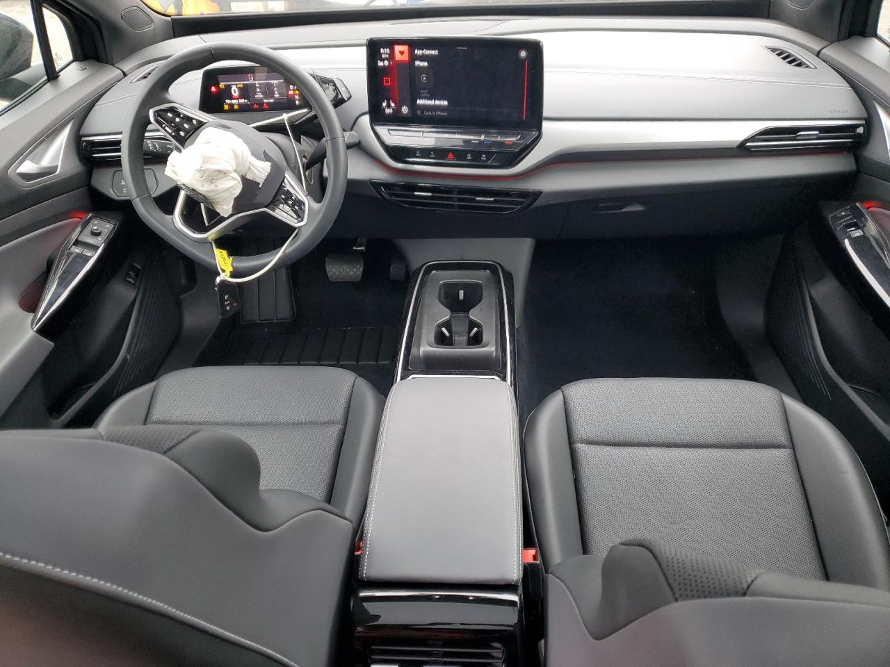 FairThe 2023 VOLKSWAGEN ID.4 PRO S in black exhibits significant front-end damage. The images reveal damage to the front, including the bumper, lights and potentially the hood. The wheels appear to be in good condition. Interior damage is visible. Airbags have deployed. The car starts. The car's interior shows signs of damage, including deployed airbags and damage to the steering wheel.