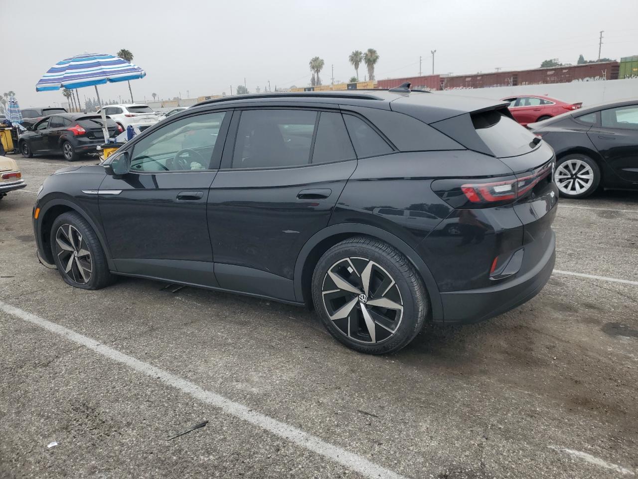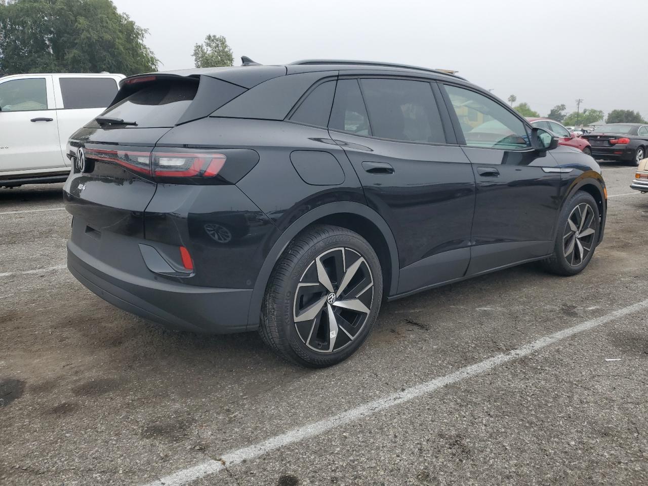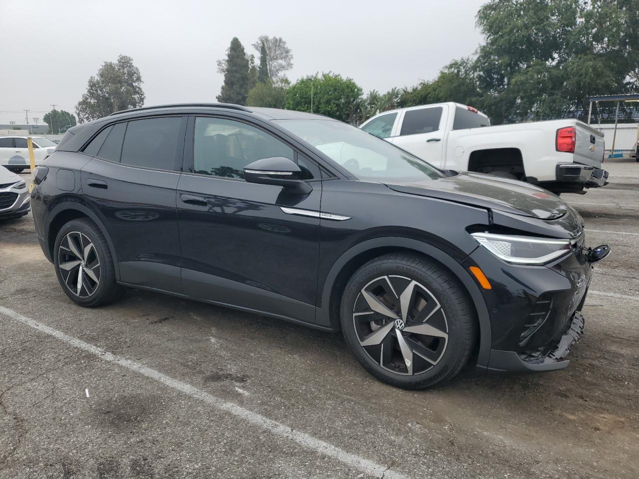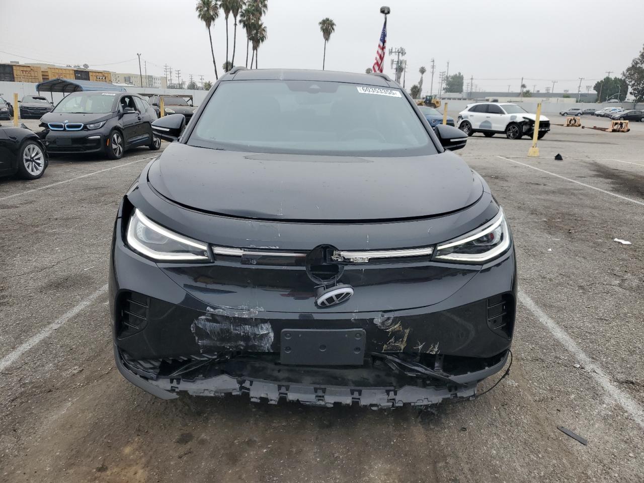 FairThe 2023 VOLKSWAGEN ID.4 PRO S in black exhibits significant front-end damage. The images reveal damage to the front, including the bumper, lights and potentially the hood. The wheels appear to be in good condition. Interior damage is visible. Airbags have deployed. The car starts. The car's interior shows signs of damage, including deployed airbags and damage to the steering wheel.