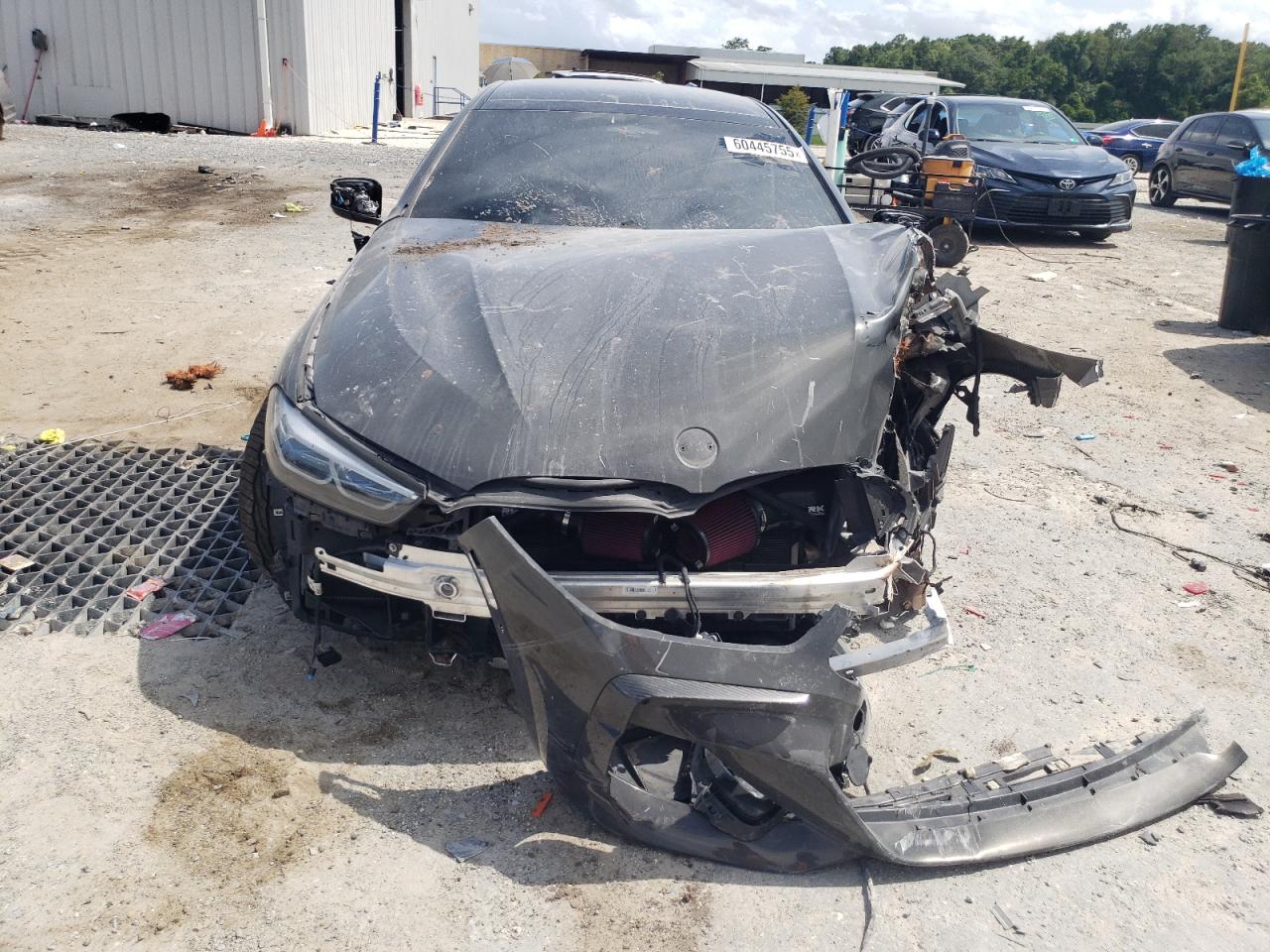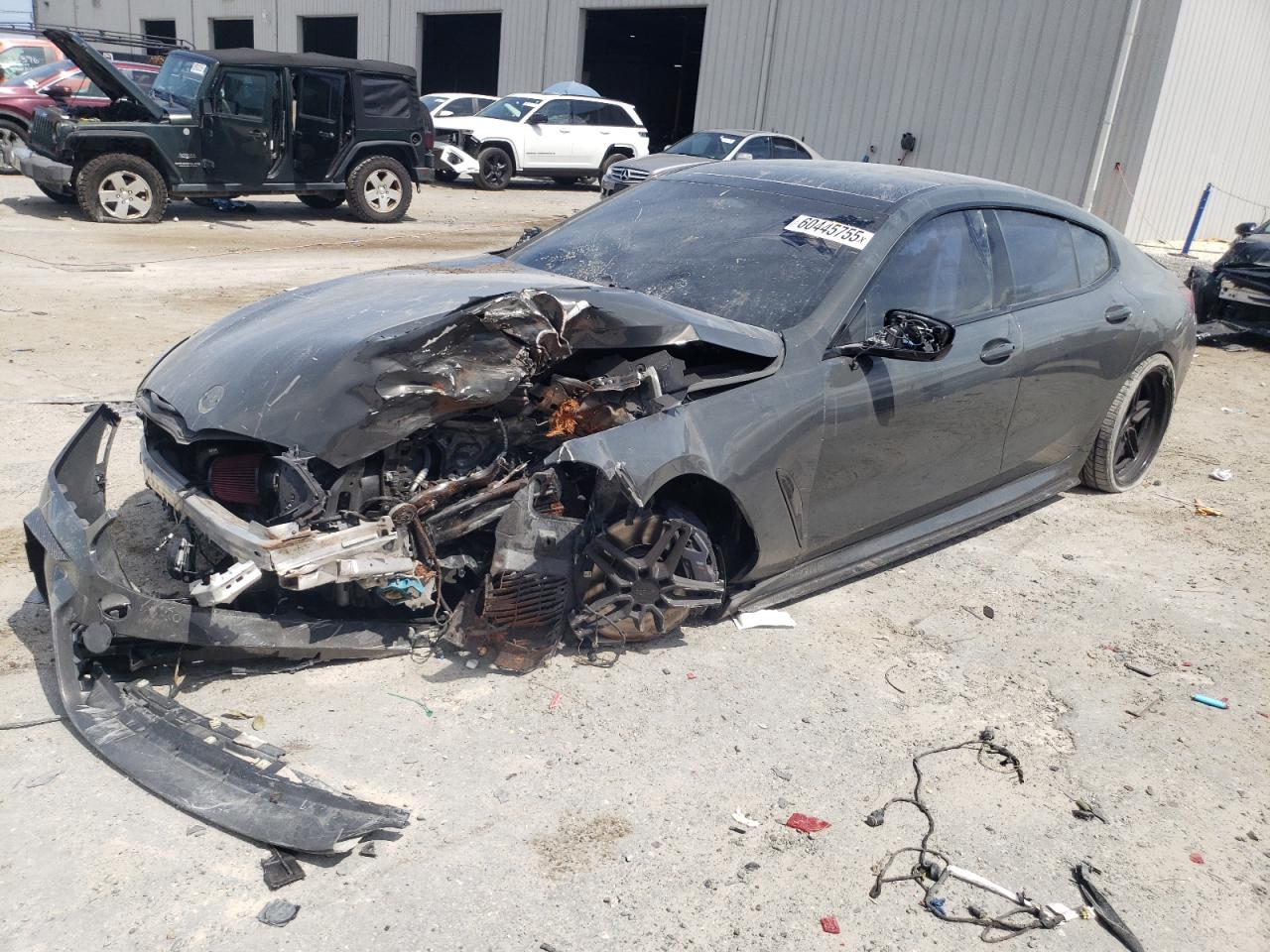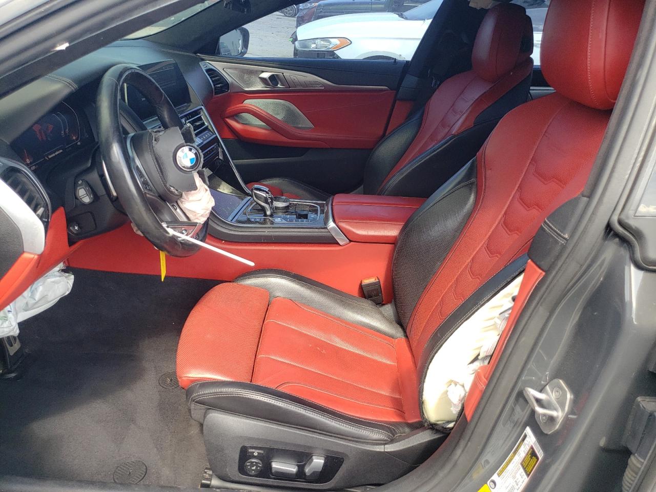 PoorThis is a damaged 2021 BMW M850i xDrive. The vehicle exhibits significant front-end damage, including a heavily damaged front bumper, hood, and front panels. The gray exterior shows signs of impact, with possible damage to lights and glass. The interior appears to have airbag deployment and some damage. Overall, the car is in a state of disrepair and requires considerable restoration.