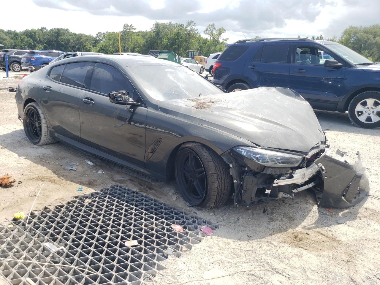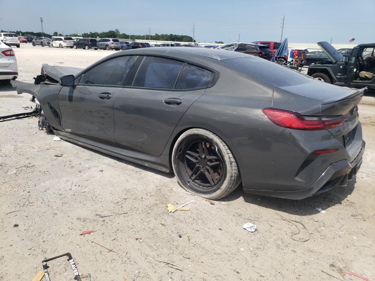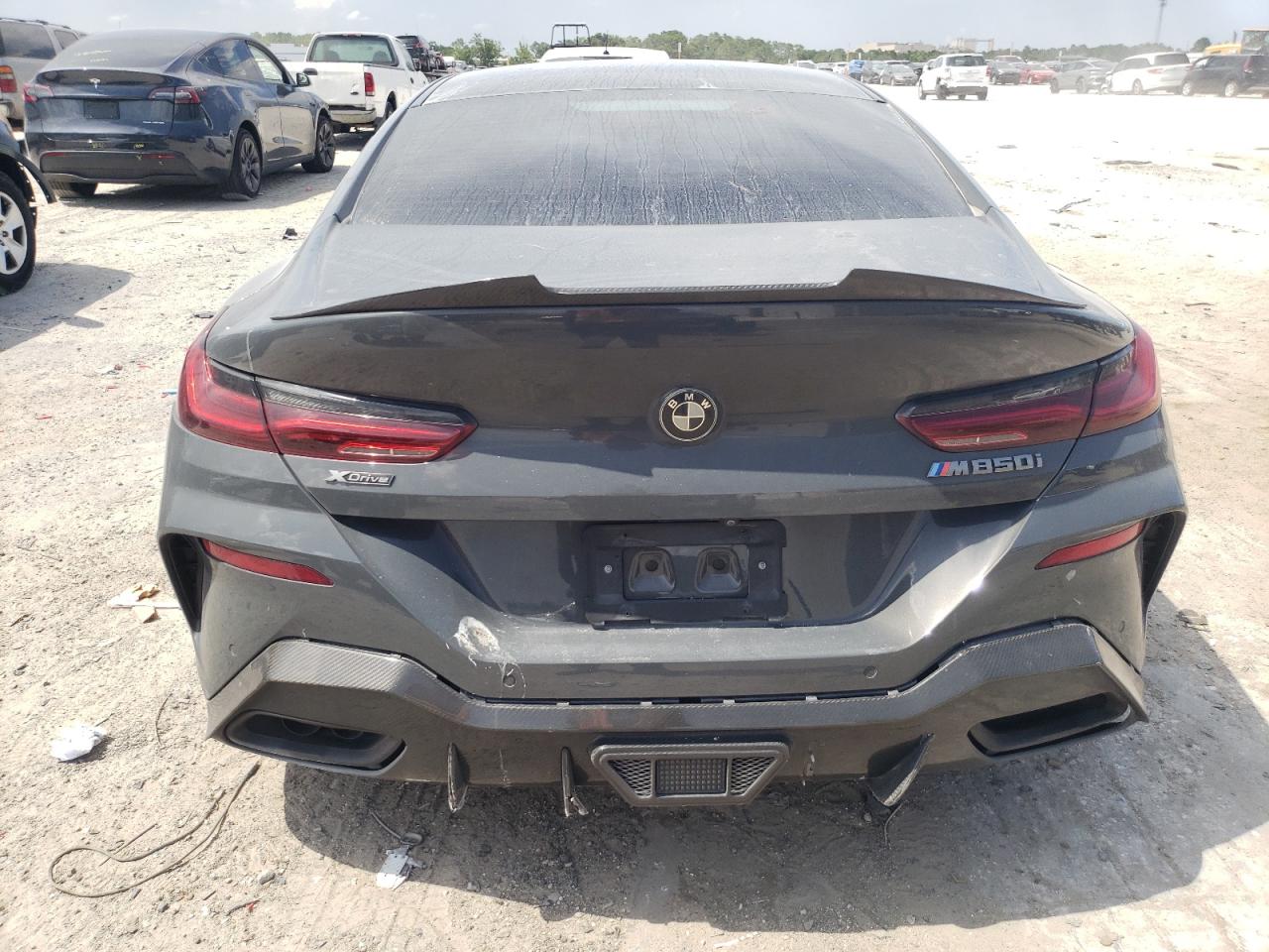 PoorThis is a damaged 2021 BMW M850i xDrive. The vehicle exhibits significant front-end damage, including a heavily damaged front bumper, hood, and front panels. The gray exterior shows signs of impact, with possible damage to lights and glass. The interior appears to have airbag deployment and some damage. Overall, the car is in a state of disrepair and requires considerable restoration.