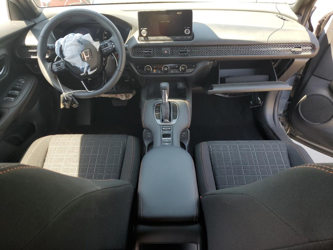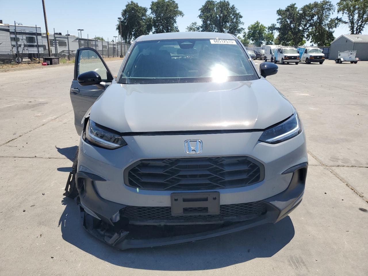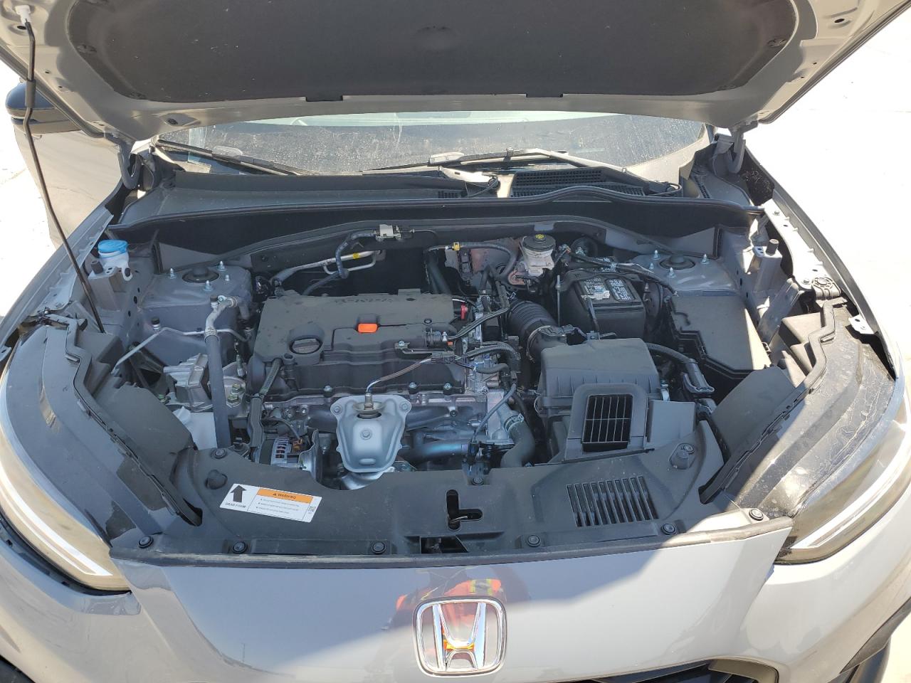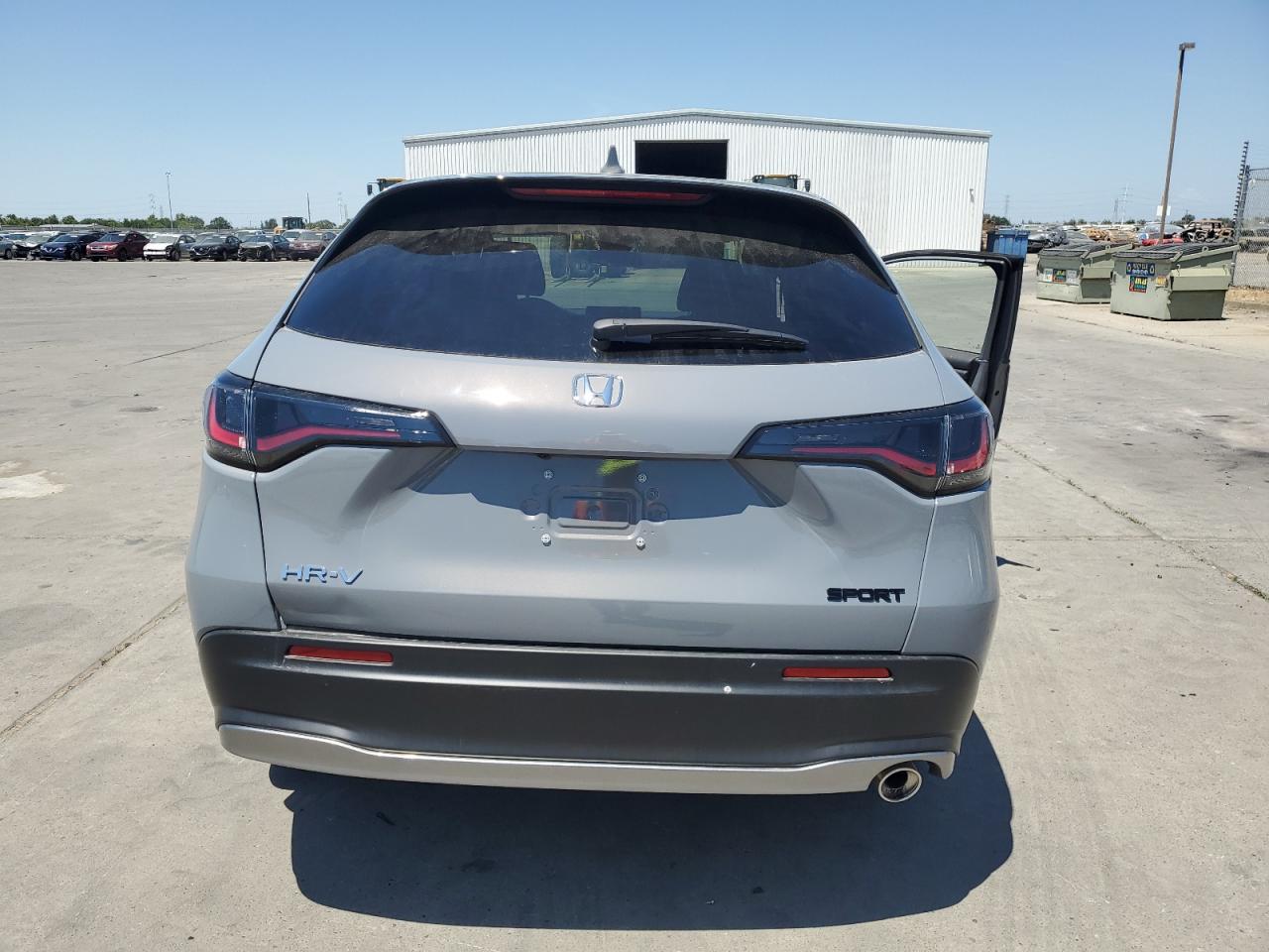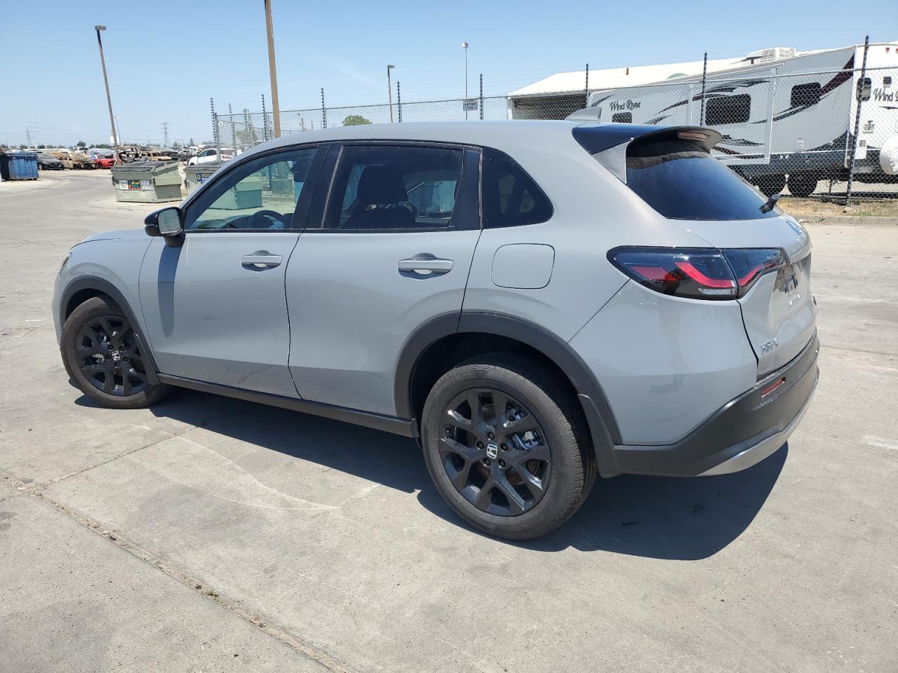FairThis is a 2024 Honda HR-V Sport in gray. The vehicle has sustained significant front-end damage, affecting the body panels, lights, and potentially the undercarriage. The vehicle starts and shows signs of impact damage, indicating possible mechanical issues. The airbags have deployed. The interior has damage as well.