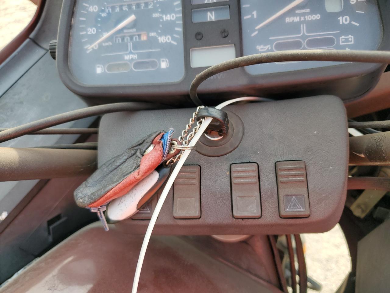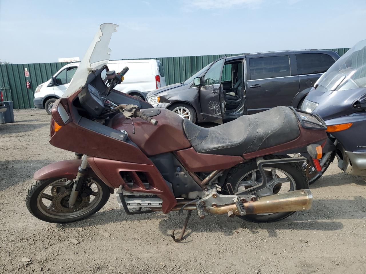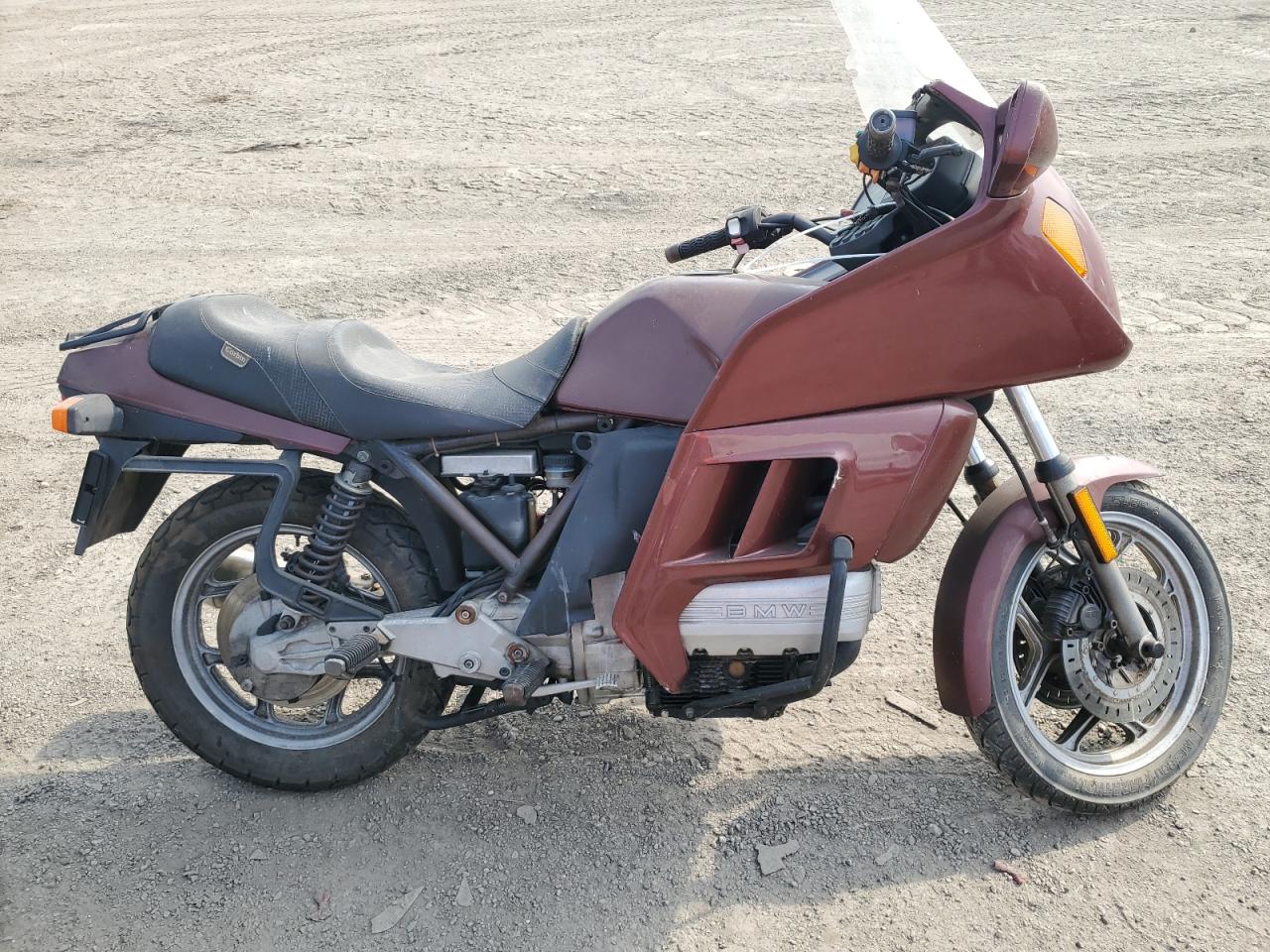 Fair1985 BMW K100RT, a maroon motorcycle with mechanical damage. The vehicle's exterior exhibits moderate visible damage. The interior condition is fair. The wheels appear to be in usable condition. Overall, the motorcycle is in fair condition, indicating it may require some repairs but is potentially drivable. The motorcycle's mechanical components show signs of damage.