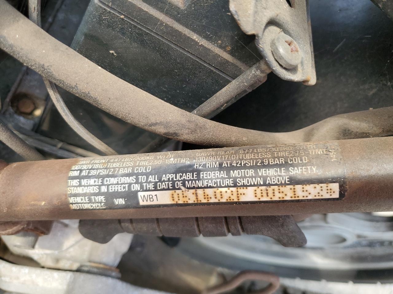 The motorcycle shows signs of wear and tear consistent with its age. The fairing, body panels, and other exterior components may have scratches, dents, or other forms of damage. The lights and glasses are present but could have damages. The mechanical components are damaged. Interior has damages. Airbag not visible.