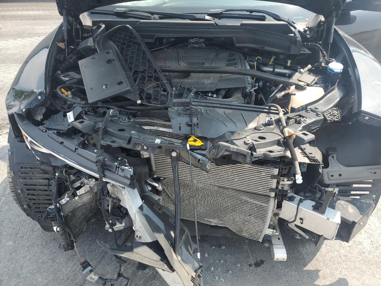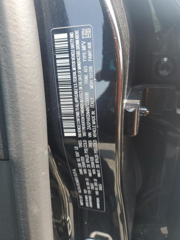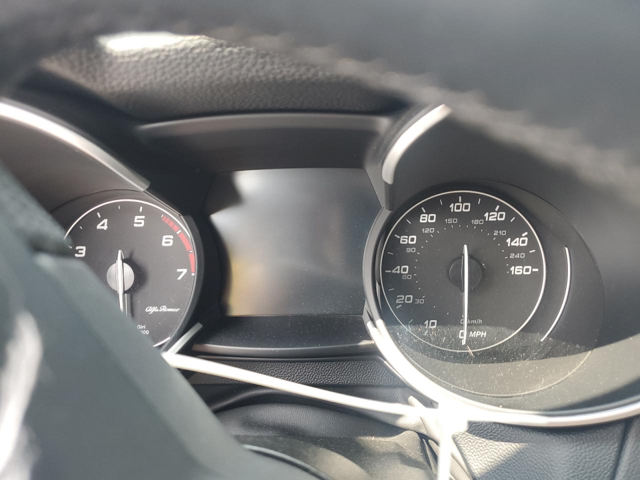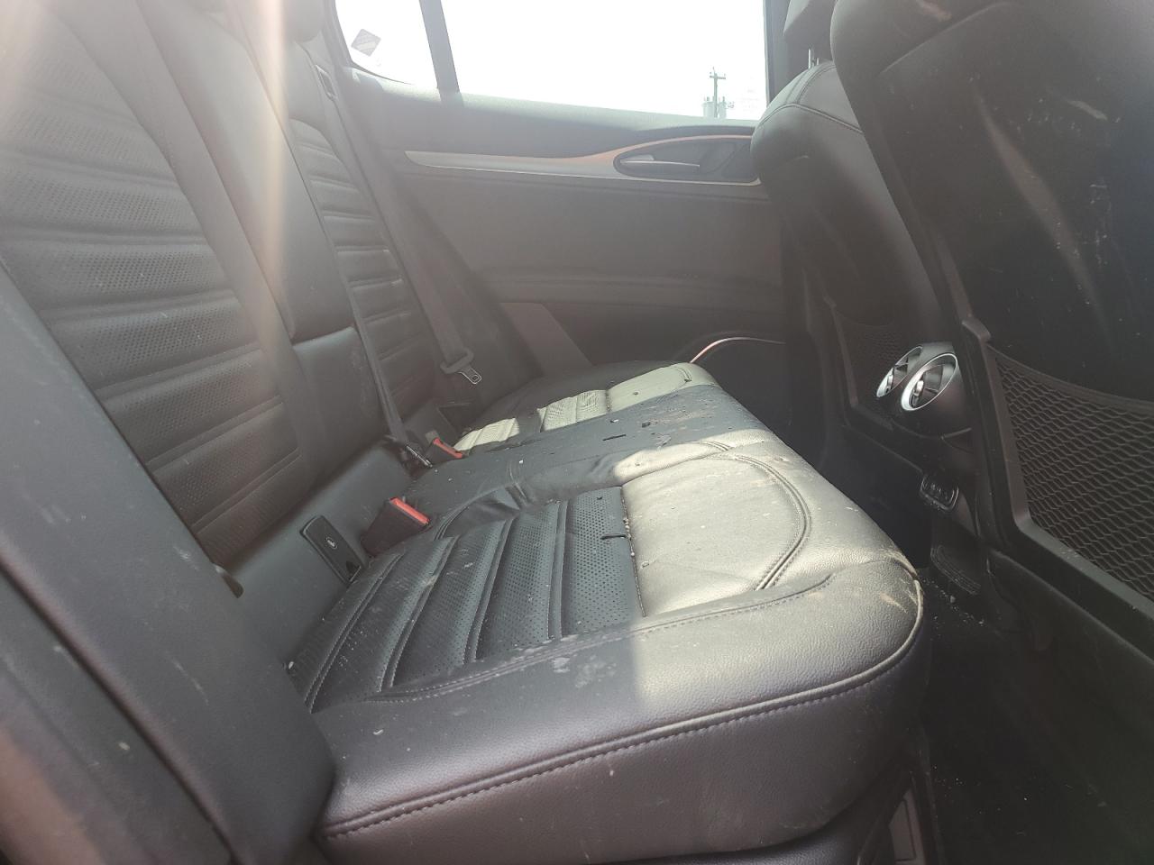 FairAlfa Romeo Stelvio TI 2022, black color, showing significant front-end damage. The front of the vehicle is severely damaged, with visible impact to the hood, bumper, and potentially structural components. The airbags have deployed. The interior shows signs of impact, with deployed airbags and potential damage to the dashboard and seats. The wheels appear to be intact, but the overall condition suggests the vehicle requires considerable repair. The vehicle is not drivable.