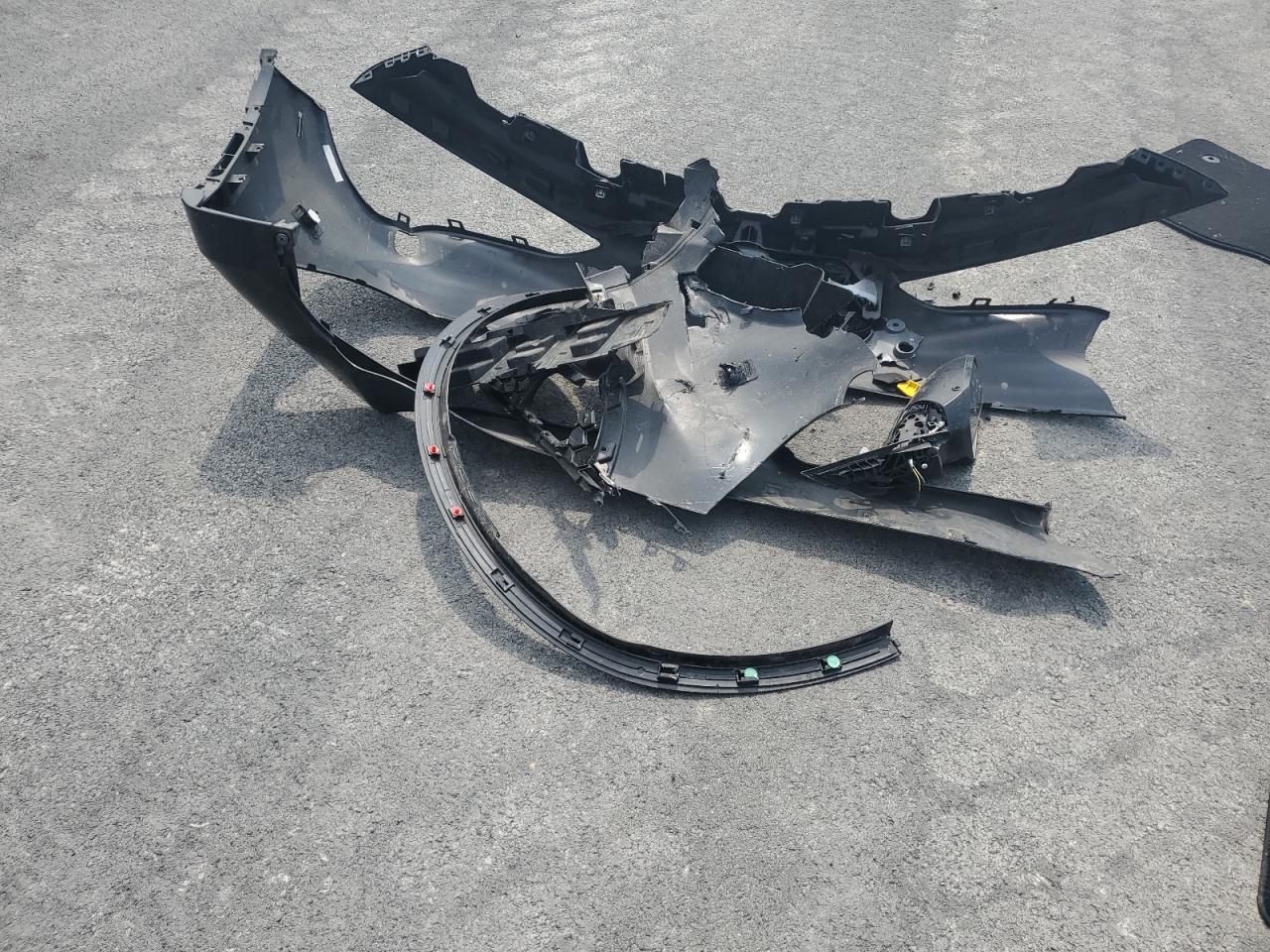 Severe front-end collision damage, including hood, bumper, and possible structural damage. Airbag deployment. Interior damage visible. Wheels appear intact.