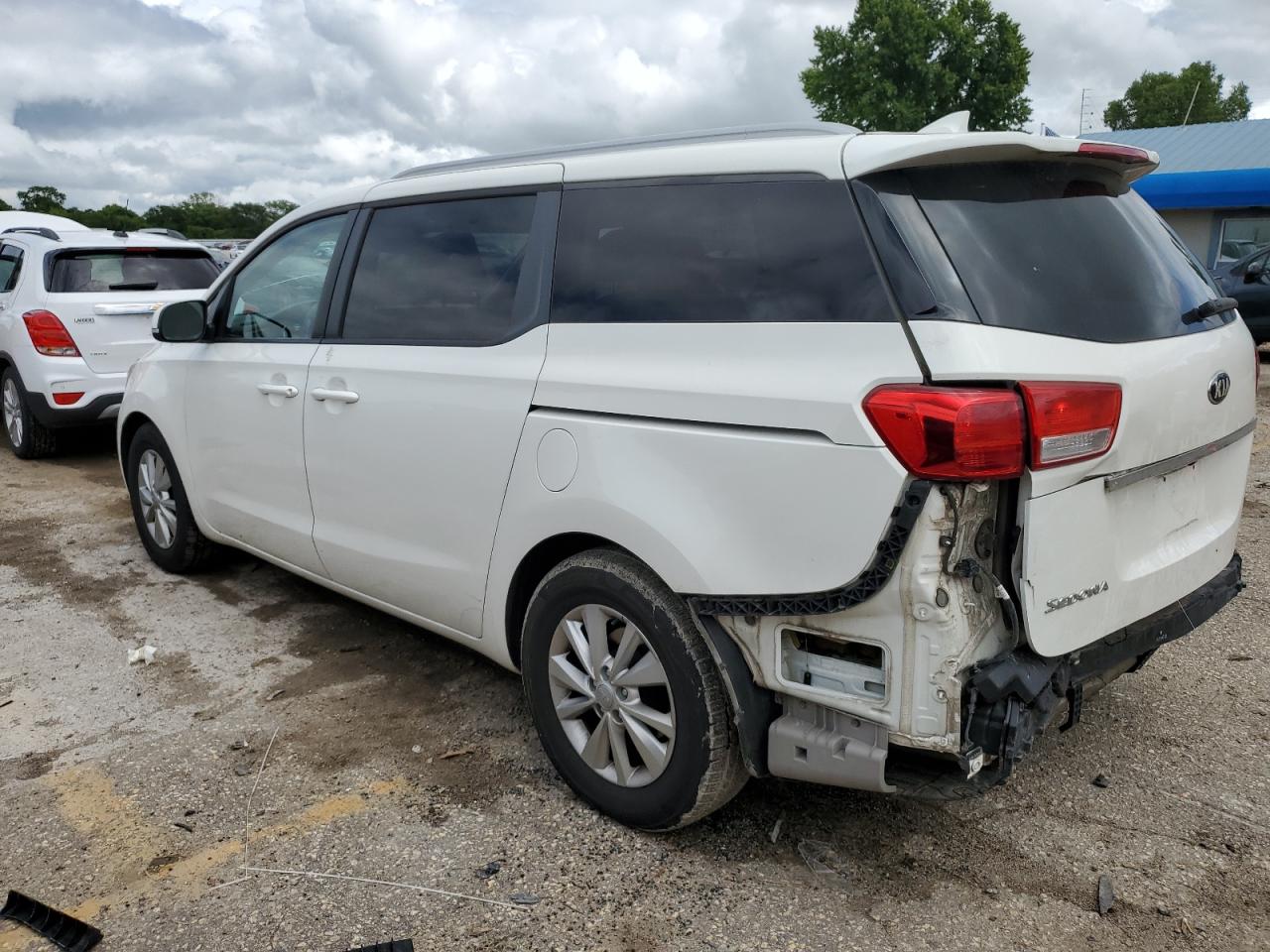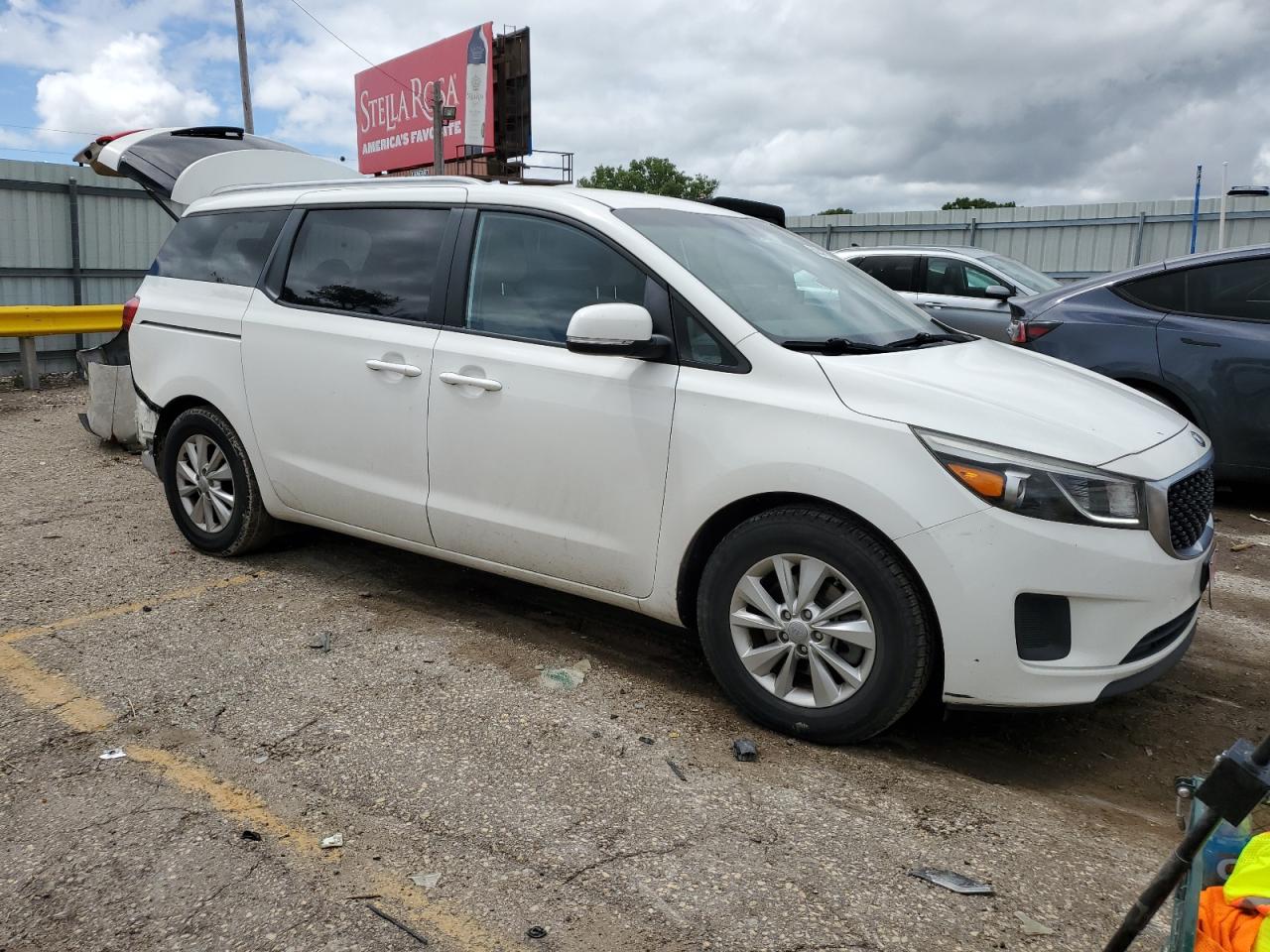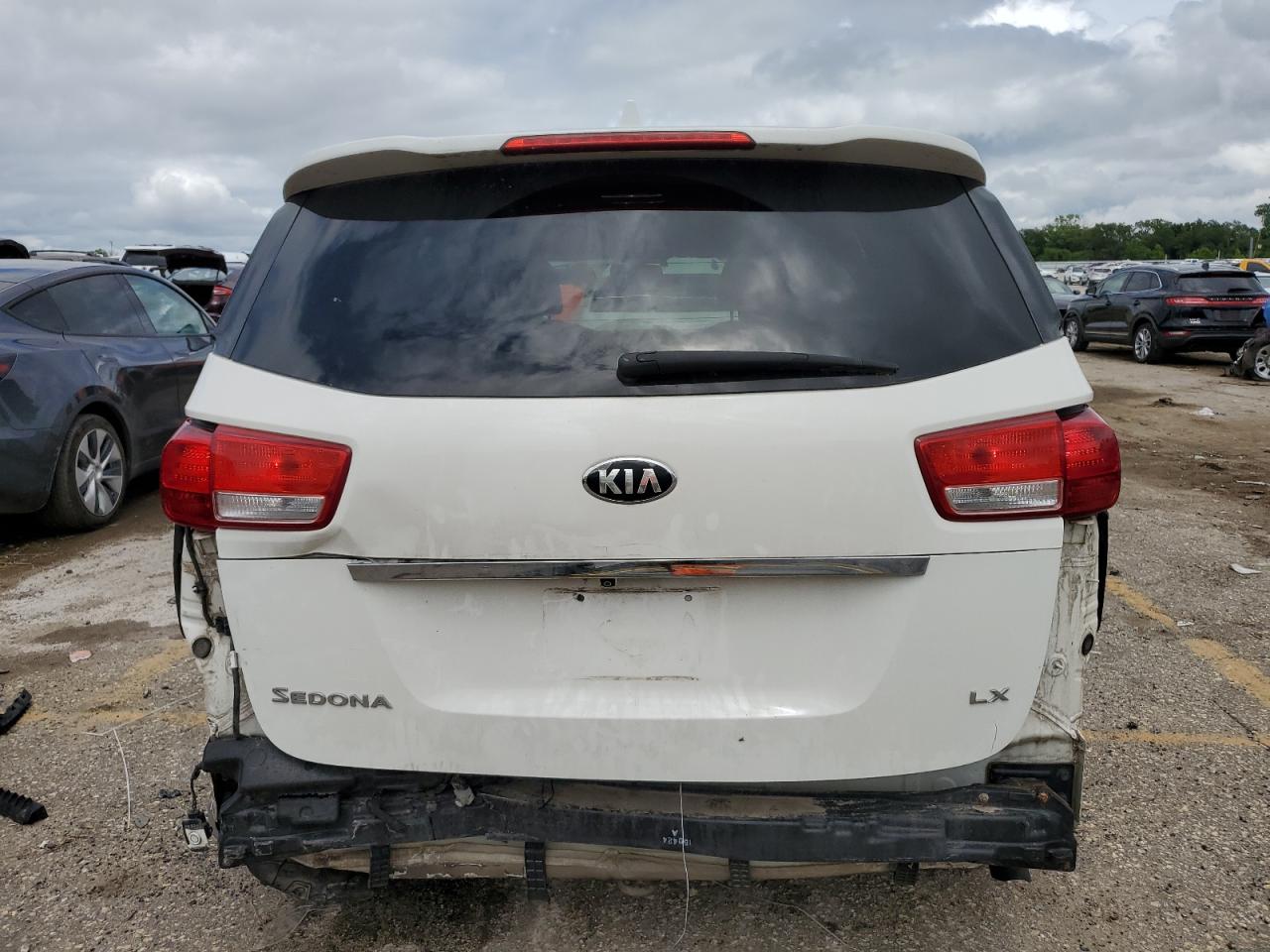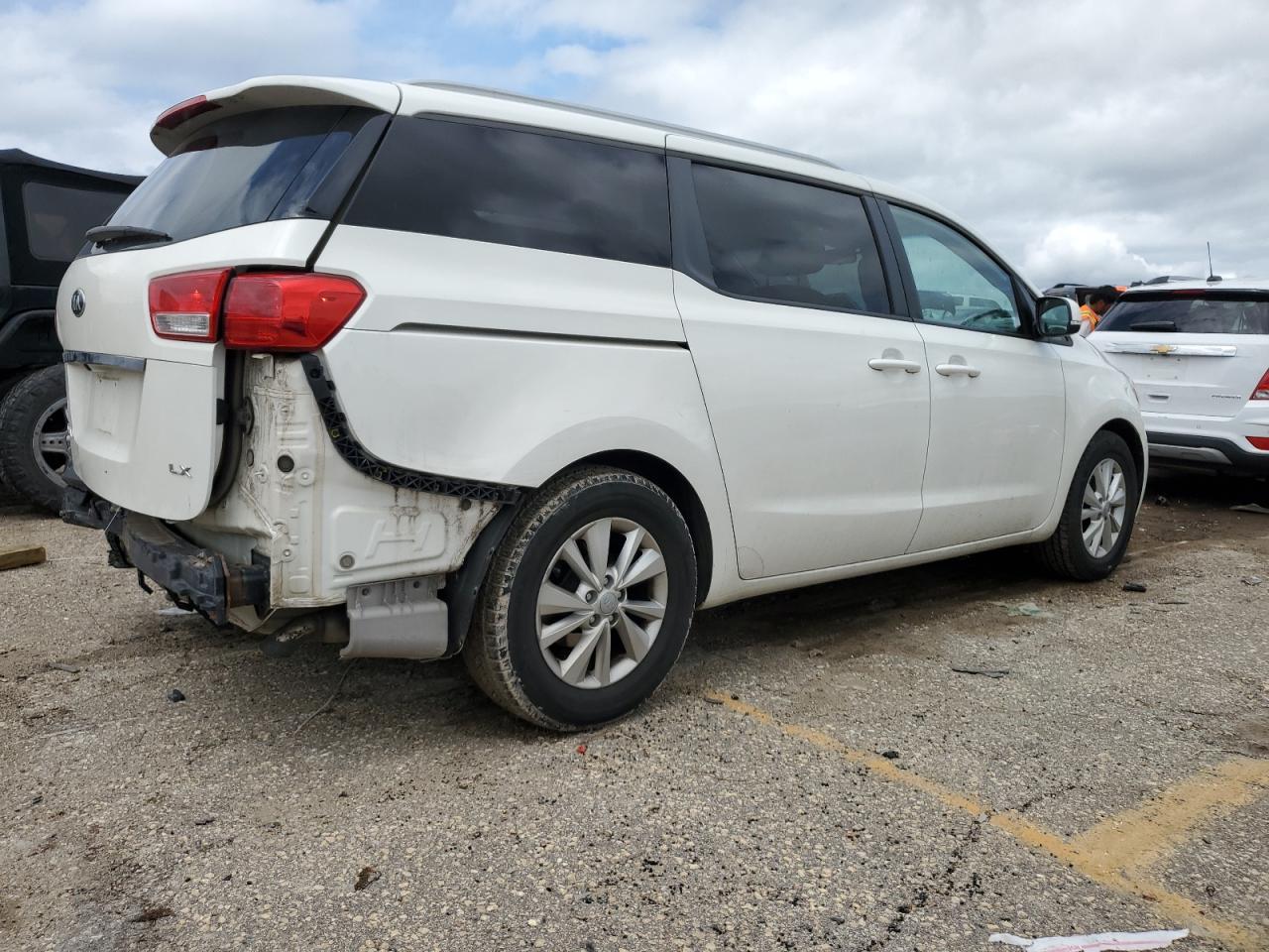 FairKIA SEDONA LX 2016, white color, Run & Drive Verified. Primary damage is REAR END, with no secondary damage. The car's exterior shows moderate damage, particularly at the rear, while the interior is in good condition. The vehicle is drivable, but repairs are needed.